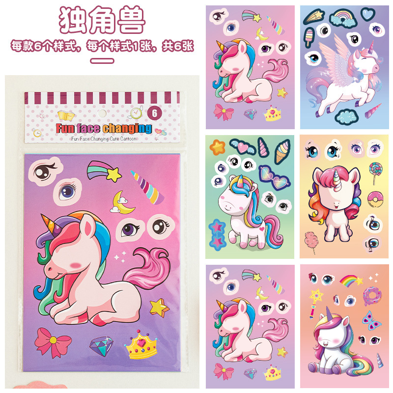 동물 소녀 만화 얼굴 변경 스티커 유치원 어린이 교육 선물 DIY 얼굴 콜라주 국경 도매