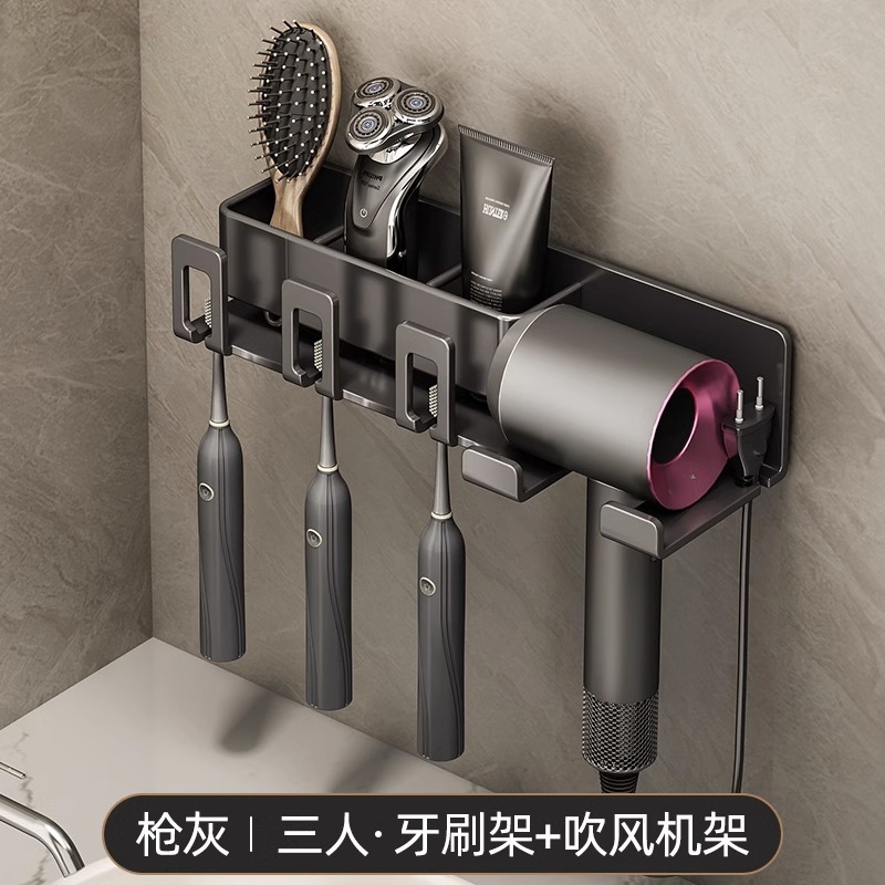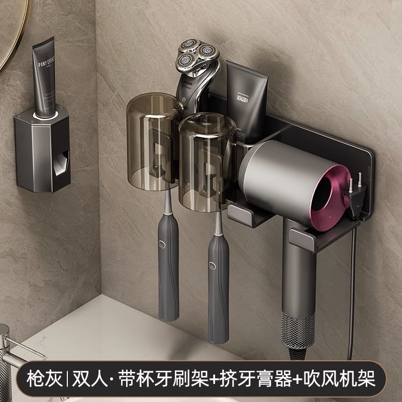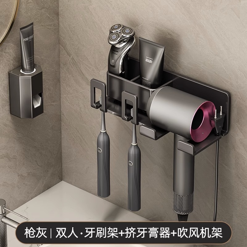• 건애쉬丨이중 칫솔꽂이 + 치약 압착기 + 헤어드라이어 홀더