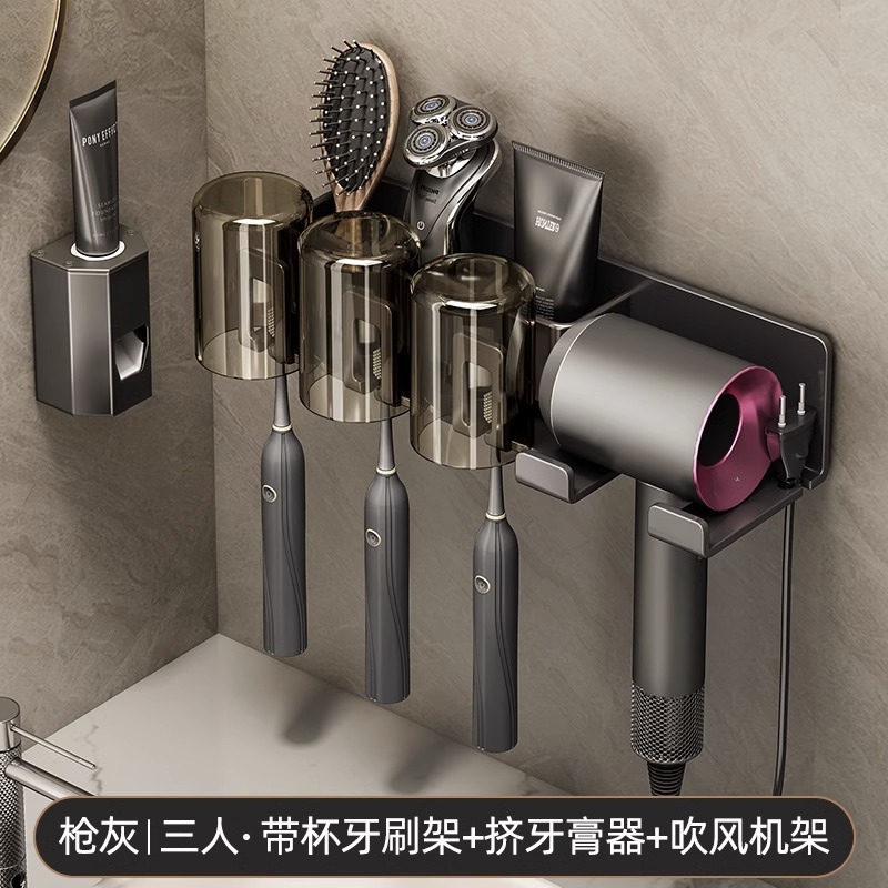 • 건애쉬丨3인용 칫솔꽂이 + 치약 압착기 + 헤어드라이어 홀더