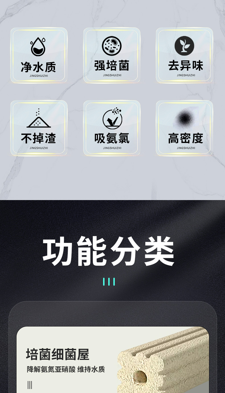물고기 탱크 필터 재료 물 정화 박테리아 집 질화 박테리아 나노 석영 돌 수족관 보편적 인 필터 재료