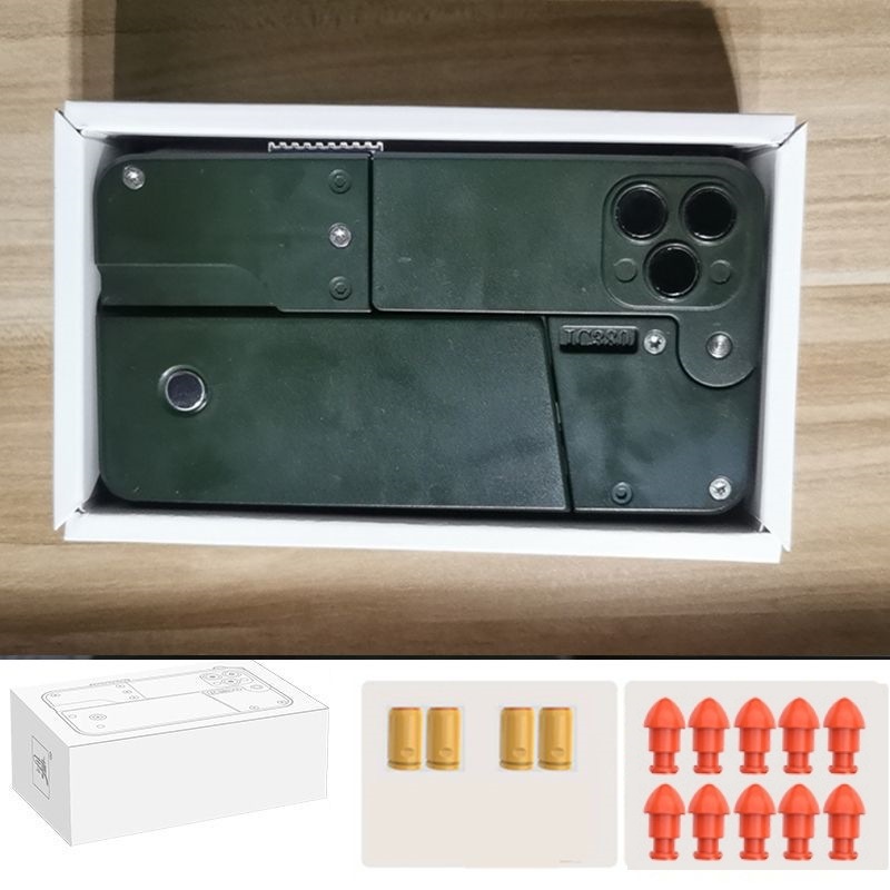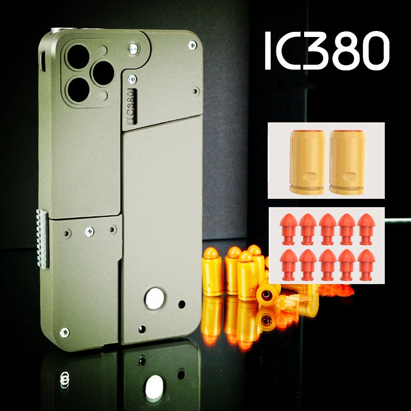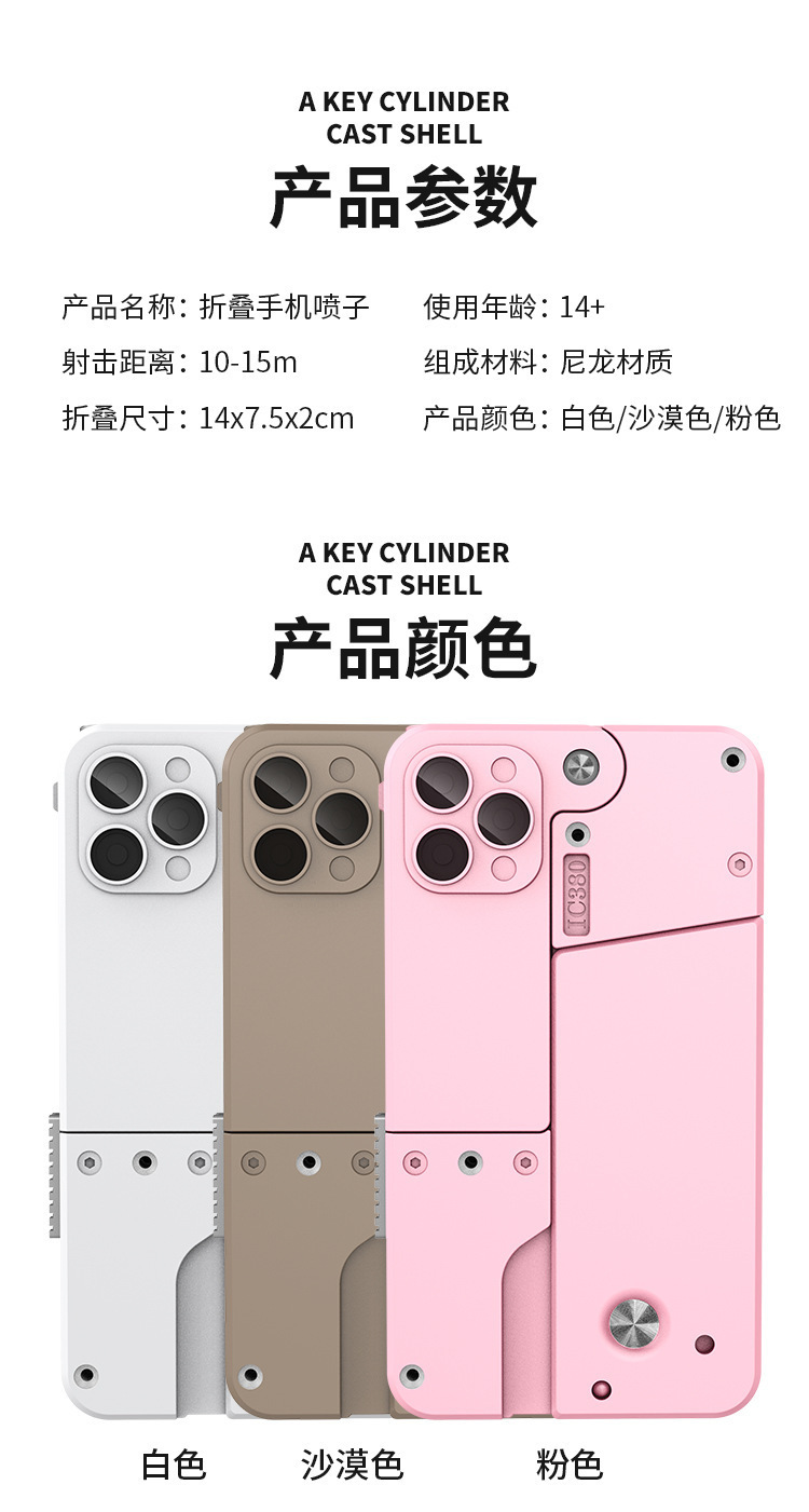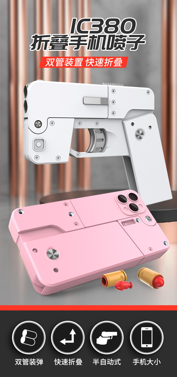 휴대 전화 장난감 총 던지기 쉘 접이식 시뮬레이션 변형 부드러운 총알 총 IC380 스프레이 권총 어린이가 발사 할 수 있습니다.