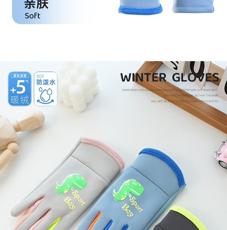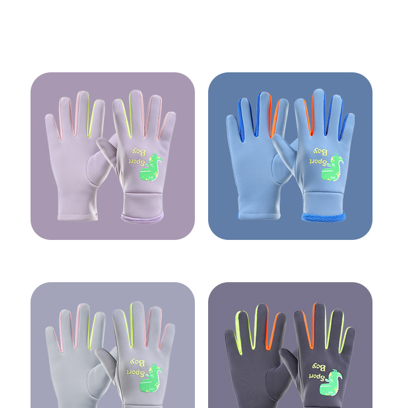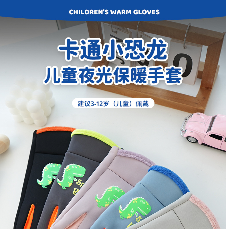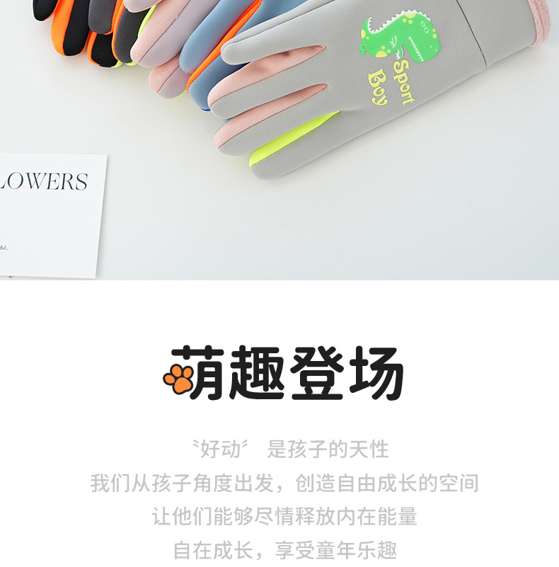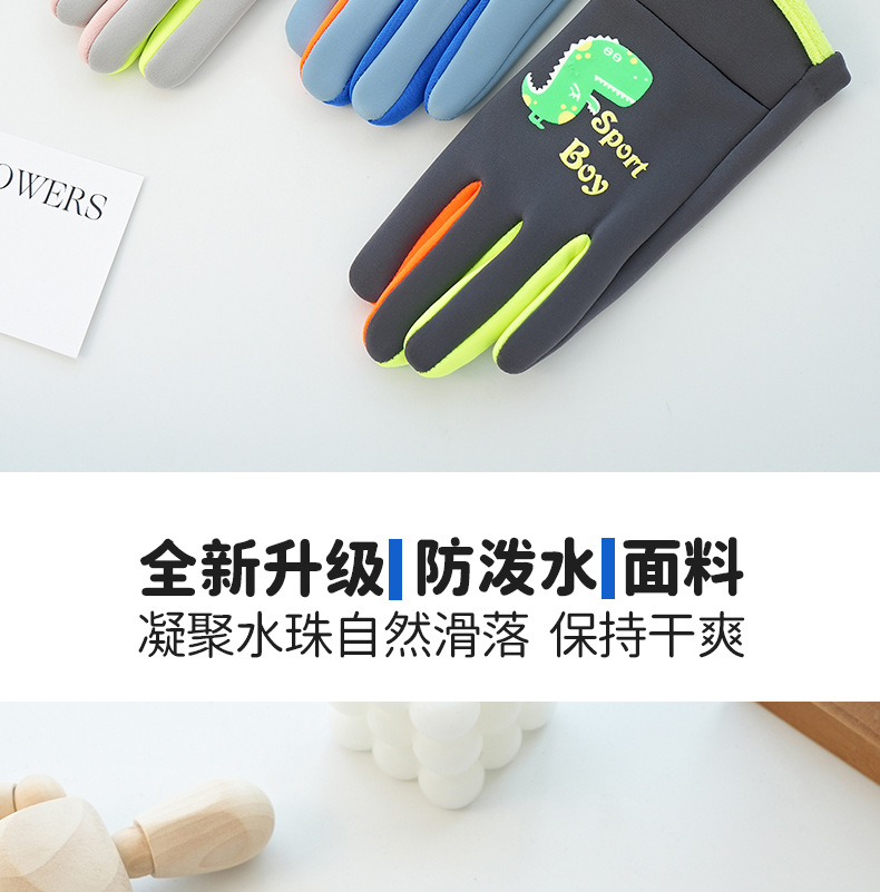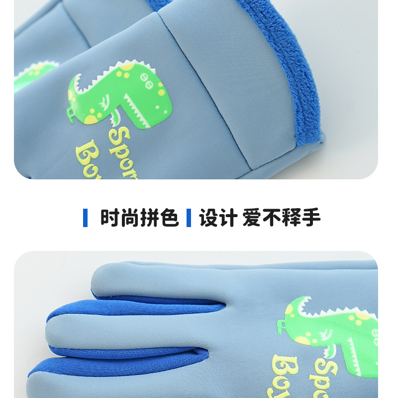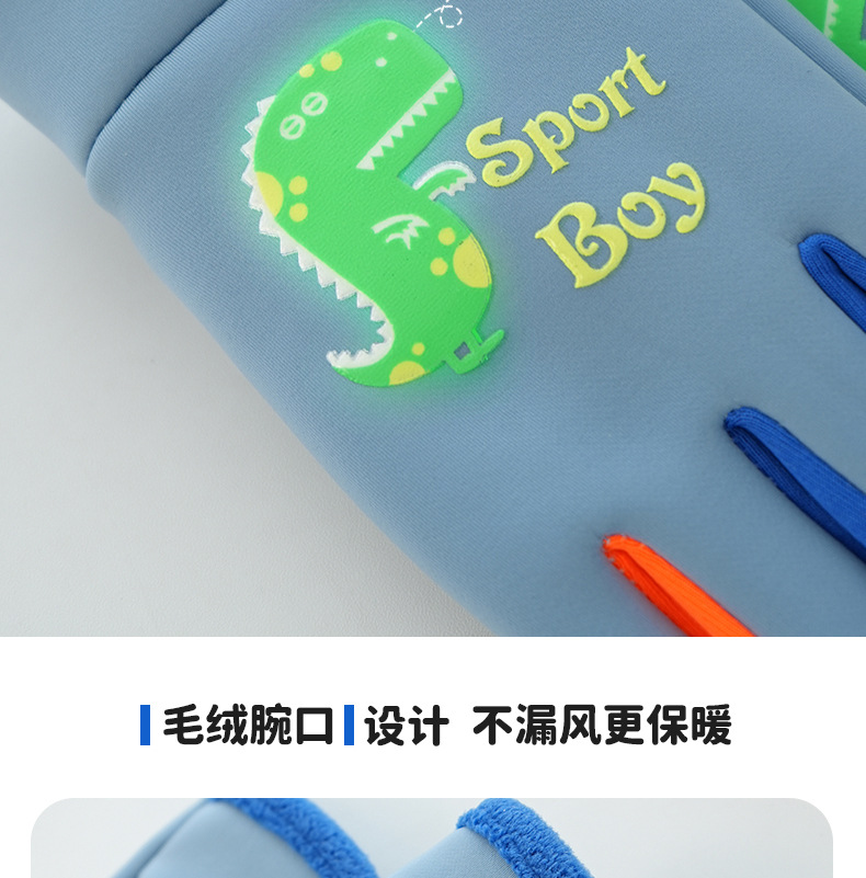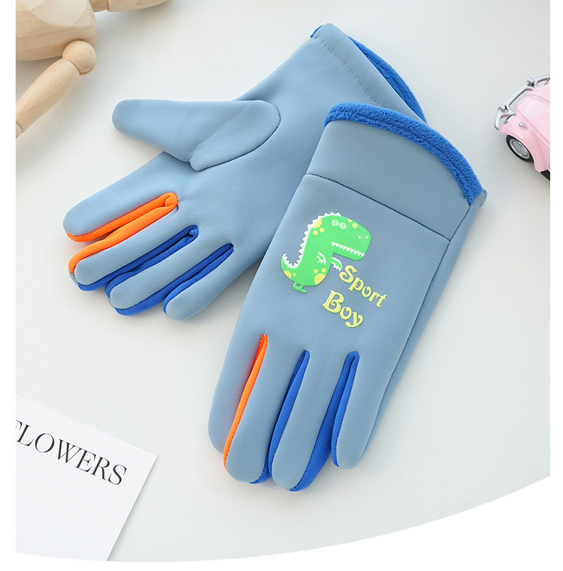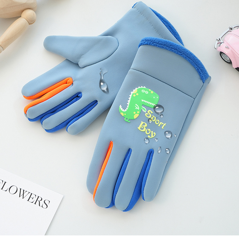 가을과 겨울 소년과 소녀를위한 새로운 어린이 장갑 만화 빛나는 작은 공룡 야외 스포츠 눈 방수 따뜻한 손