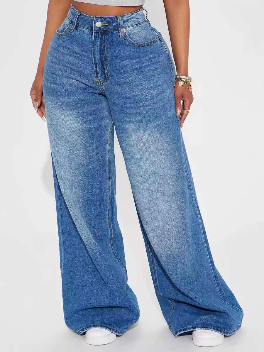 Y2K 크로스 보더 여성 레트로 화이트 멀티 크래프트 와이드 레그 헐렁한 청바지스토어 가기