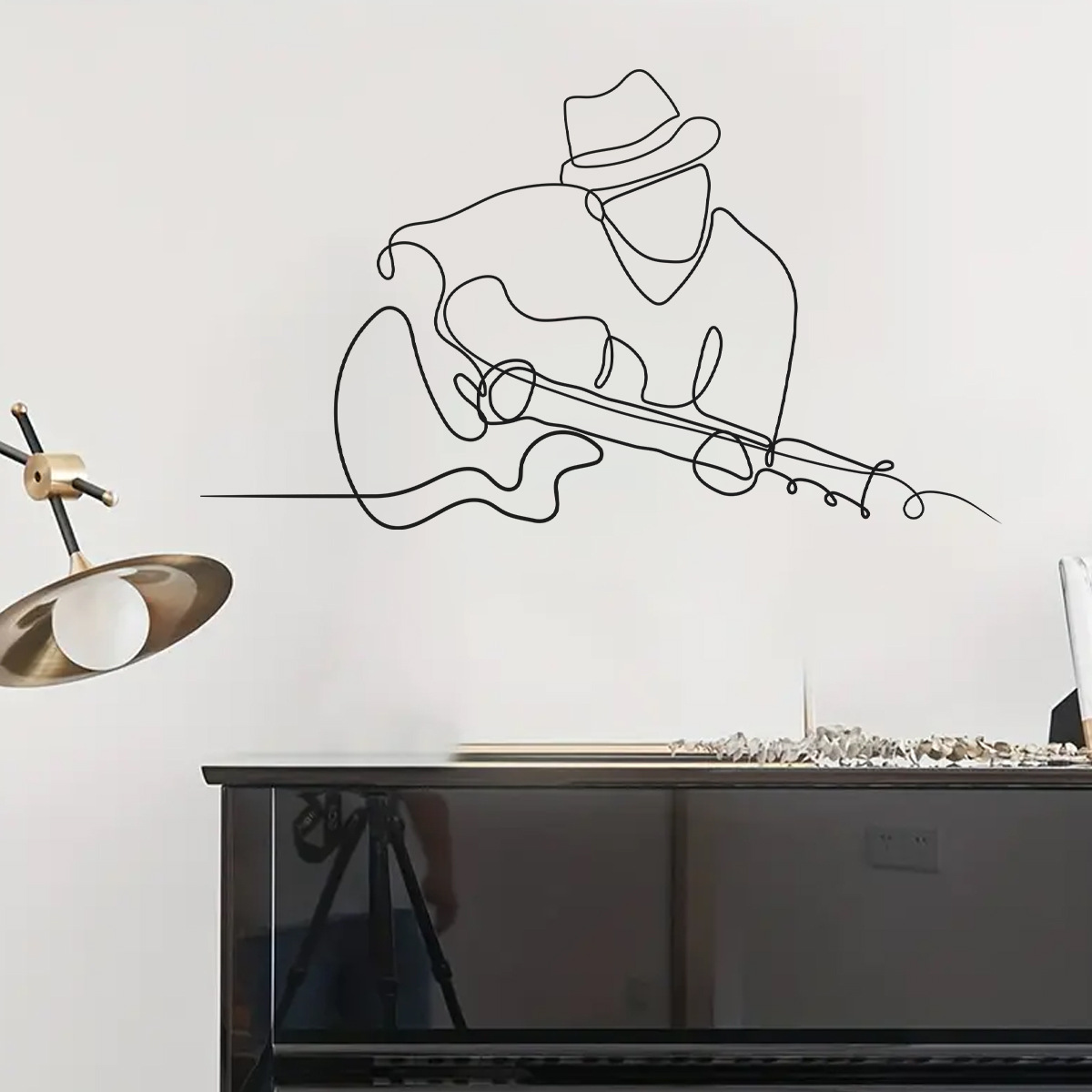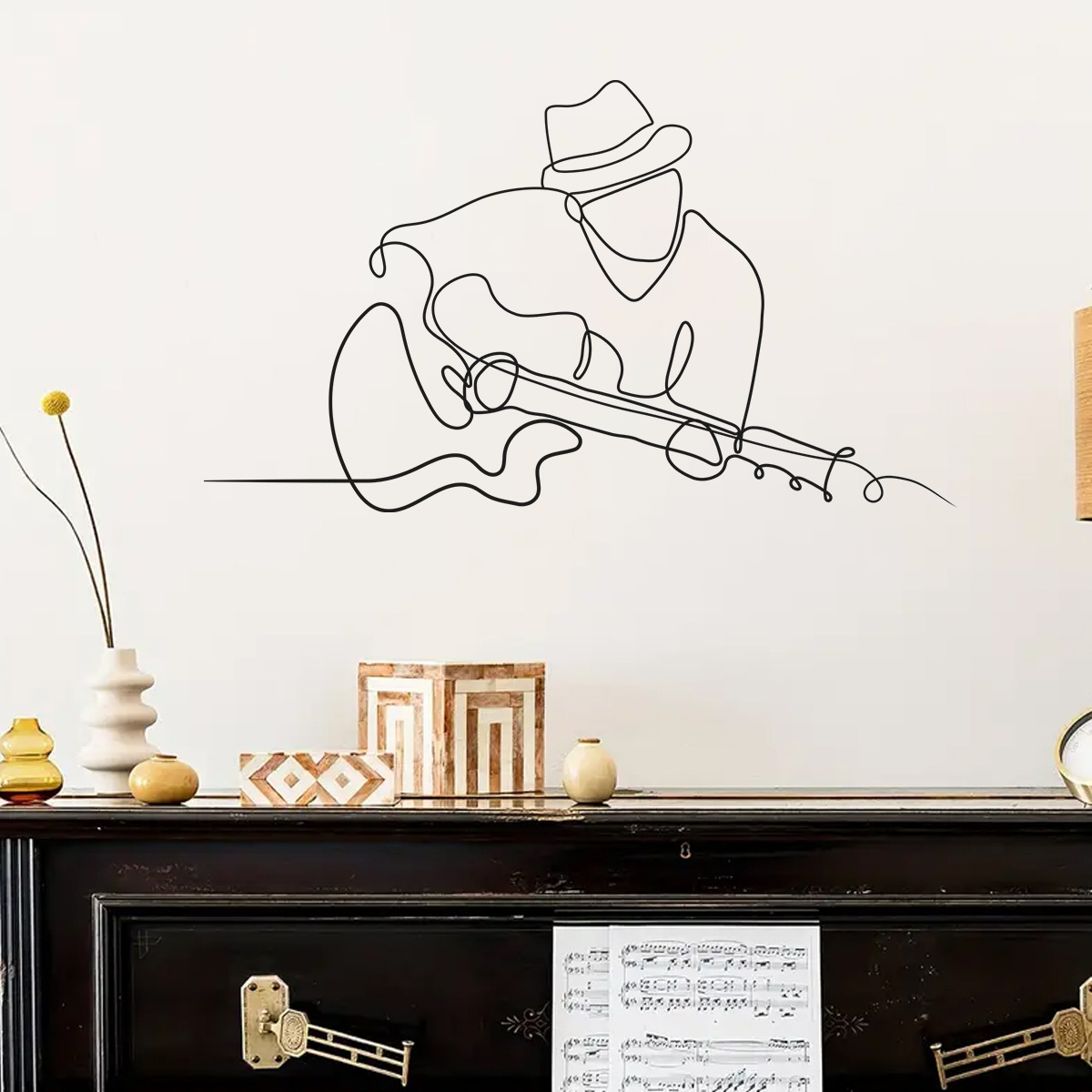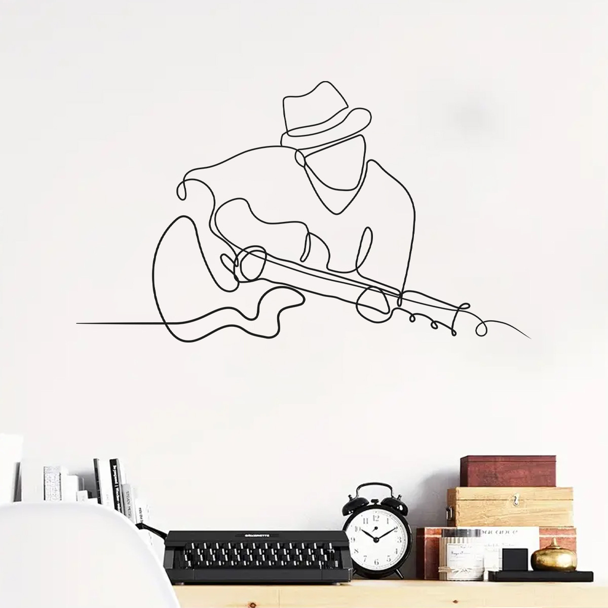 간단한 라인 포크 기타 가수 자기 접착 벽 스티커 Ins 스타일 아트 거실 장식 스티커 BR0761Q