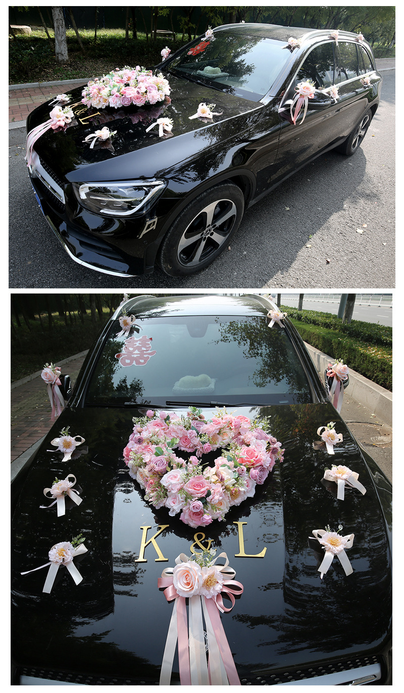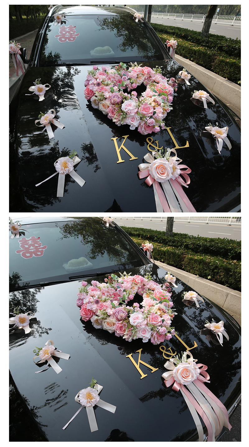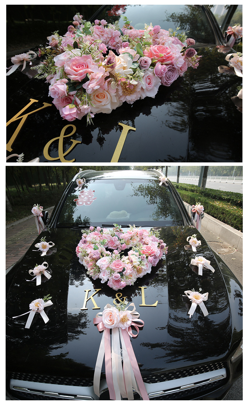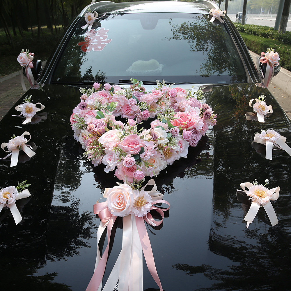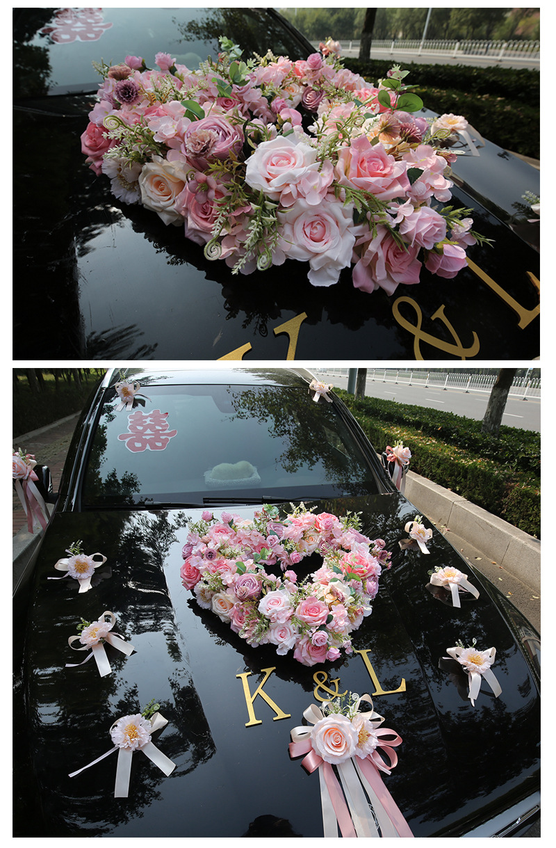 웨딩 카 꽃 핑크 웨딩 카 장식 꽃 메인 웨딩 카 꽃 머리 웨딩 팀 꽃 머리 풀 꽃 하트 모양의 모리 스타일