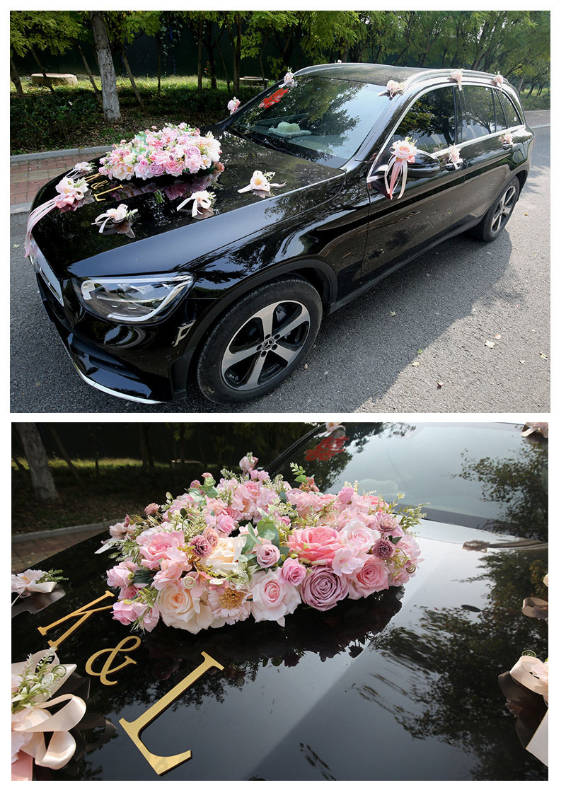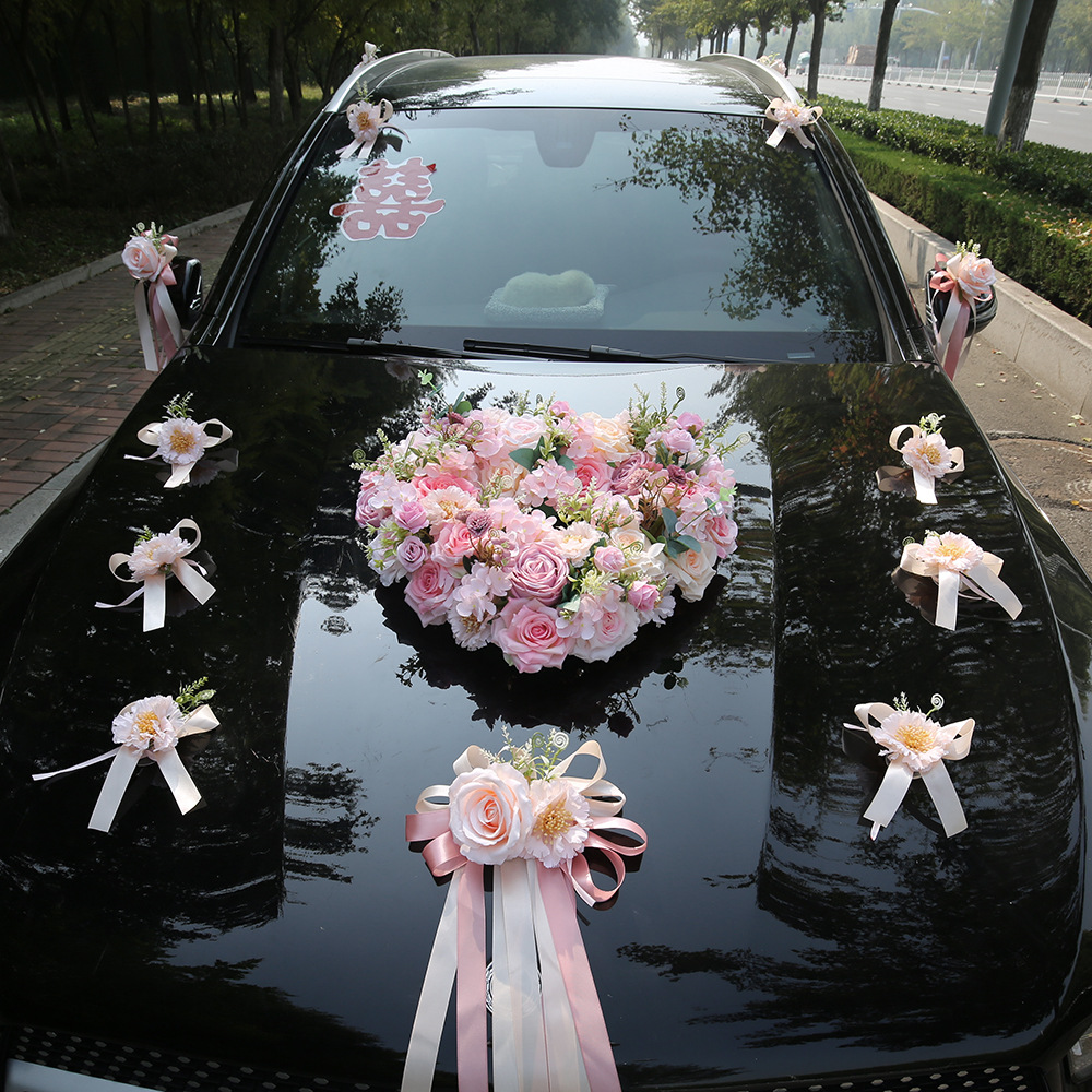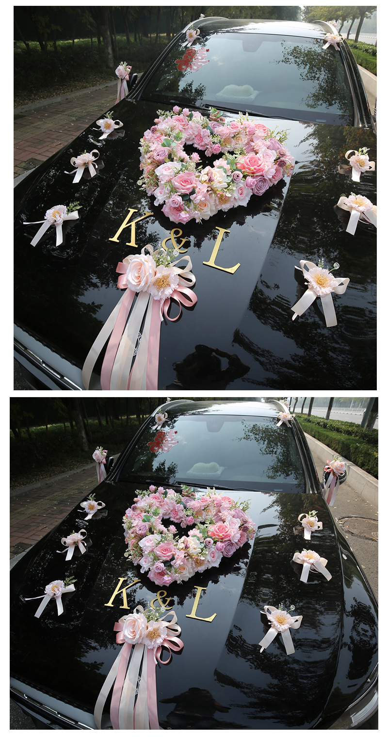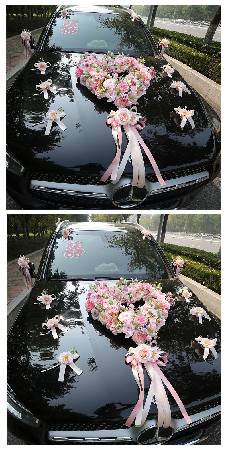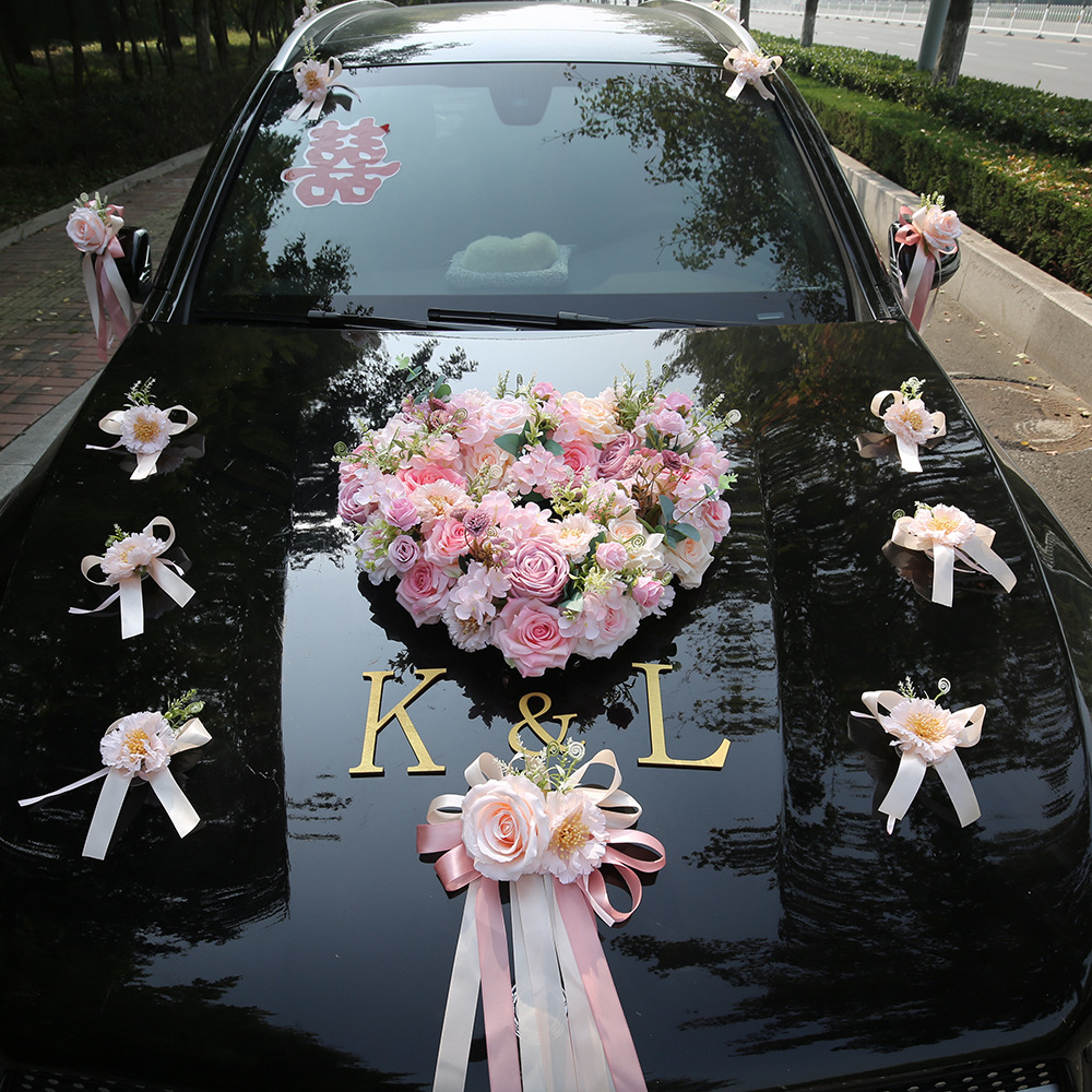 웨딩 카 꽃 핑크 웨딩 카 장식 꽃 메인 웨딩 카 꽃 머리 웨딩 팀 꽃 머리 풀 꽃 하트 모양의 모리 스타일