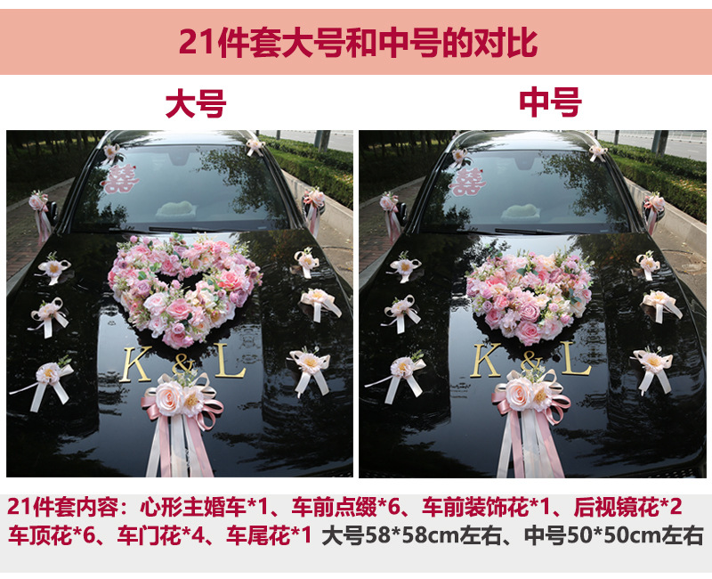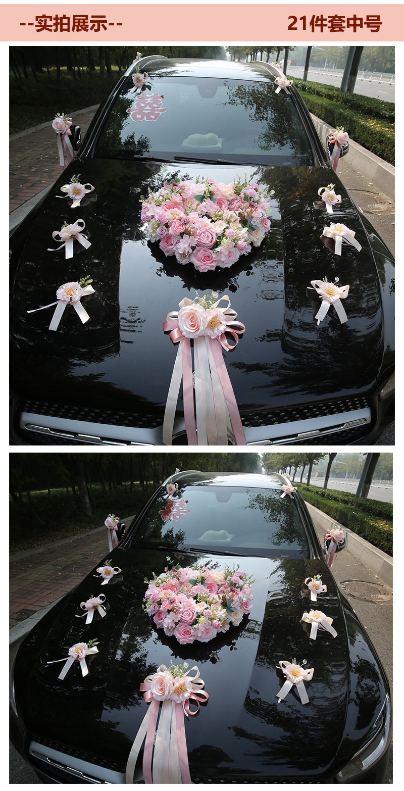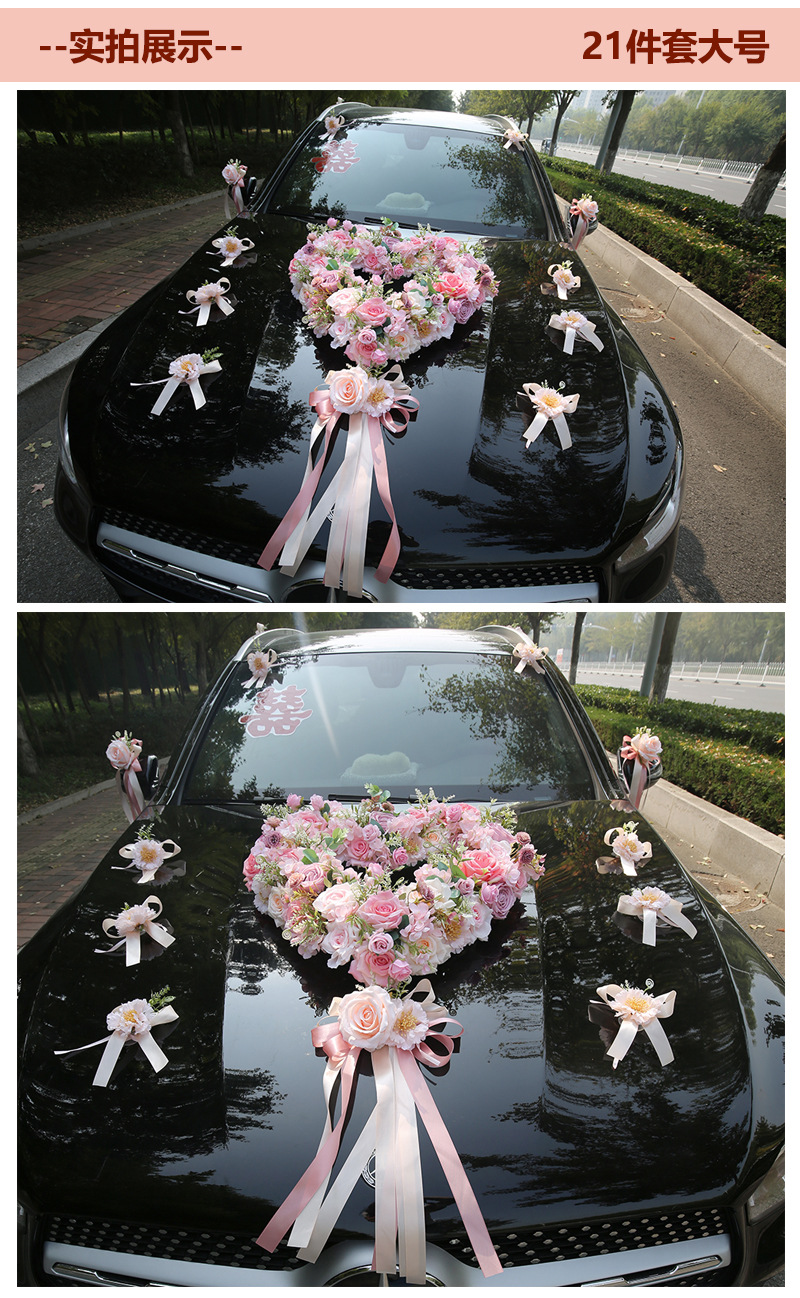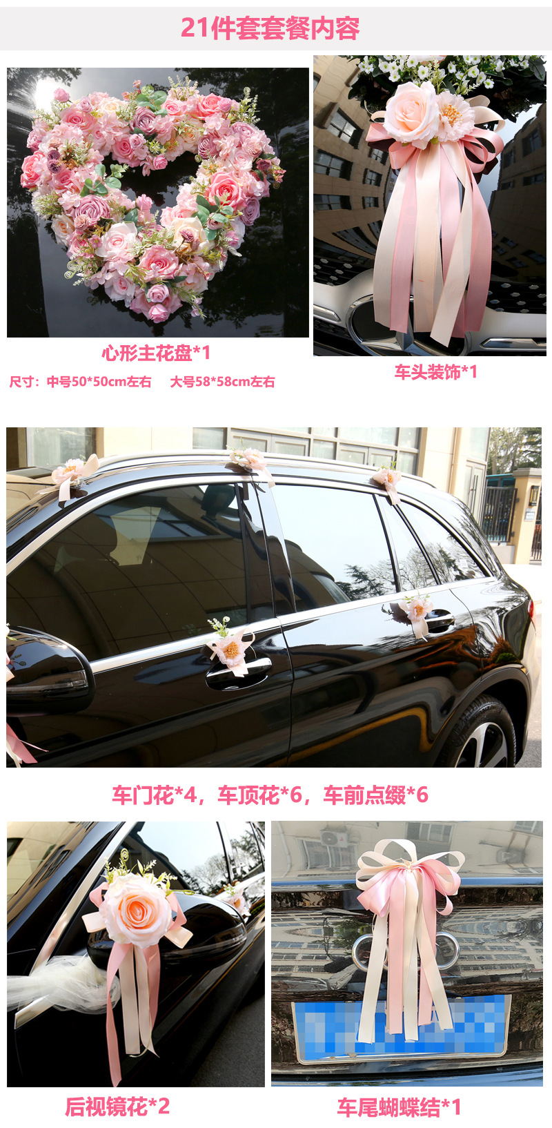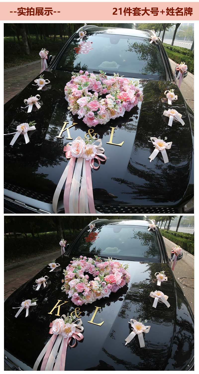 웨딩 카 꽃 핑크 웨딩 카 장식 꽃 메인 웨딩 카 꽃 머리 웨딩 팀 꽃 머리 풀 꽃 하트 모양의 모리 스타일