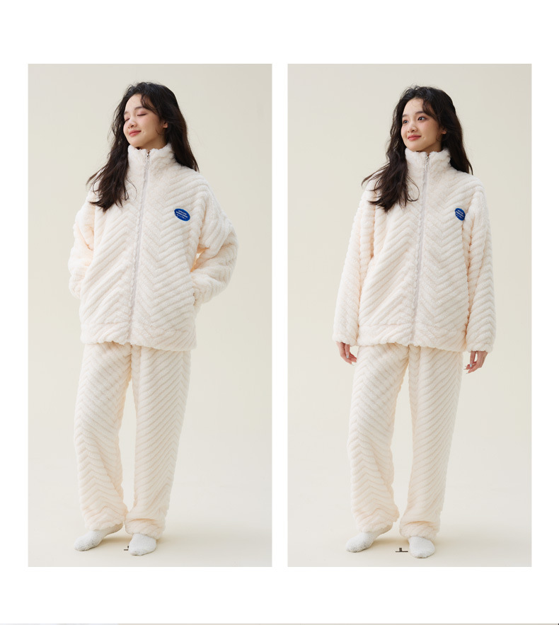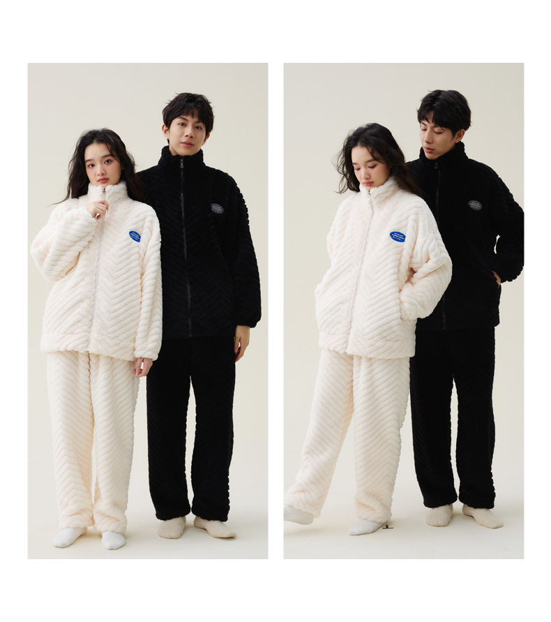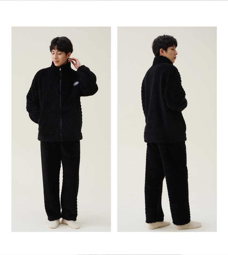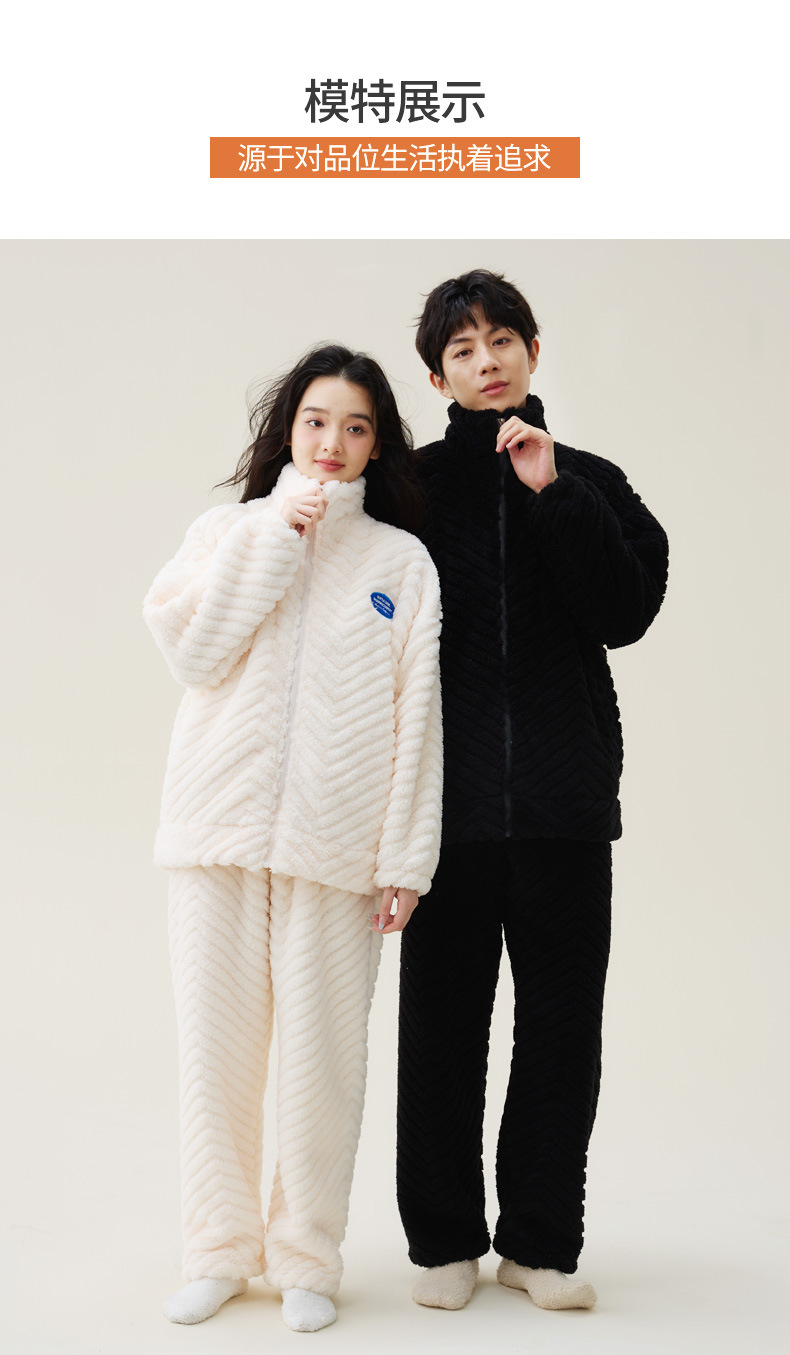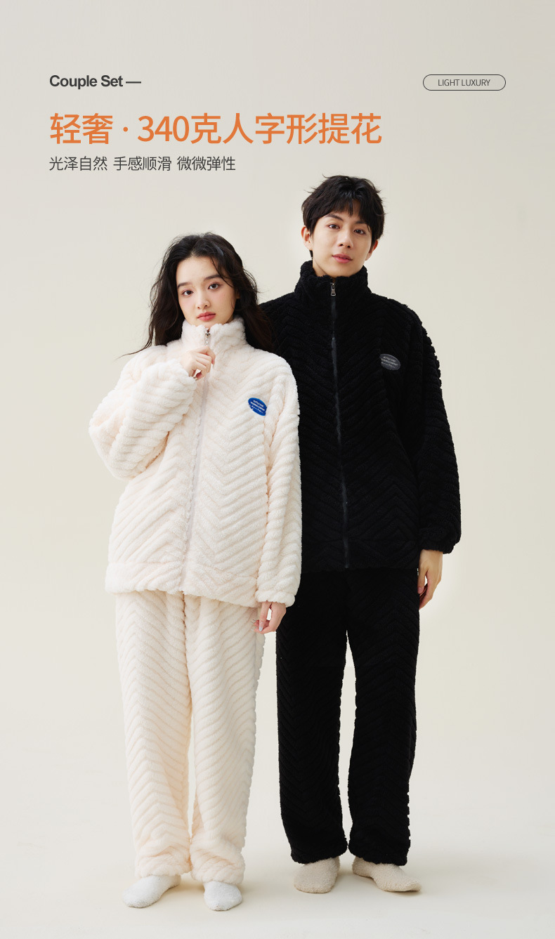 재고 커플 잠옷 여성의 겨울 두꺼운 산호 양털 홈 옷 남자 가을 플란넬 지퍼 세트