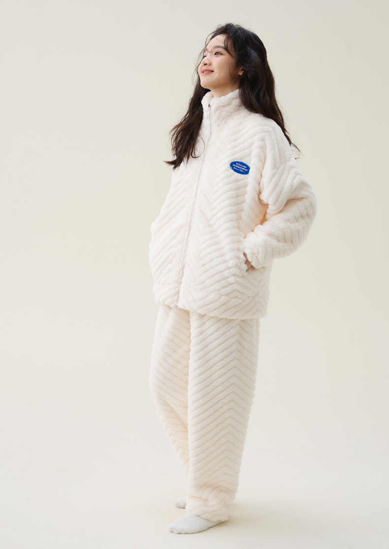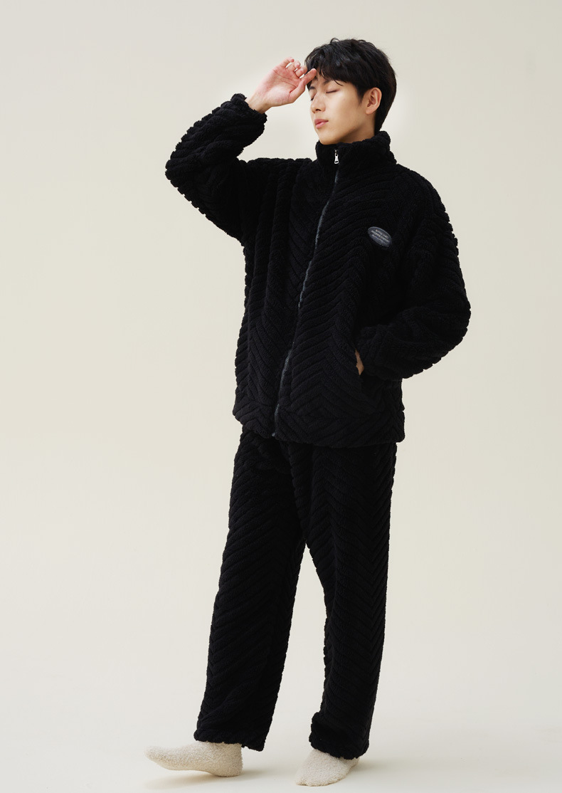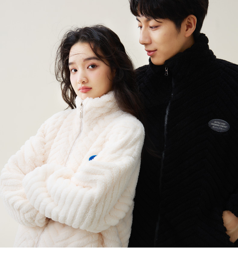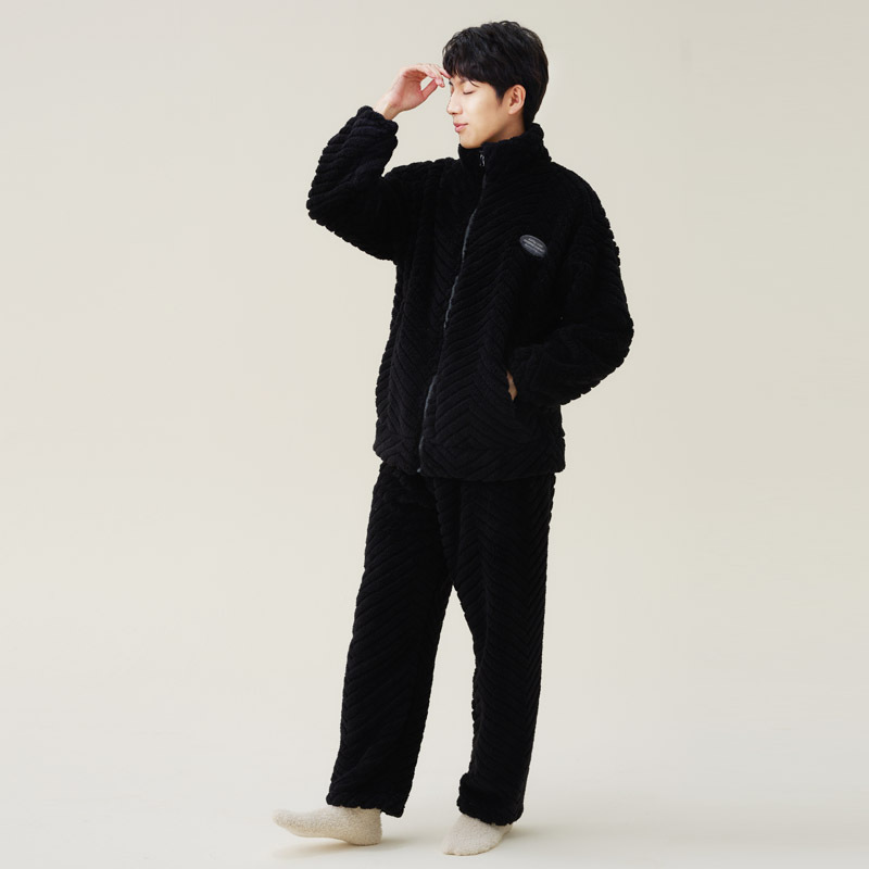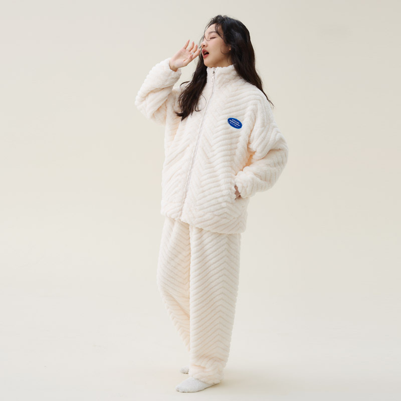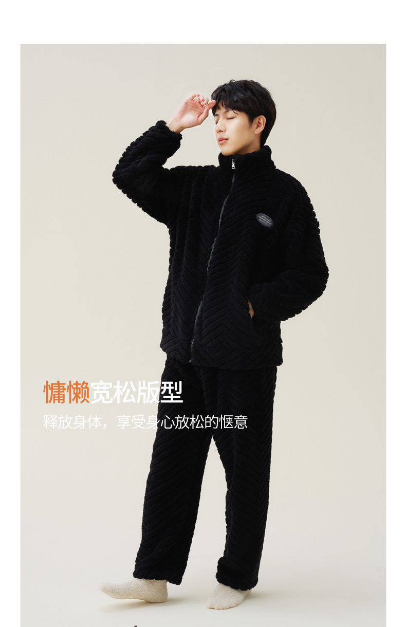 재고 커플 잠옷 여성의 겨울 두꺼운 산호 양털 홈 옷 남자 가을 플란넬 지퍼 세트