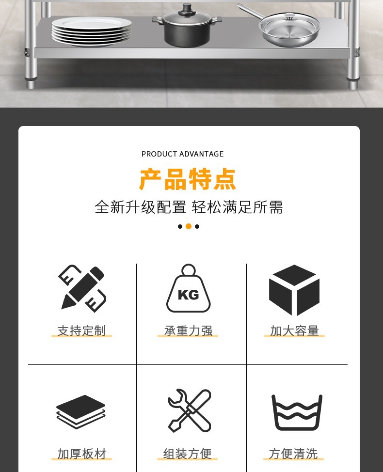 304 두꺼운 스테인레스 스틸 작업대 테이블 3 층 또는 2 층 Dhe 호텔 상업용 주방 특수 절단 콘솔