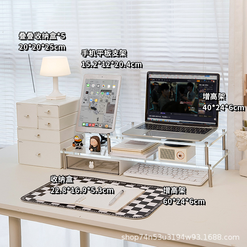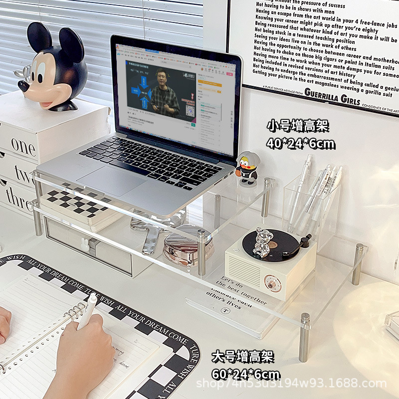 아크릴 데스크탑 컴퓨터 높은 랙 투명 스탠드 데스크탑 노트북 오피스 스토리지 모니터 스토리지 랙