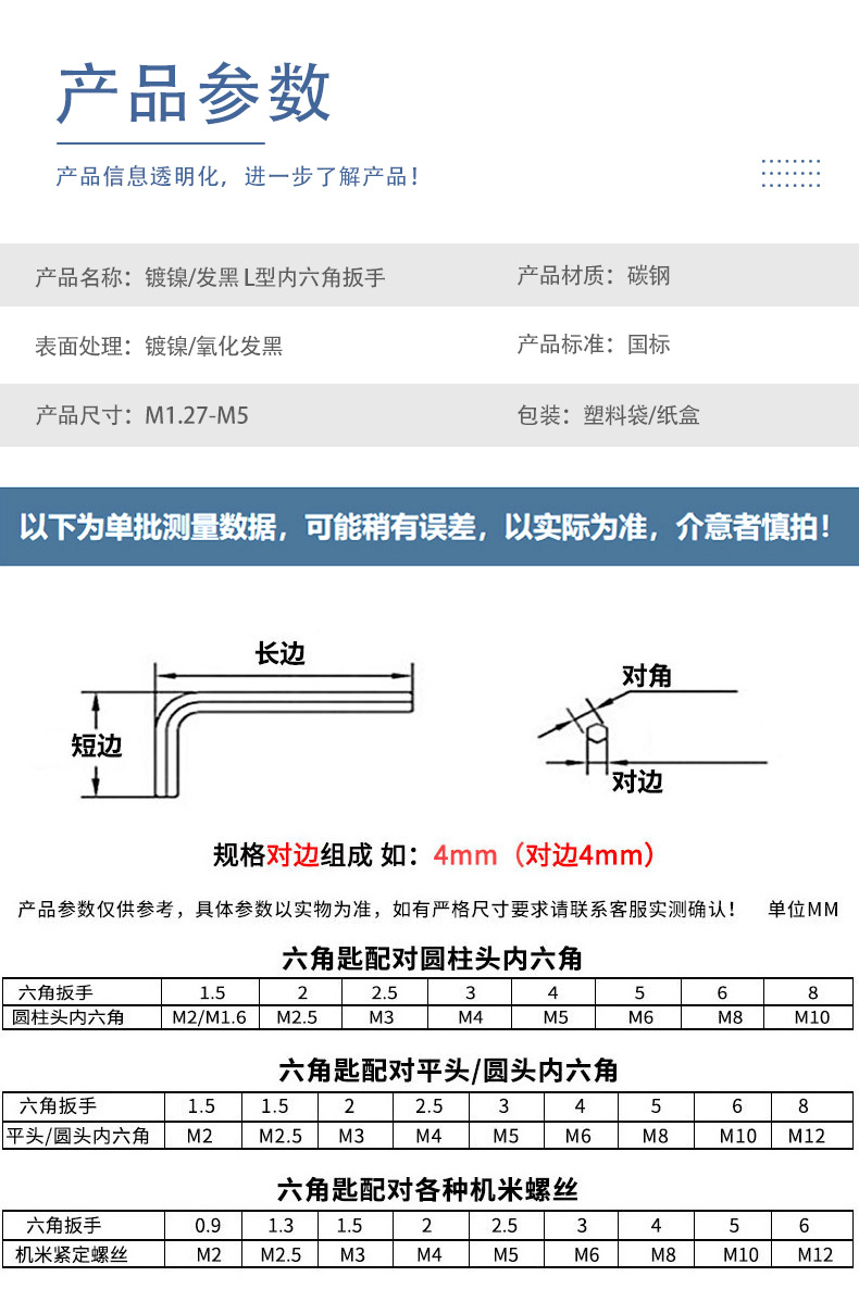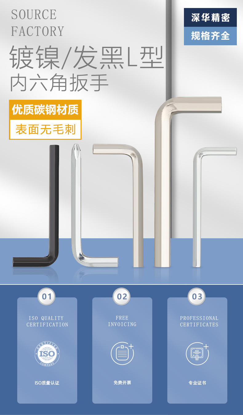 니켈 도금 검정색 육각 렌치 플랫 헤드 L 자형 육각 렌치 하드웨어 도구 육각 키 M1.27-M8스토어 가기