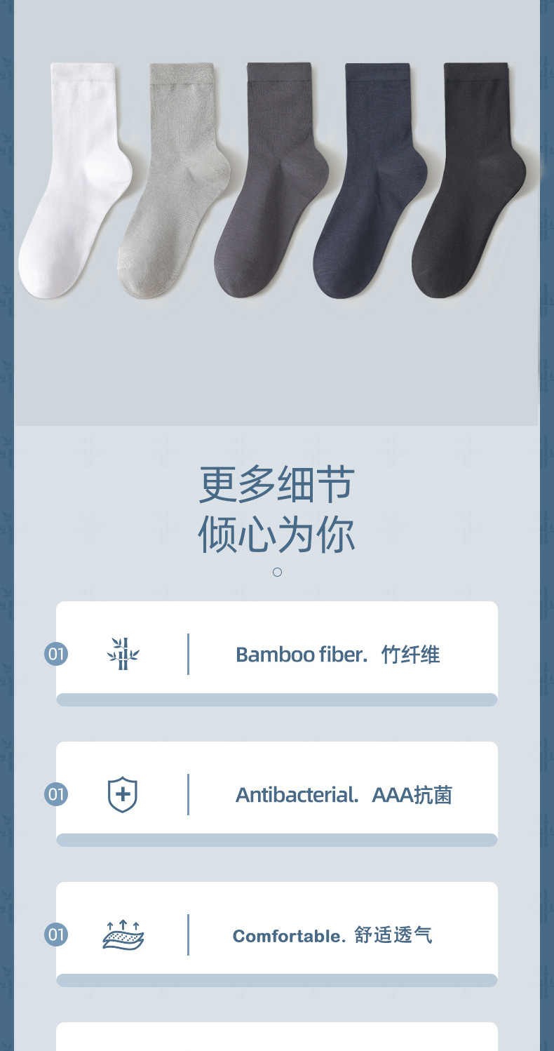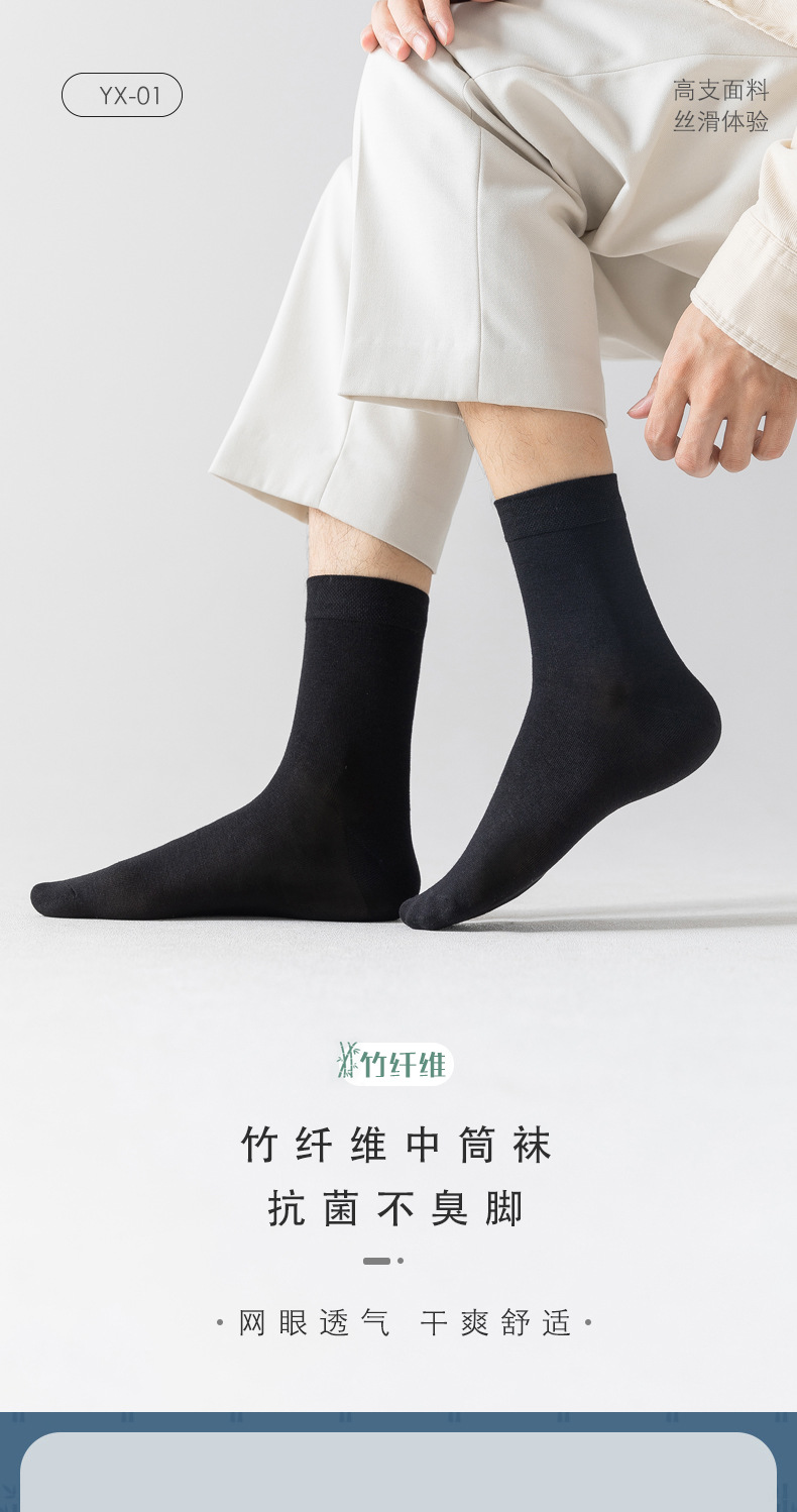 중간 튜브 양말 남성 대나무 섬유 단색 7A 항균 캐주얼 비즈니스 봄과 여름 통기성 땀 흡수성 양말면 양말 제조 업체 도매