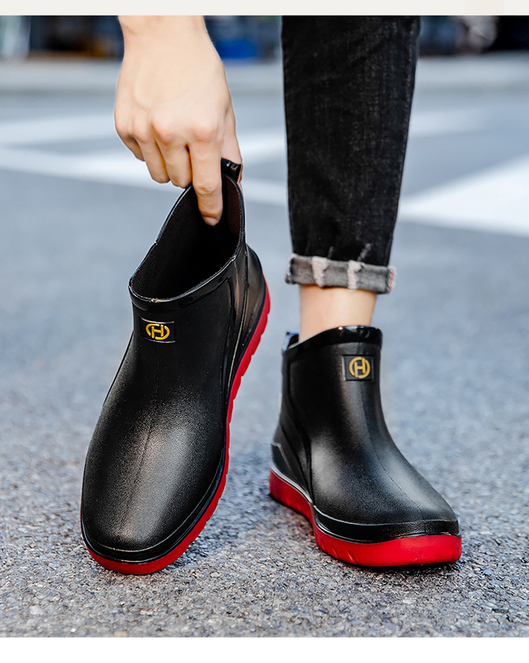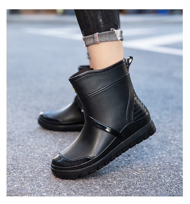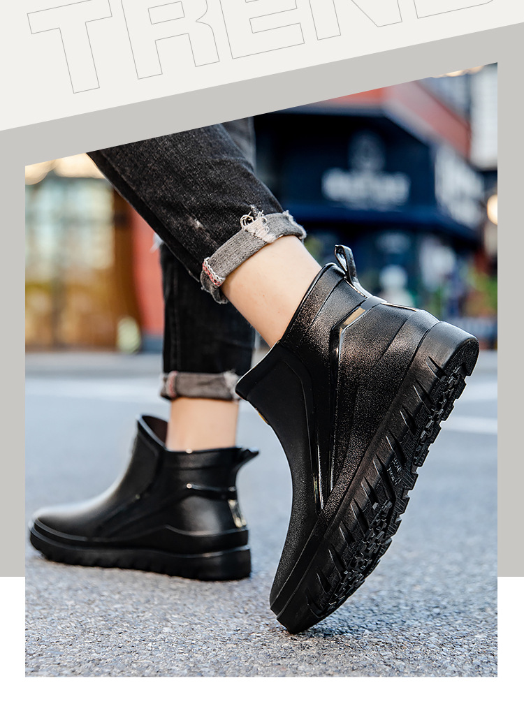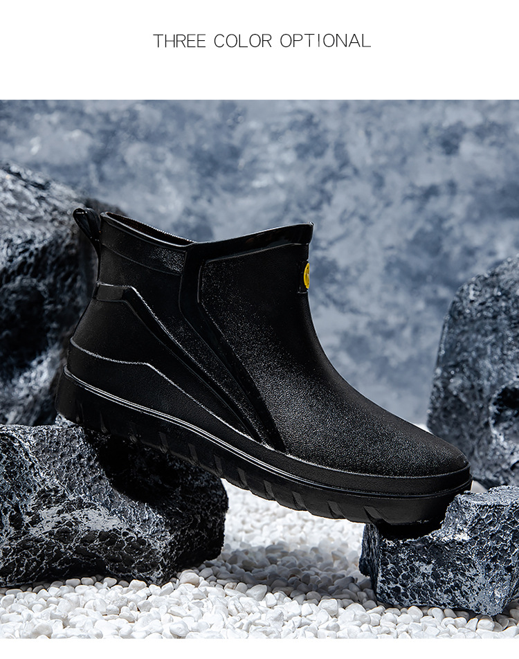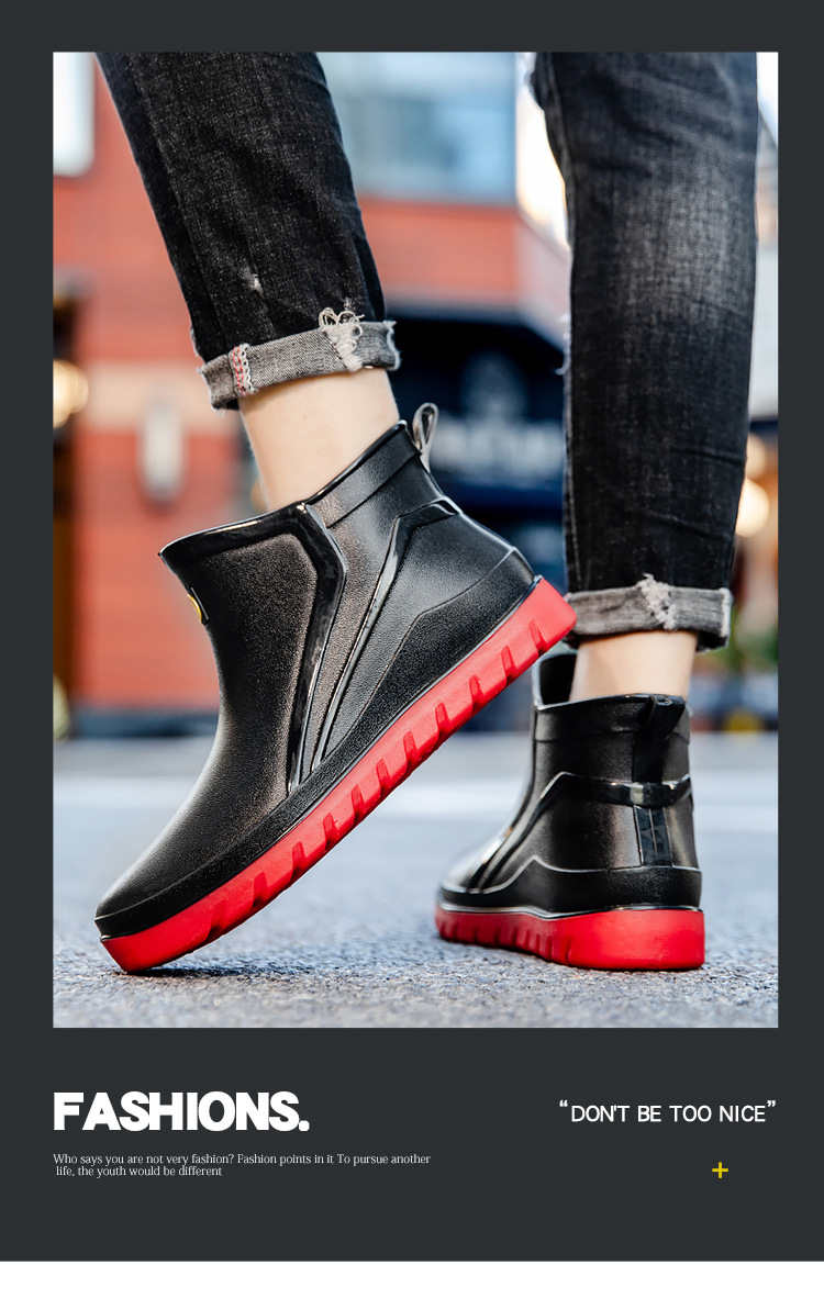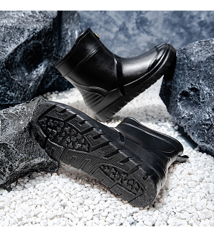 트렌디 한 남성 야외 짧은 튜브 블랙 비 신발 미끄럼 방지 방수 장화 구화 고무 신발 남성용 비 부츠 따뜻한 중형 튜브 고무 신발 남성스토어 가기