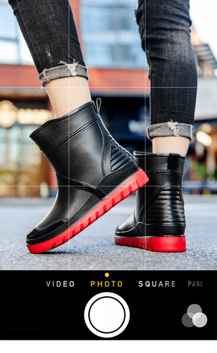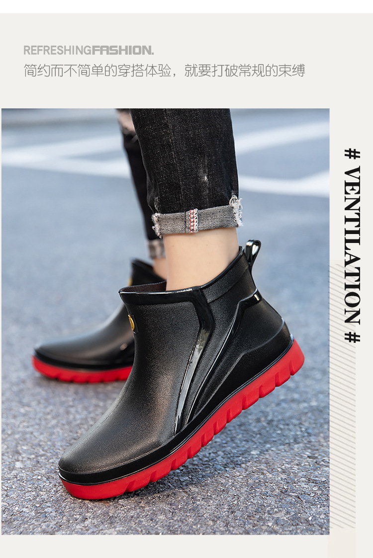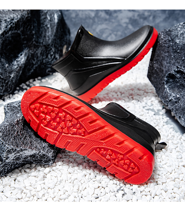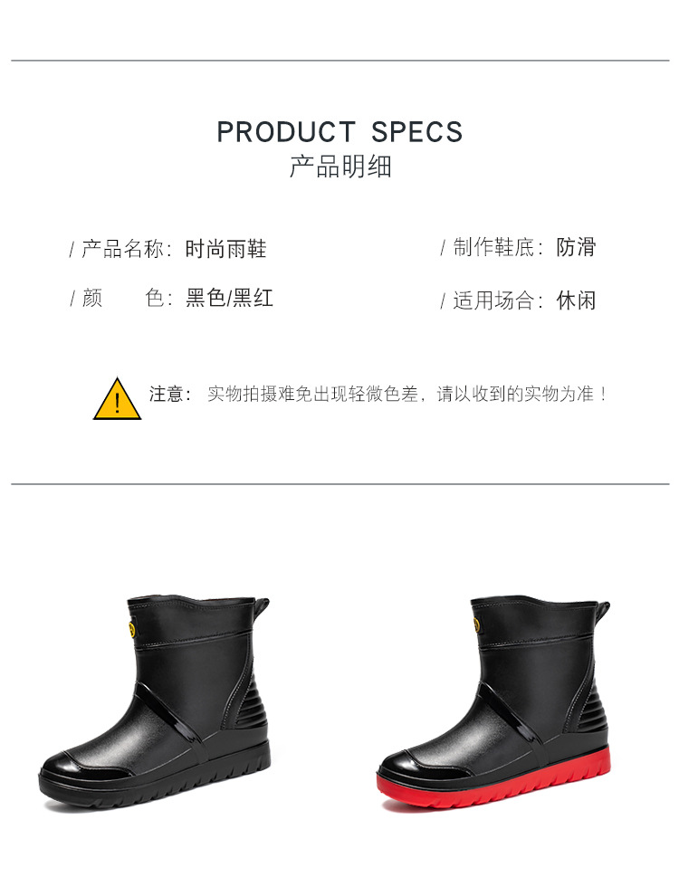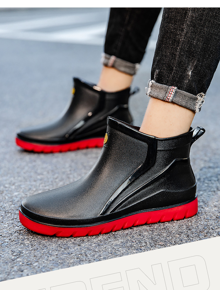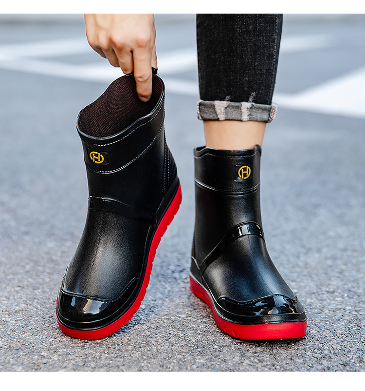 트렌디 한 남성 야외 짧은 튜브 블랙 비 신발 미끄럼 방지 방수 장화 구화 고무 신발 남성용 비 부츠 따뜻한 중형 튜브 고무 신발 남성스토어 가기