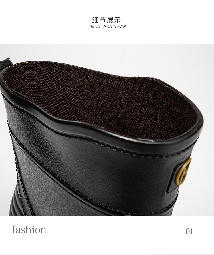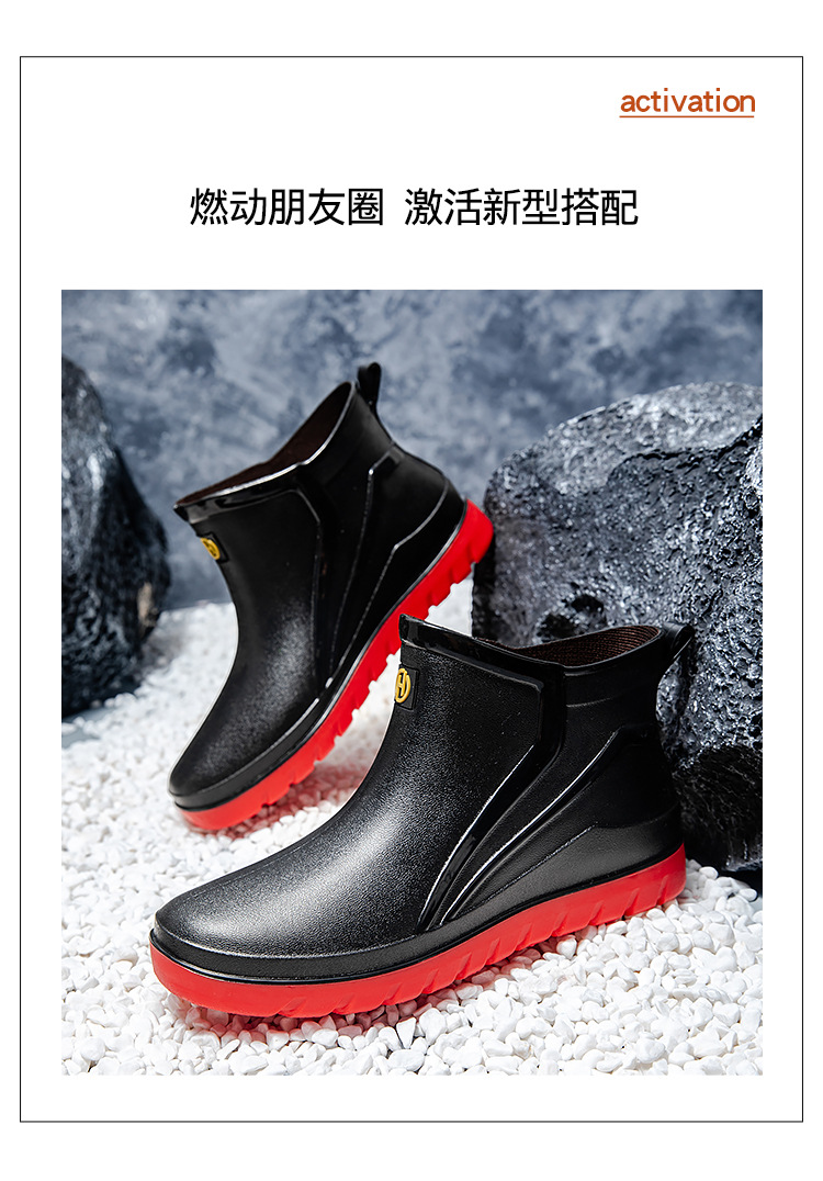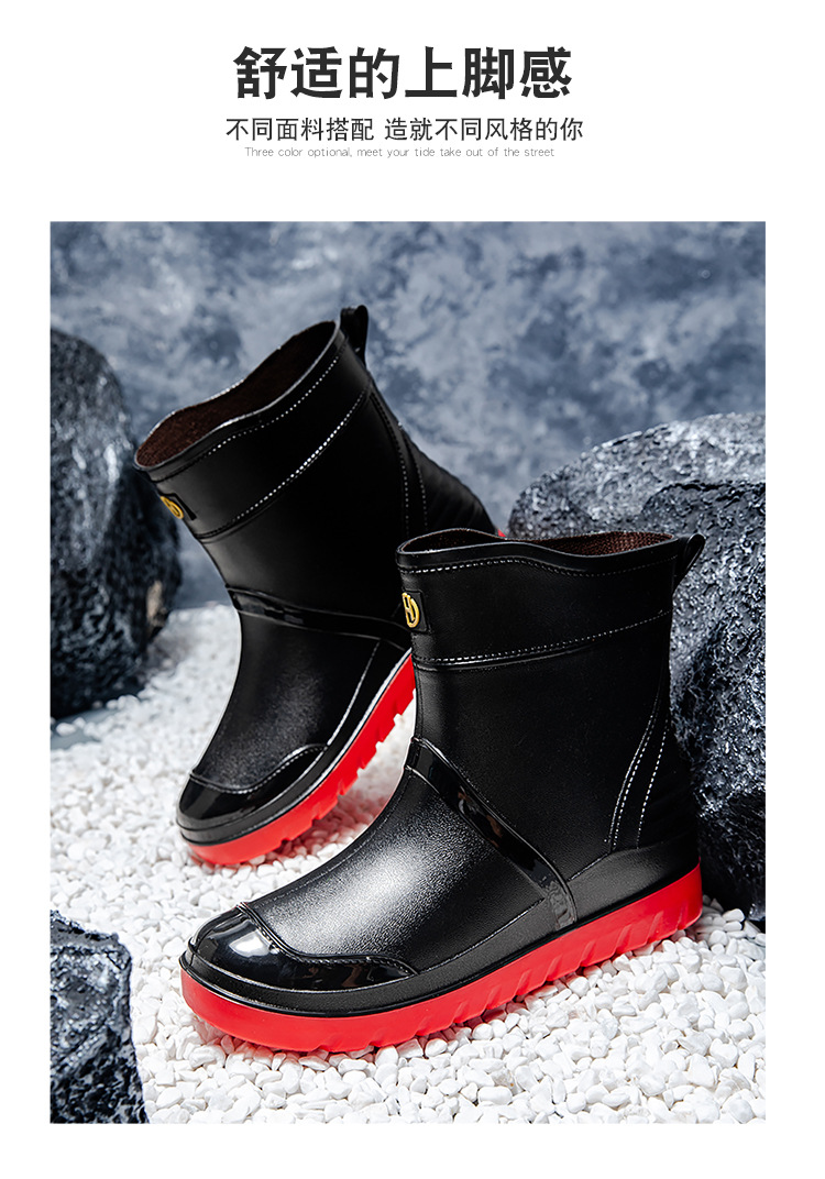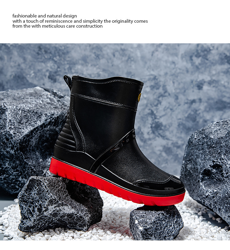 트렌디 한 남성 야외 짧은 튜브 블랙 비 신발 미끄럼 방지 방수 장화 구화 고무 신발 남성용 비 부츠 따뜻한 중형 튜브 고무 신발 남성