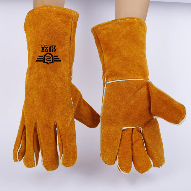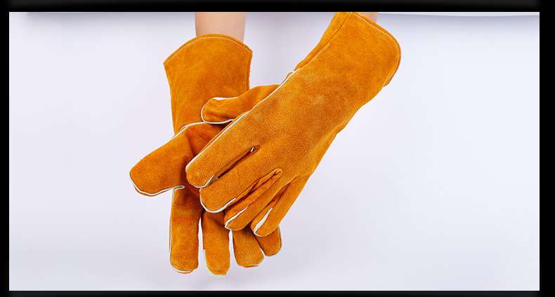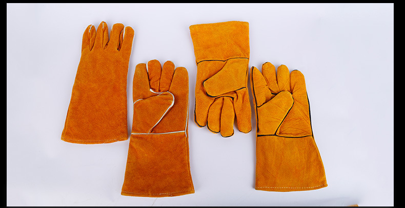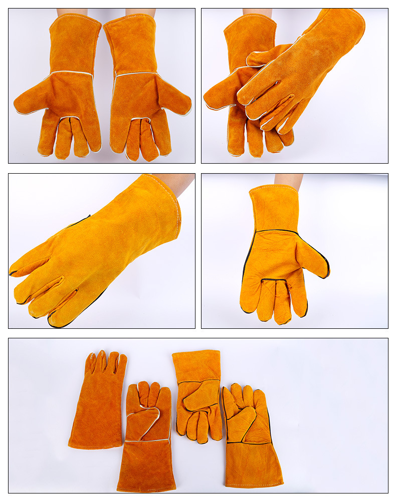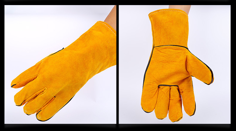 • 노란색 소가죽 AB 등급 안감 용접 장갑 33cm