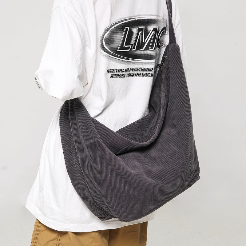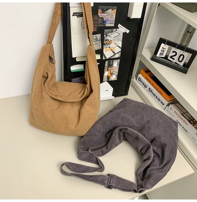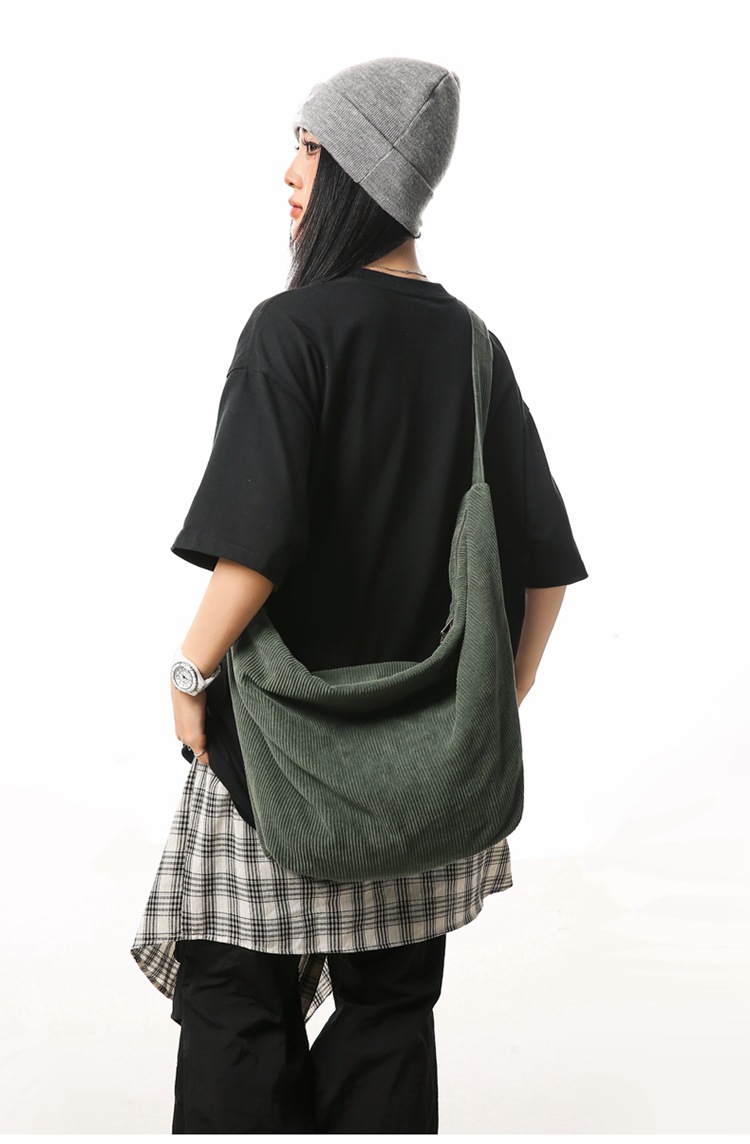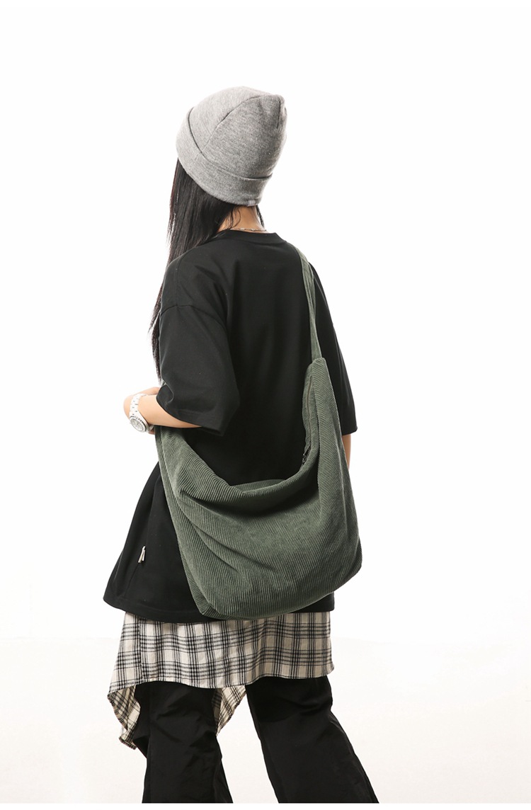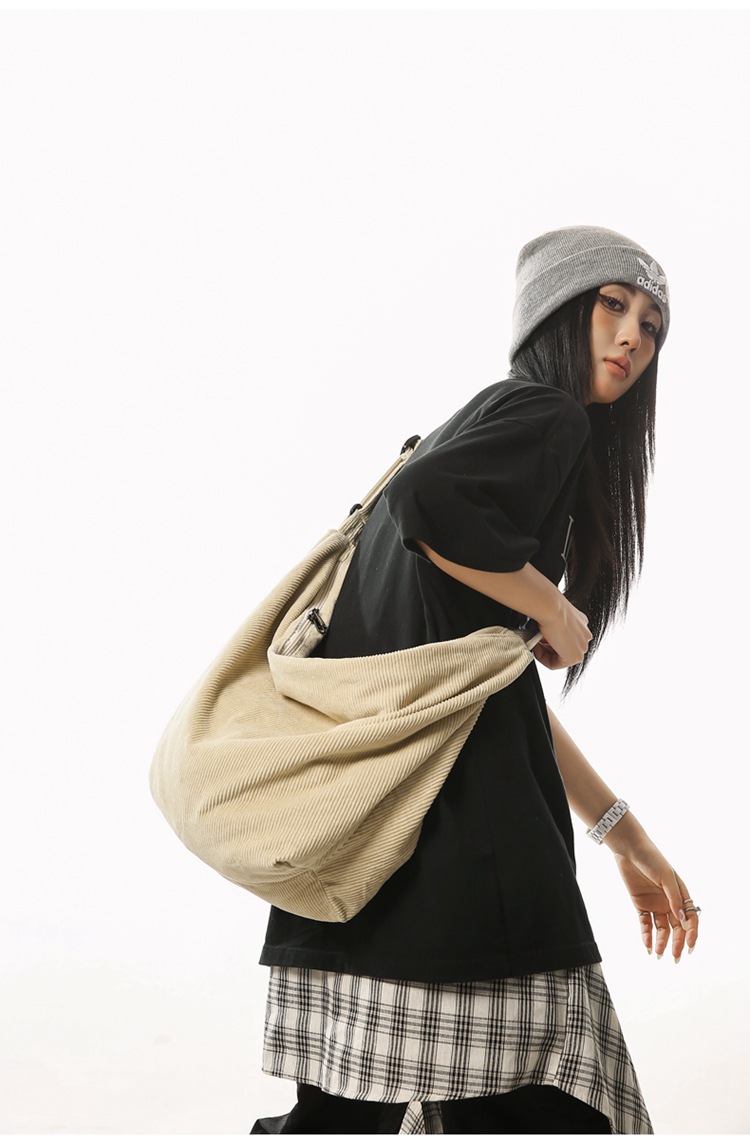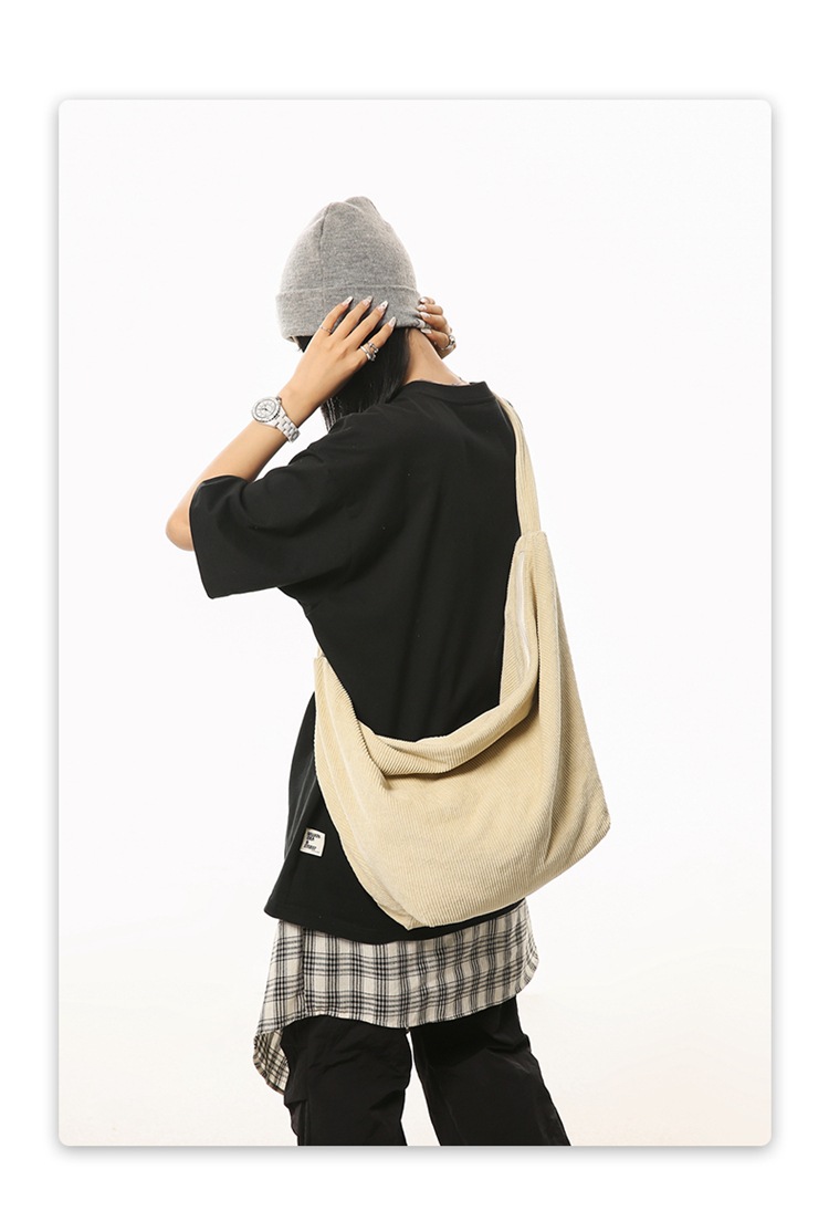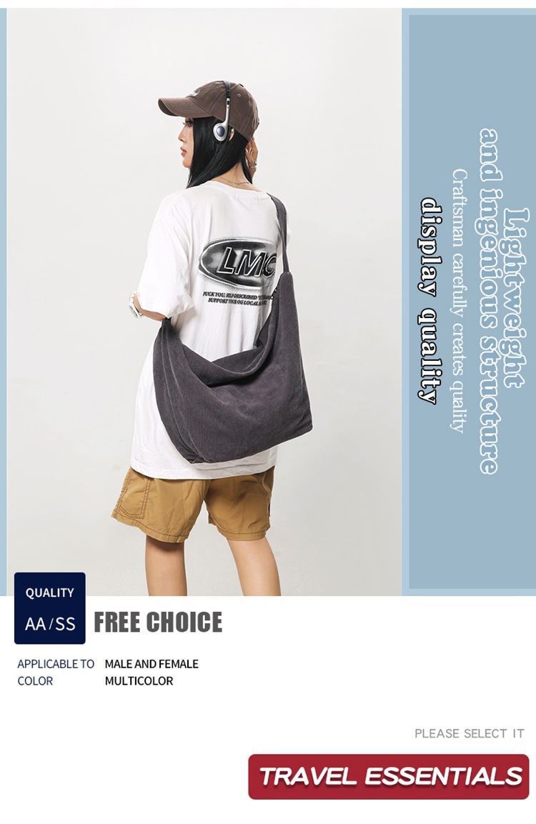 일본 거리 크로스 바디 백 남녀 2024 새로운 하라주쿠 패션 브랜드 레트로 코듀로이 숄더 백 학생 클래스 백스토어 가기