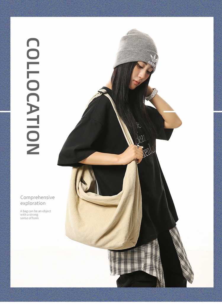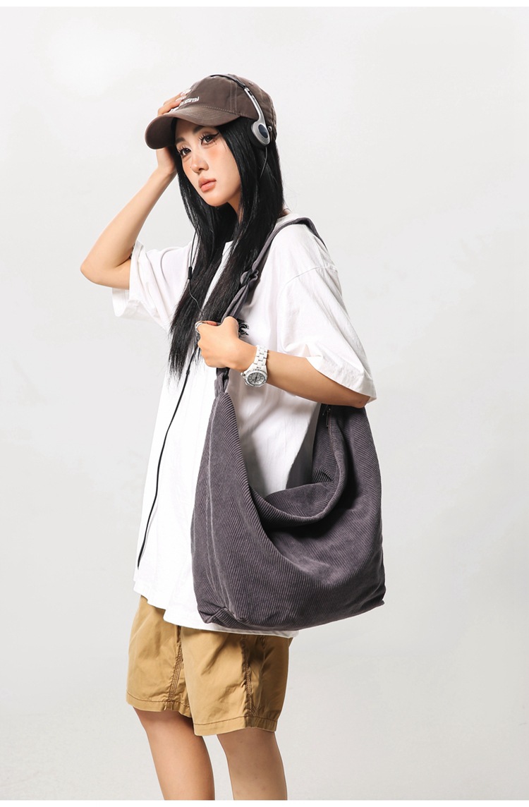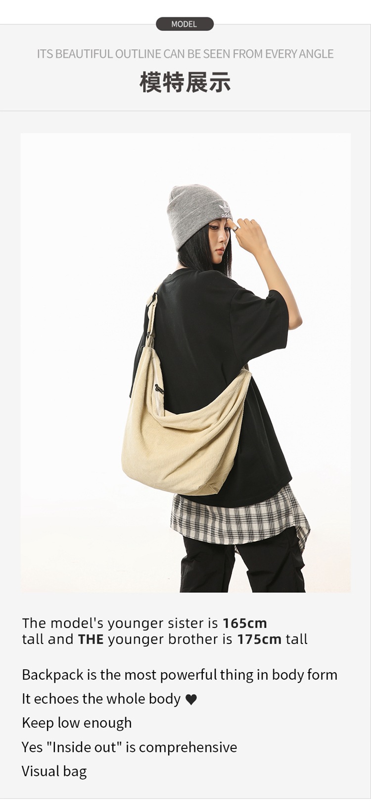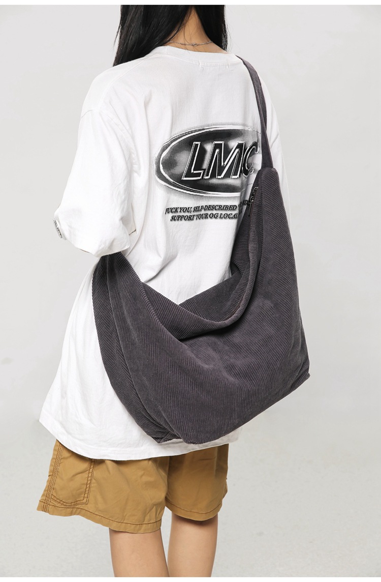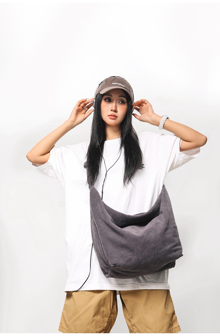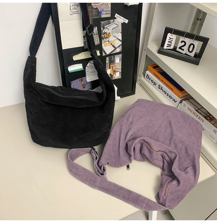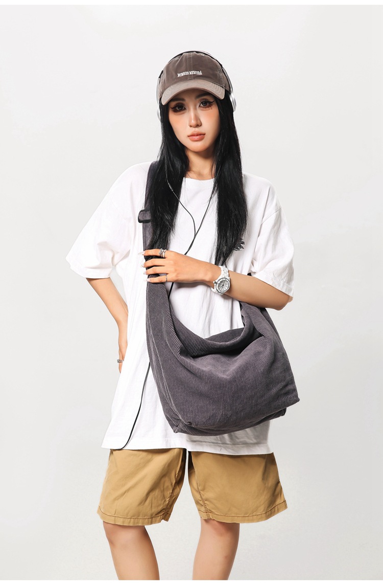 일본 거리 크로스 바디 백 남녀 2024 새로운 하라주쿠 패션 브랜드 레트로 코듀로이 숄더 백 학생 클래스 백스토어 가기