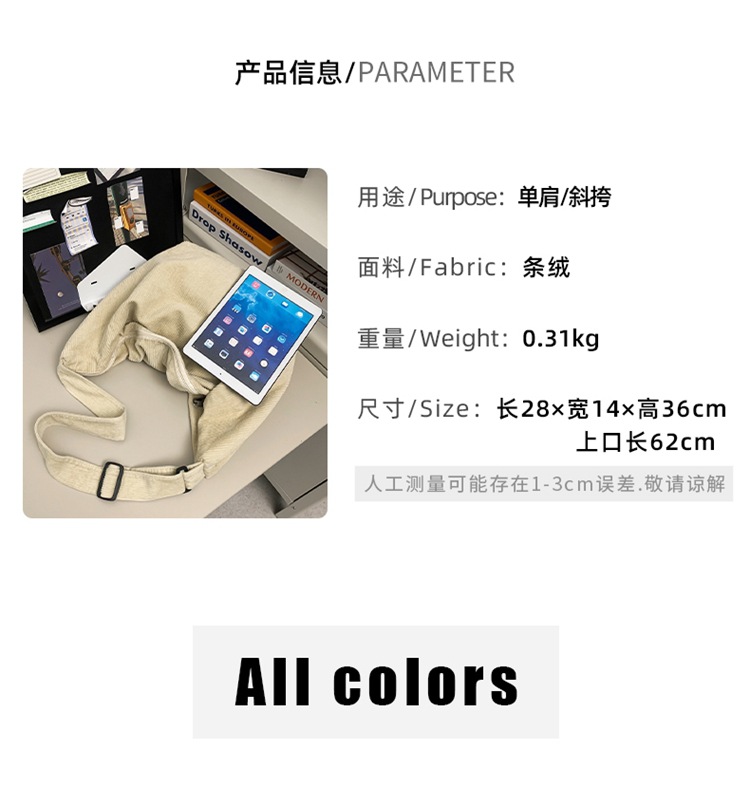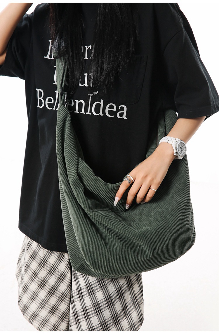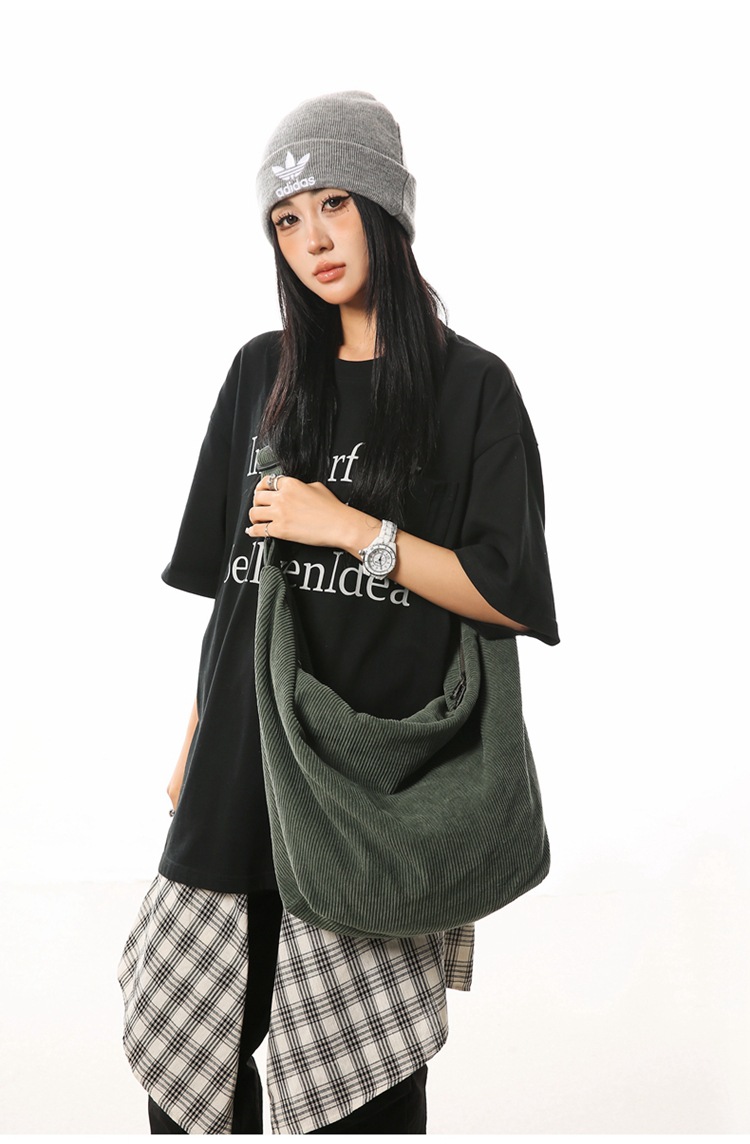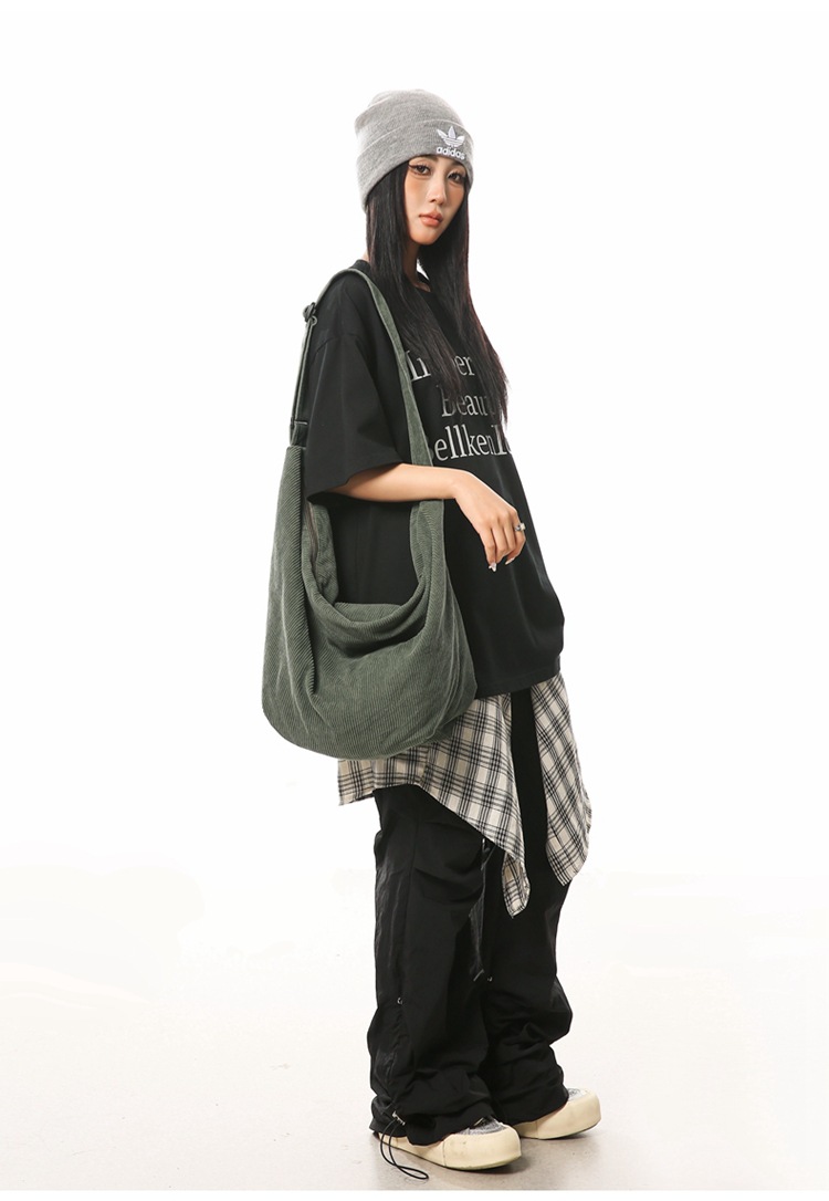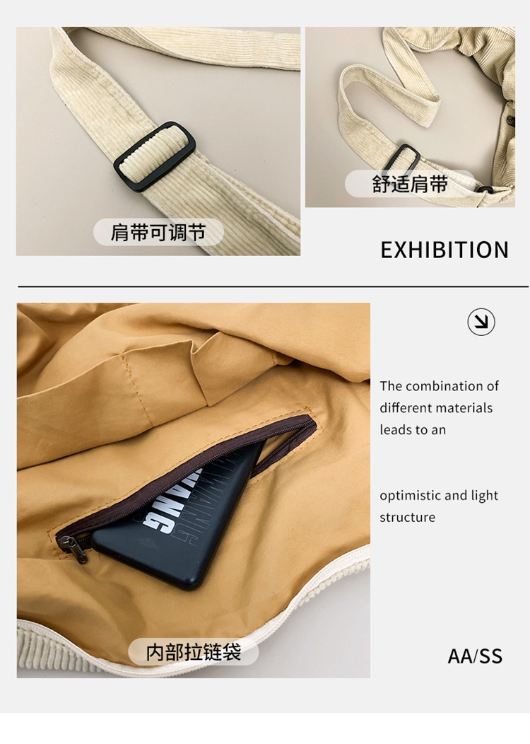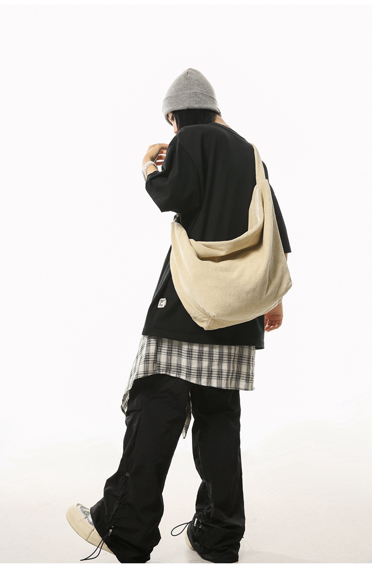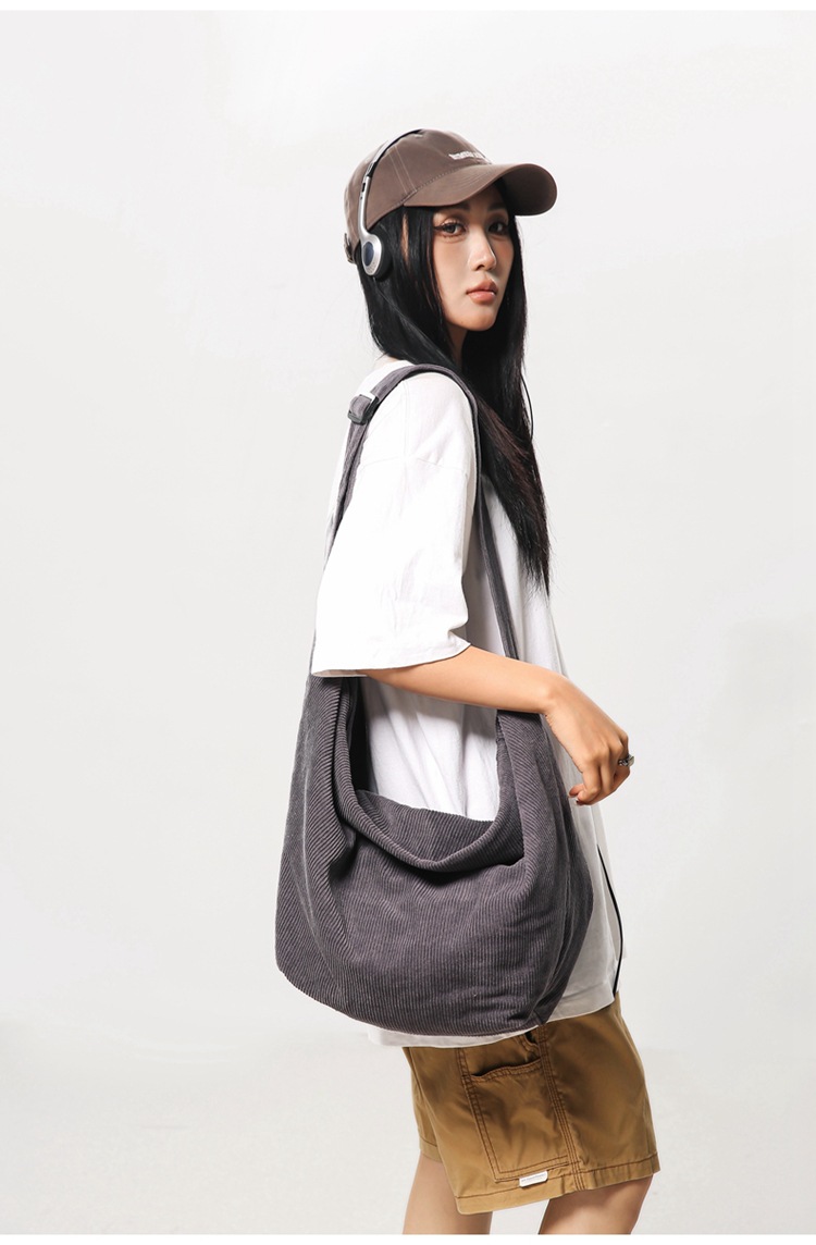 일본 거리 크로스 바디 백 남녀 2024 새로운 하라주쿠 패션 브랜드 레트로 코듀로이 숄더 백 학생 클래스 백스토어 가기