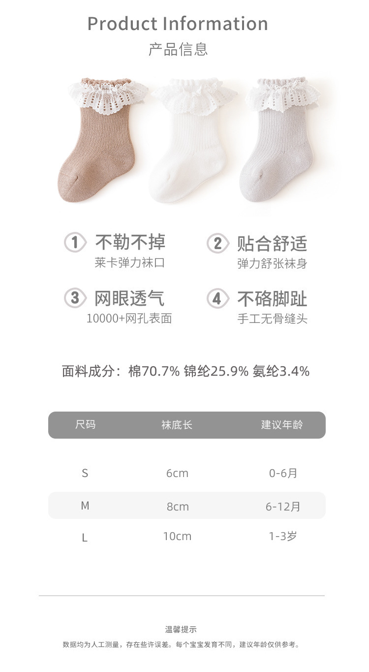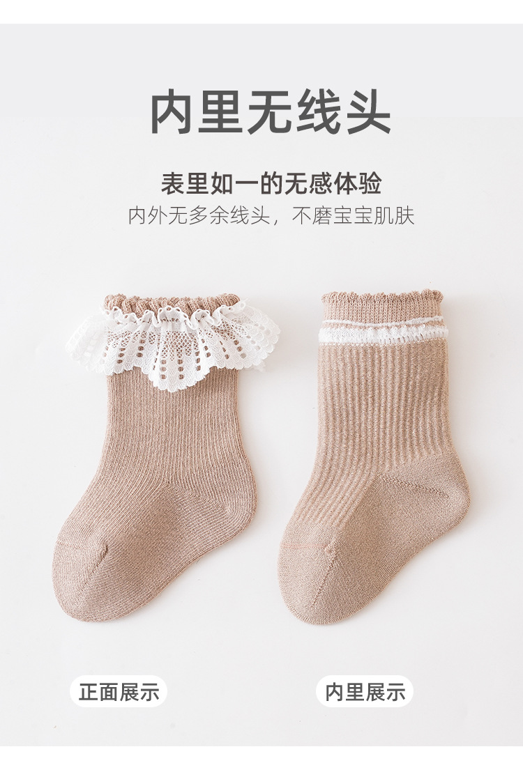 아기 양말 봄과 가을 단색 면 중간 길이 양말 소녀 아기 신생아 어린이 레이스 긴 길이 유행 양말스토어 가기