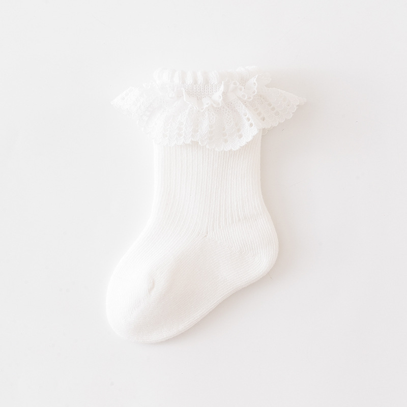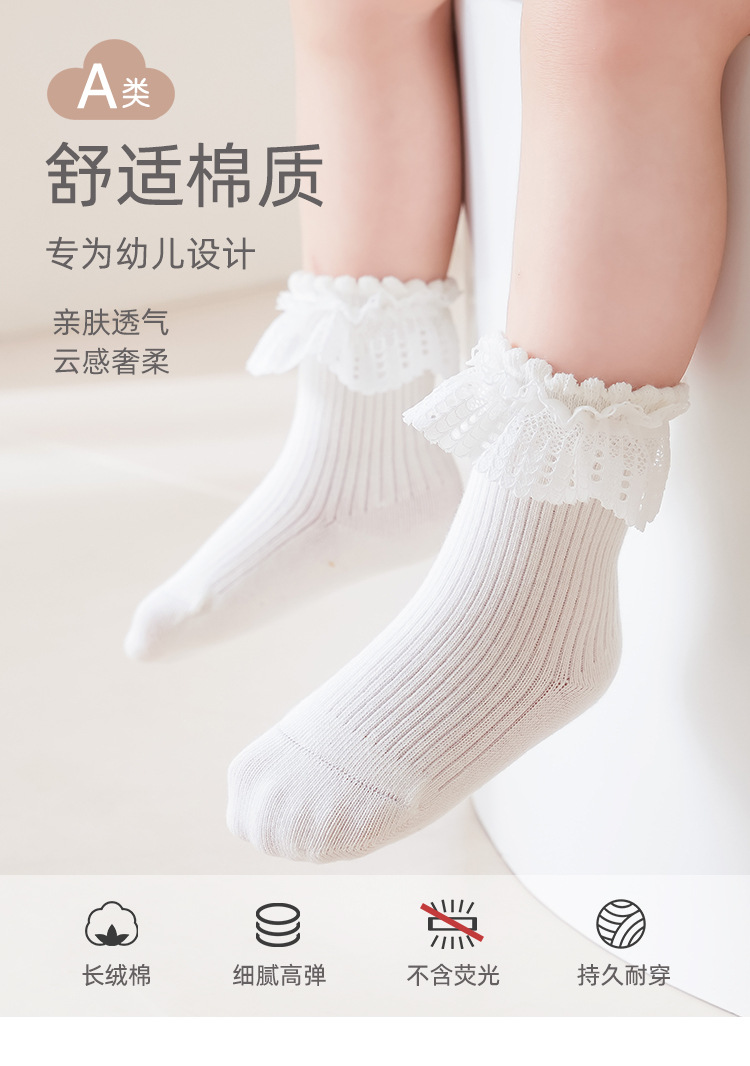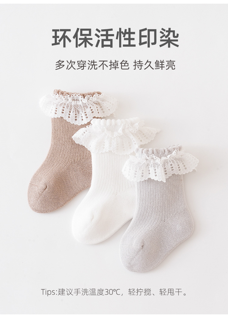 아기 양말 봄과 가을 단색 면 중간 길이 양말 소녀 아기 신생아 어린이 레이스 긴 길이 유행 양말