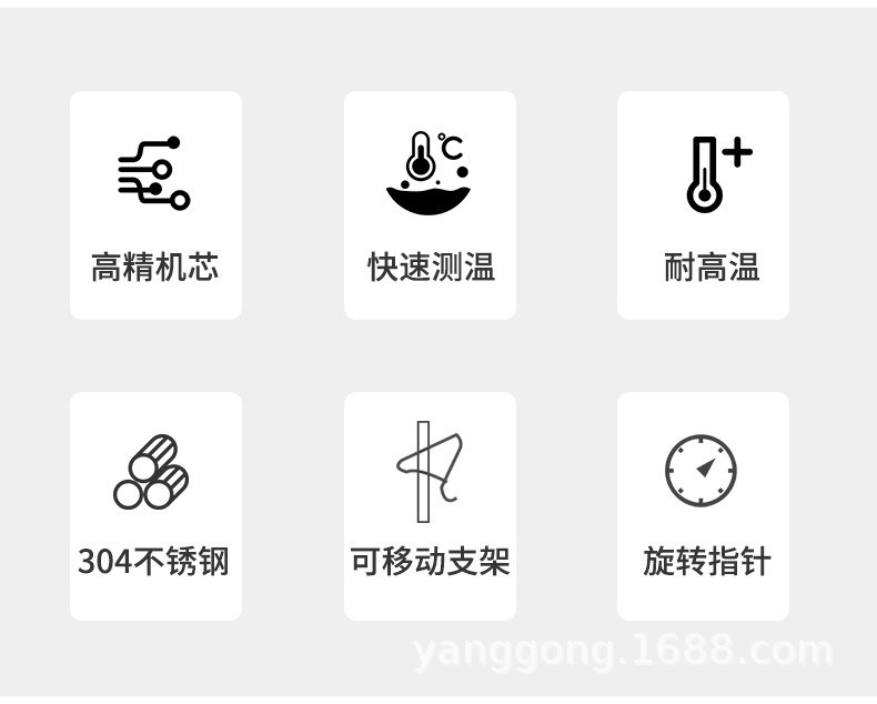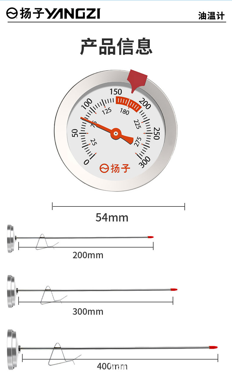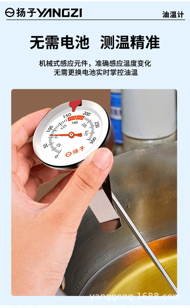 양지 프라이어 식품 가정용 주방 액세서리 오일 온도계 기계 바이메탈 스테인레스 스틸 고정밀 온도계스토어 가기