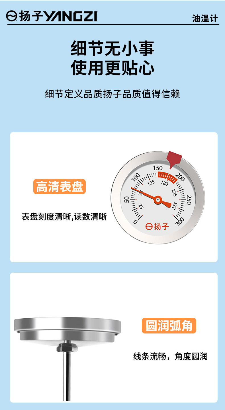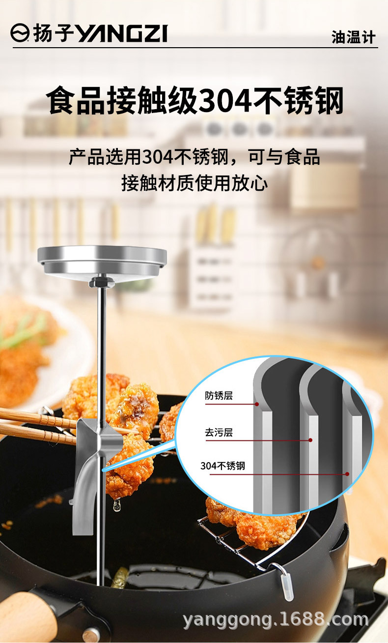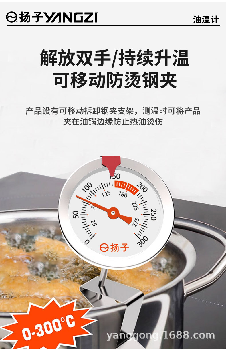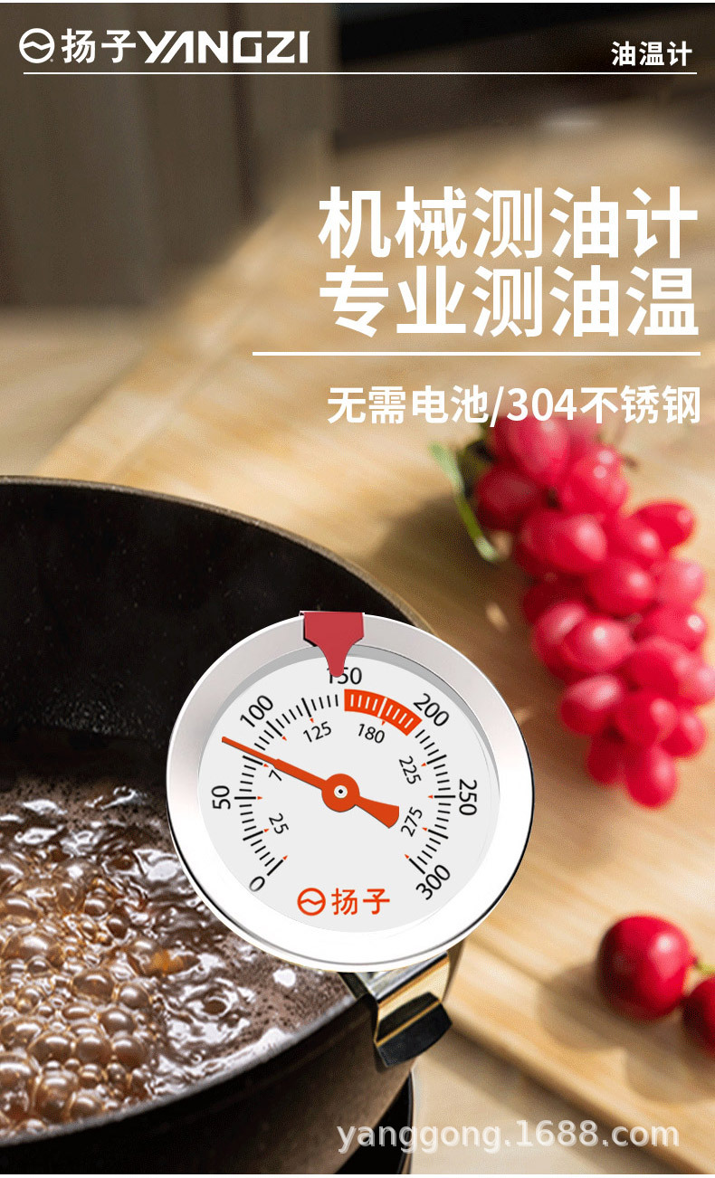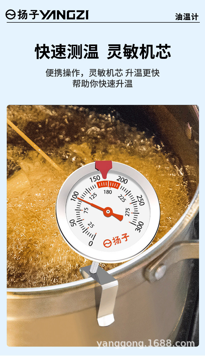 양지 프라이어 식품 가정용 주방 액세서리 오일 온도계 기계 바이메탈 스테인레스 스틸 고정밀 온도계