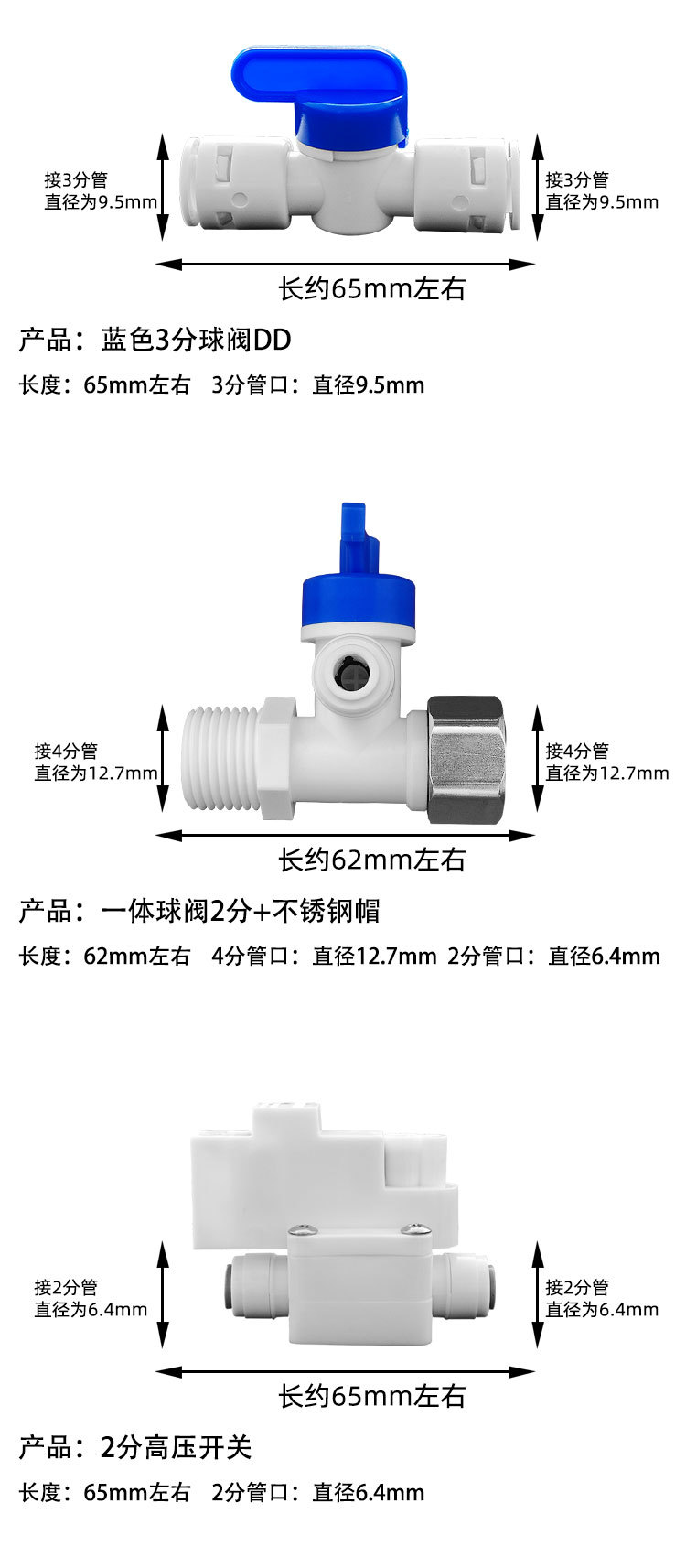 정수기 볼 밸브 2 포인트 스위치 가정용 주방 정수기 2 포인트 3 포인트 빠른 커넥터