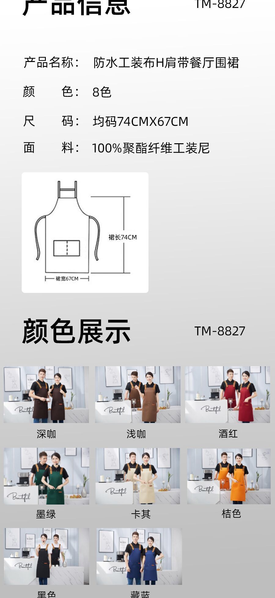 여름 카페 밀크 티 샵 베이킹 샵 레스토랑 방수 앞치마 맞춤형 작업복 로고 설탕 워터 샵 작업복스토어 가기