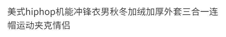 미국식 힙합 기능성 폭행 재킷 남성 가을과 겨울 기모 두꺼운 재킷 3 대 1 후드 스포츠 재킷 연인을위한스토어 가기
