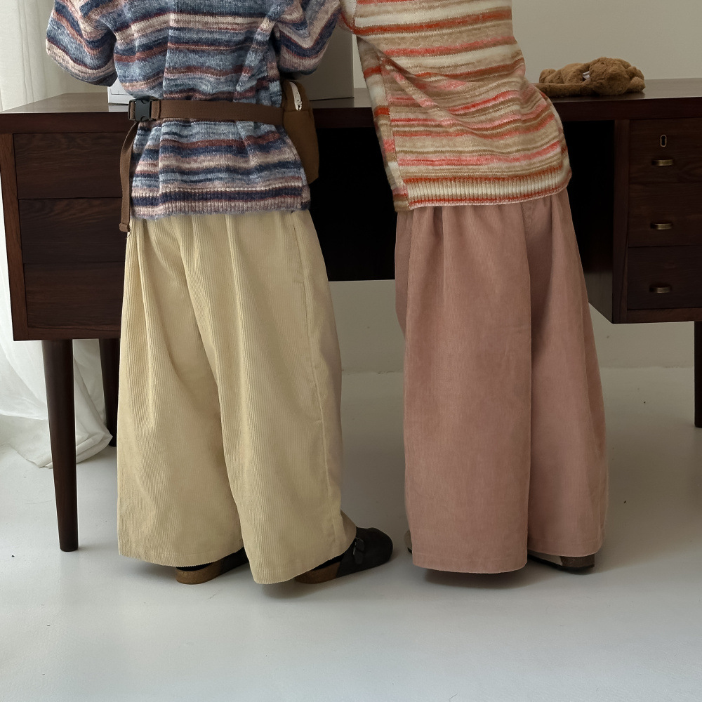 • 가을 2024 코듀로이 넓은 다리 바지 베이지