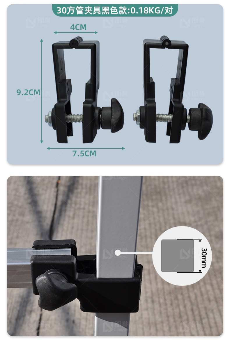 • 30 사각형 튜브 클램프 블랙 (한 쌍)