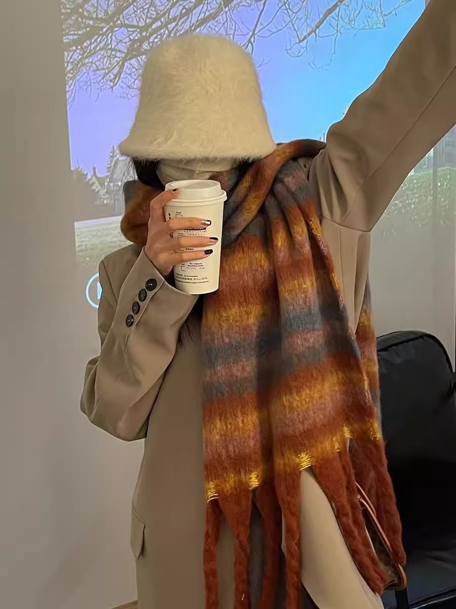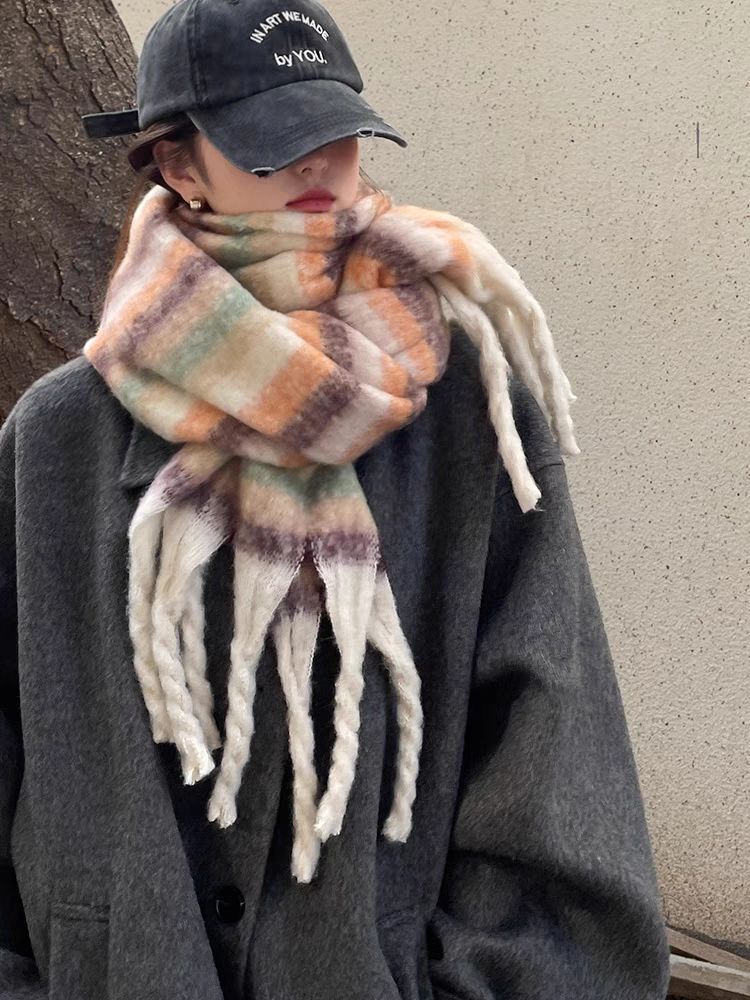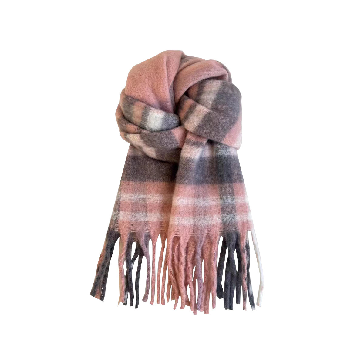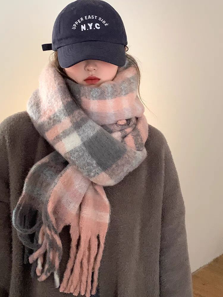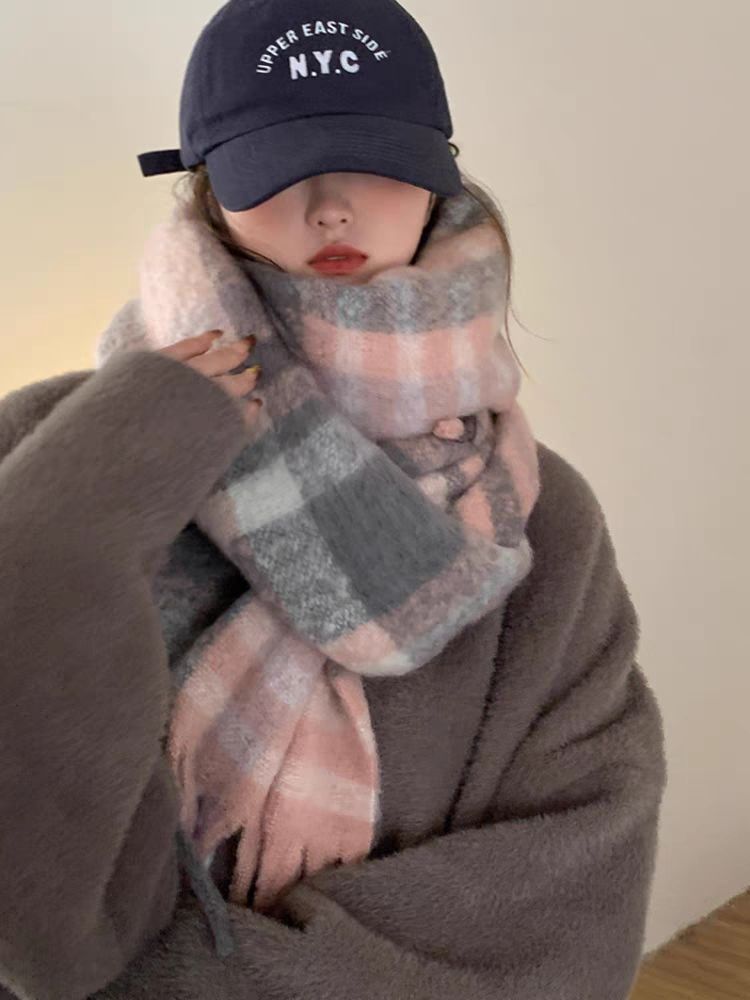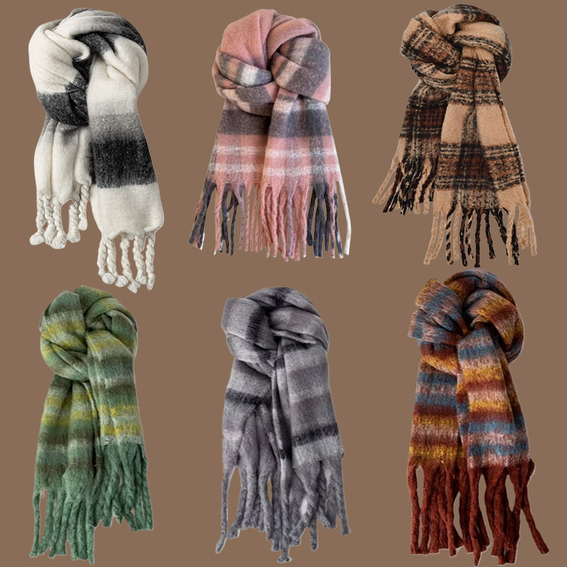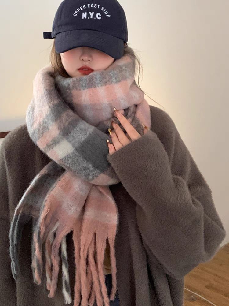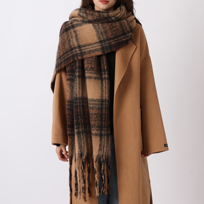 여성용 겨울 스카프 모조 캐시미어 부드러운 촉감 따뜻한 클래식 롱 소프트 스카프 체크무늬 프린지 스카프