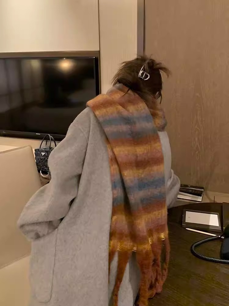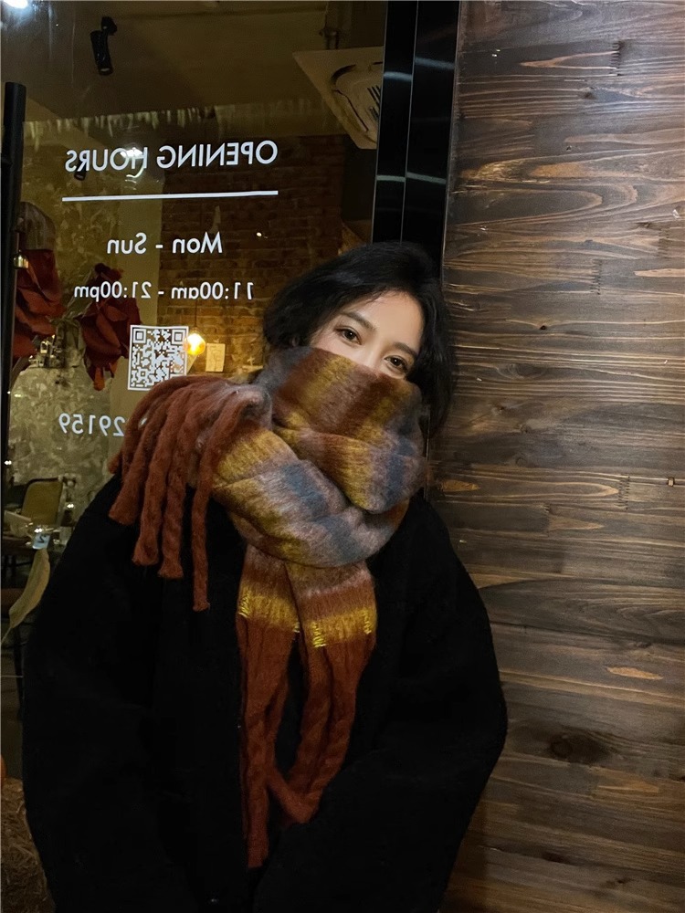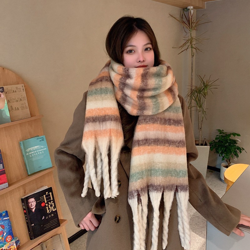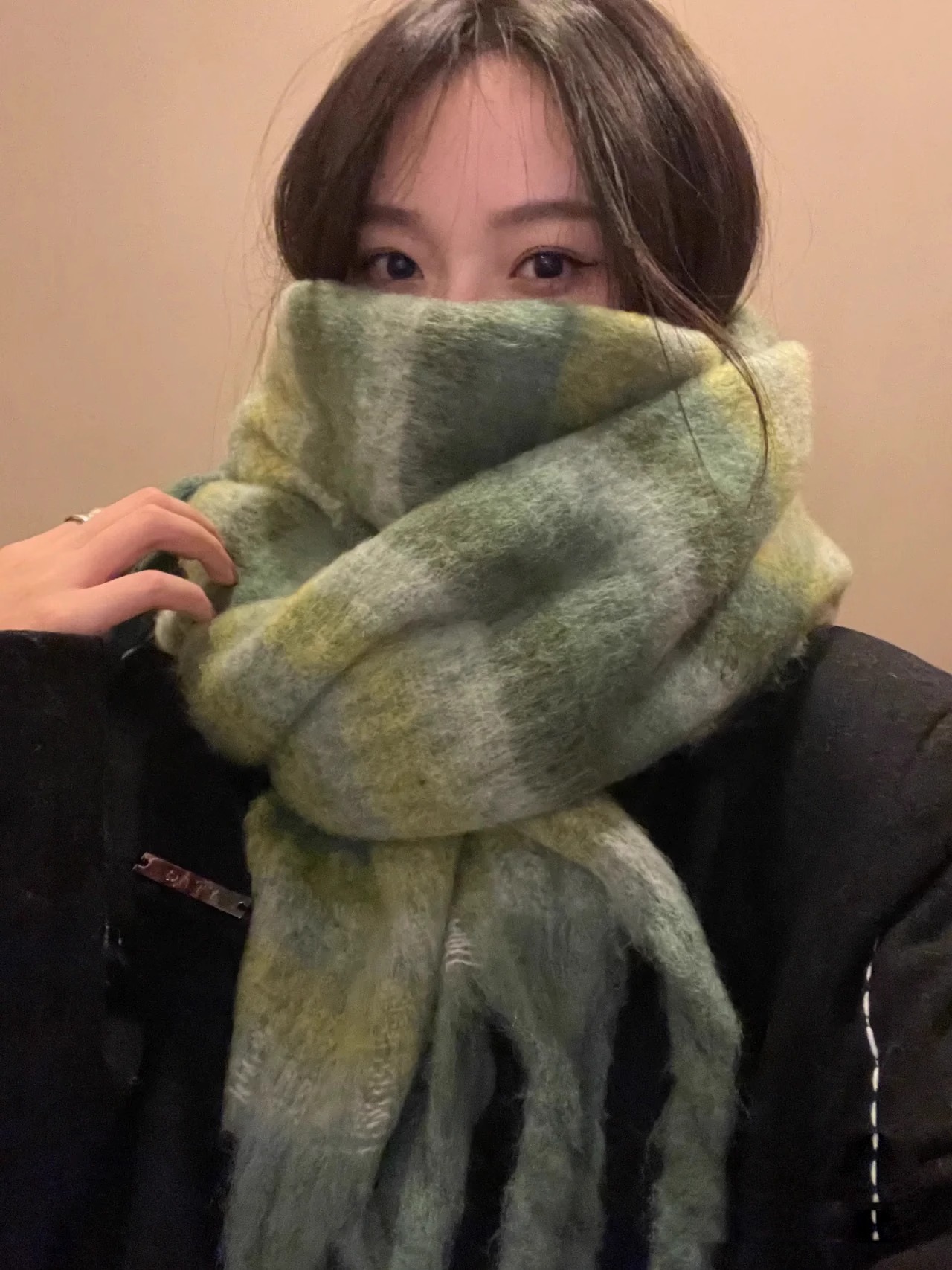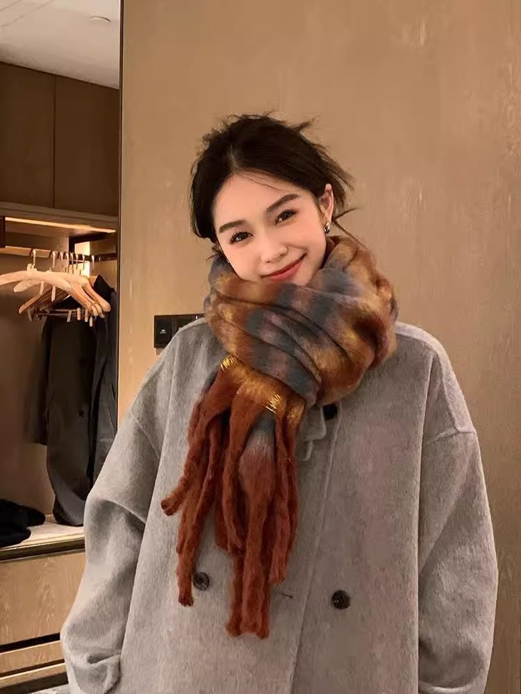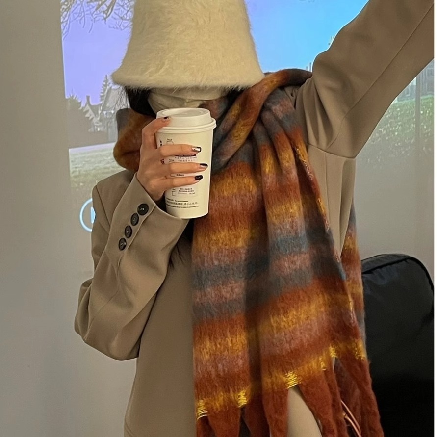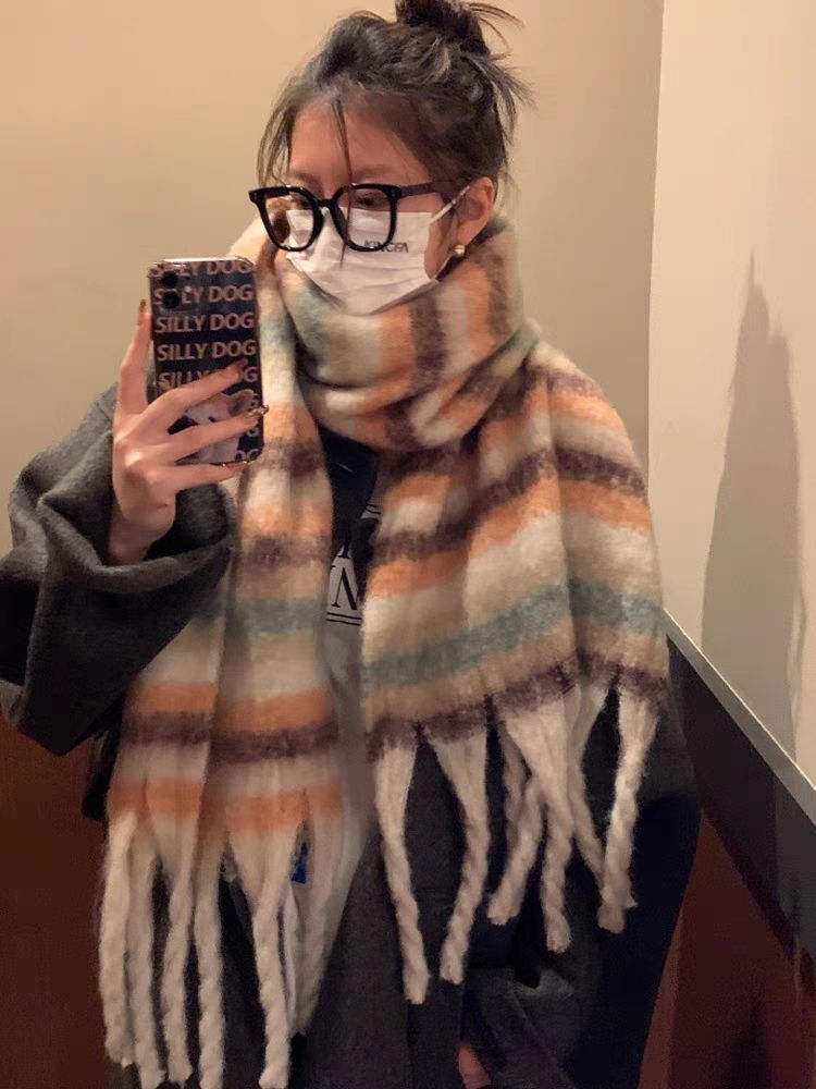 여성용 겨울 스카프 모조 캐시미어 부드러운 촉감 따뜻한 클래식 롱 소프트 스카프 체크무늬 프린지 스카프