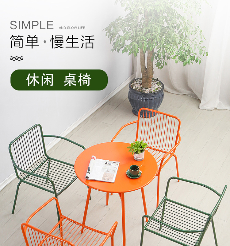 야외 레저 식사 테이블 우유 차 가게 카페 발코니 야외 안뜰 정원 작은 라운드 테이블 인터넷 연예인 단철 테이블
