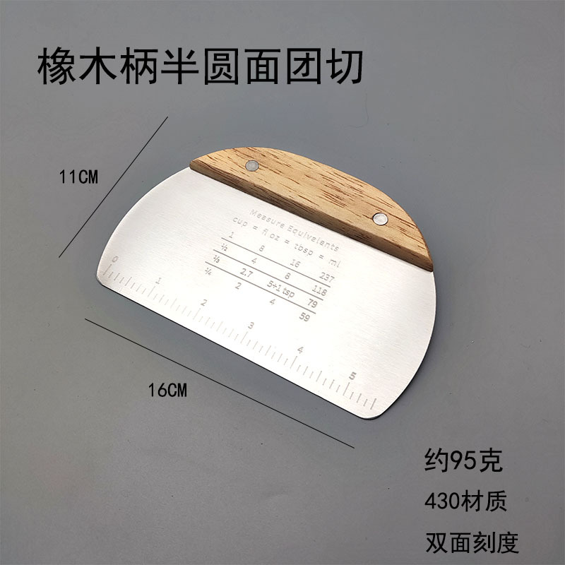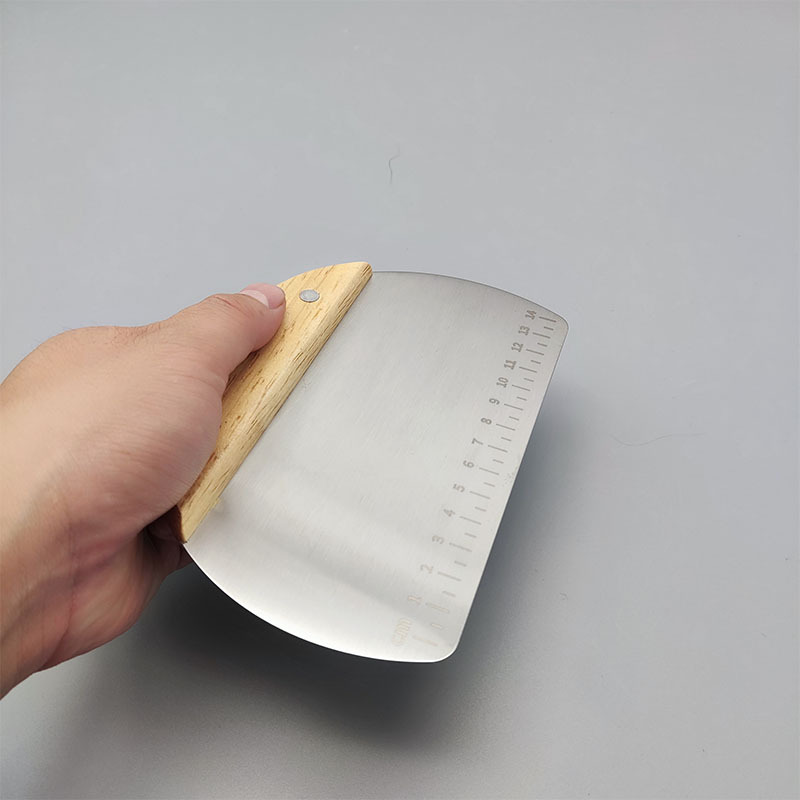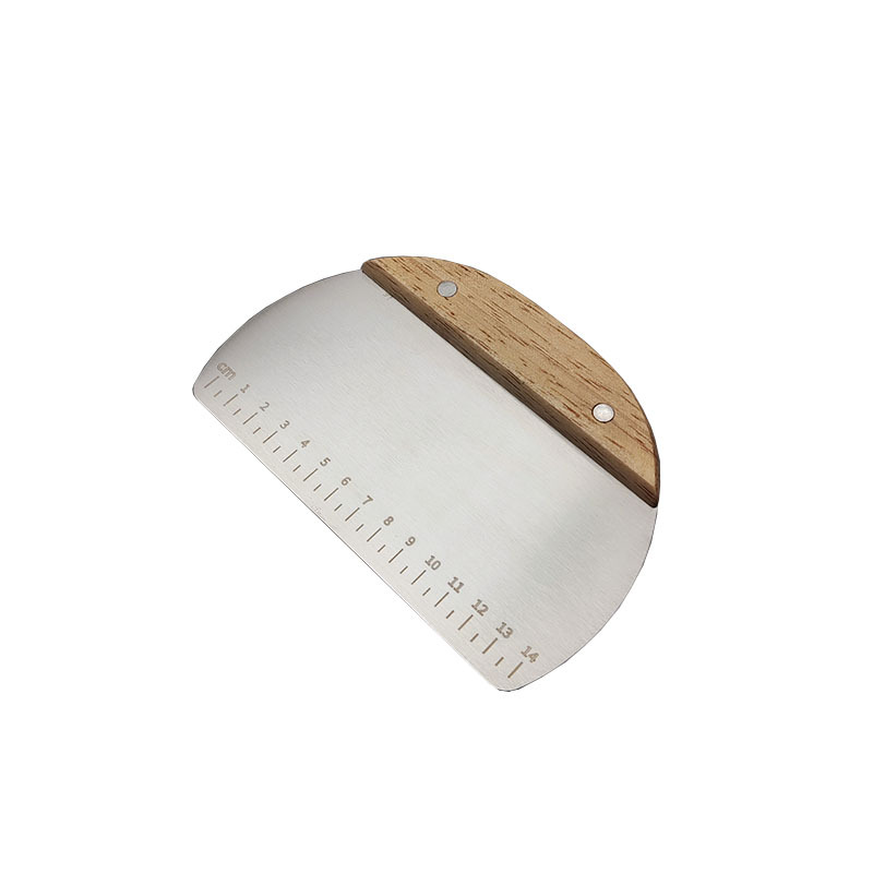 스테인레스 스틸 국수 커터 나무 손잡이 반원 반죽 커터 스테인레스 스틸 밀가루 커터 손 롤링 핀 커터 스크레이퍼