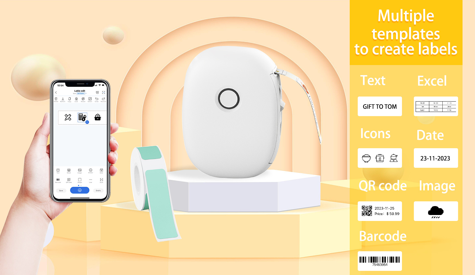 국경 전용 HD 미니 라벨 프린터 포켓 블루투스 무선 인쇄 및 잉크 고속없이 휴대용 사무실스토어 가기