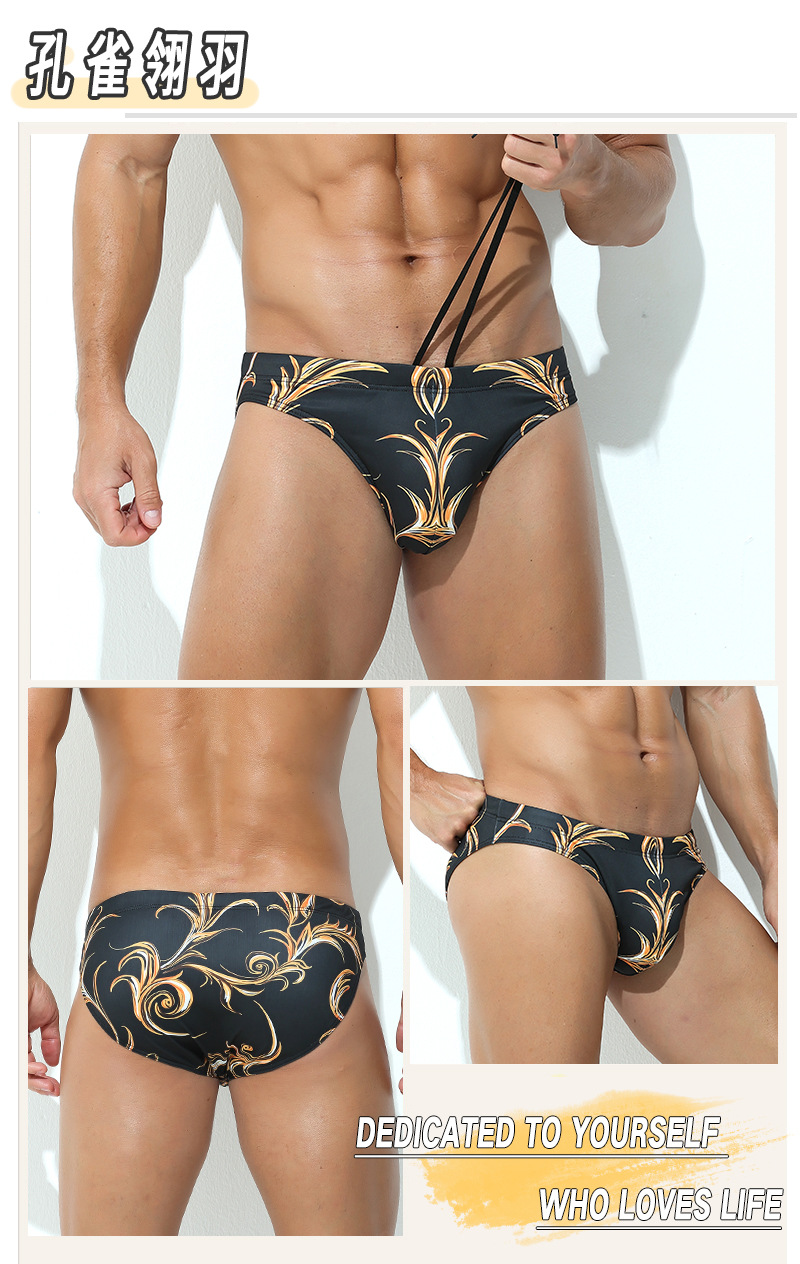 새로운 남자 수영 트렁크 전문 수영 트렁크 남자의 편안한 높은 탄성 패션 인쇄 낮은 허리 남자의 수영 삼각형 트렁크스토어 가기