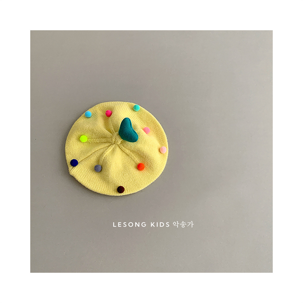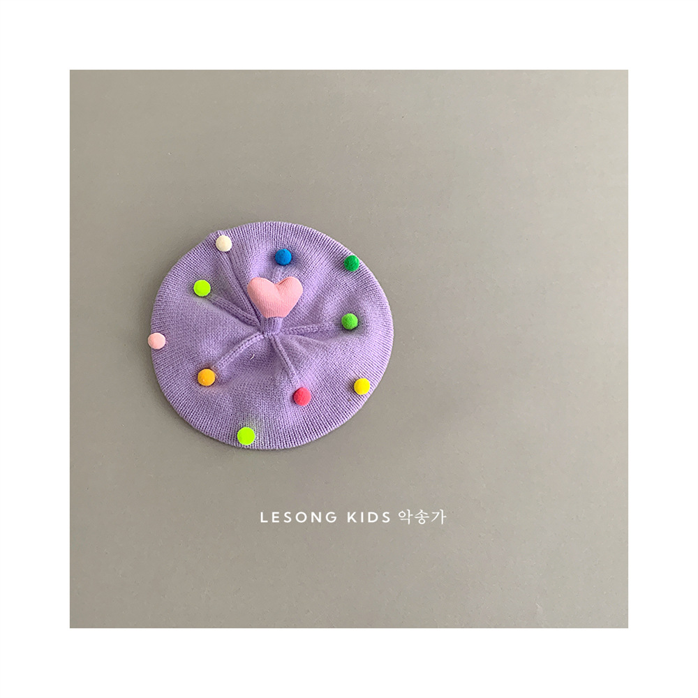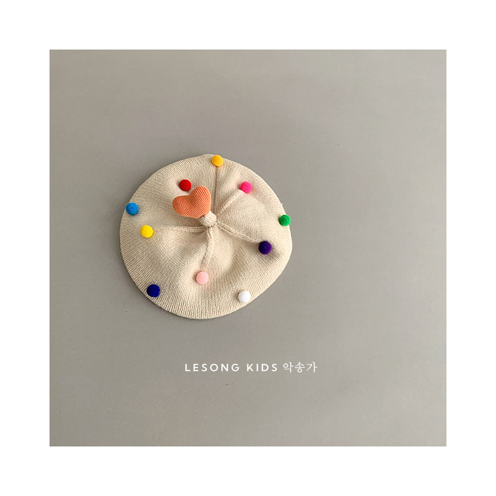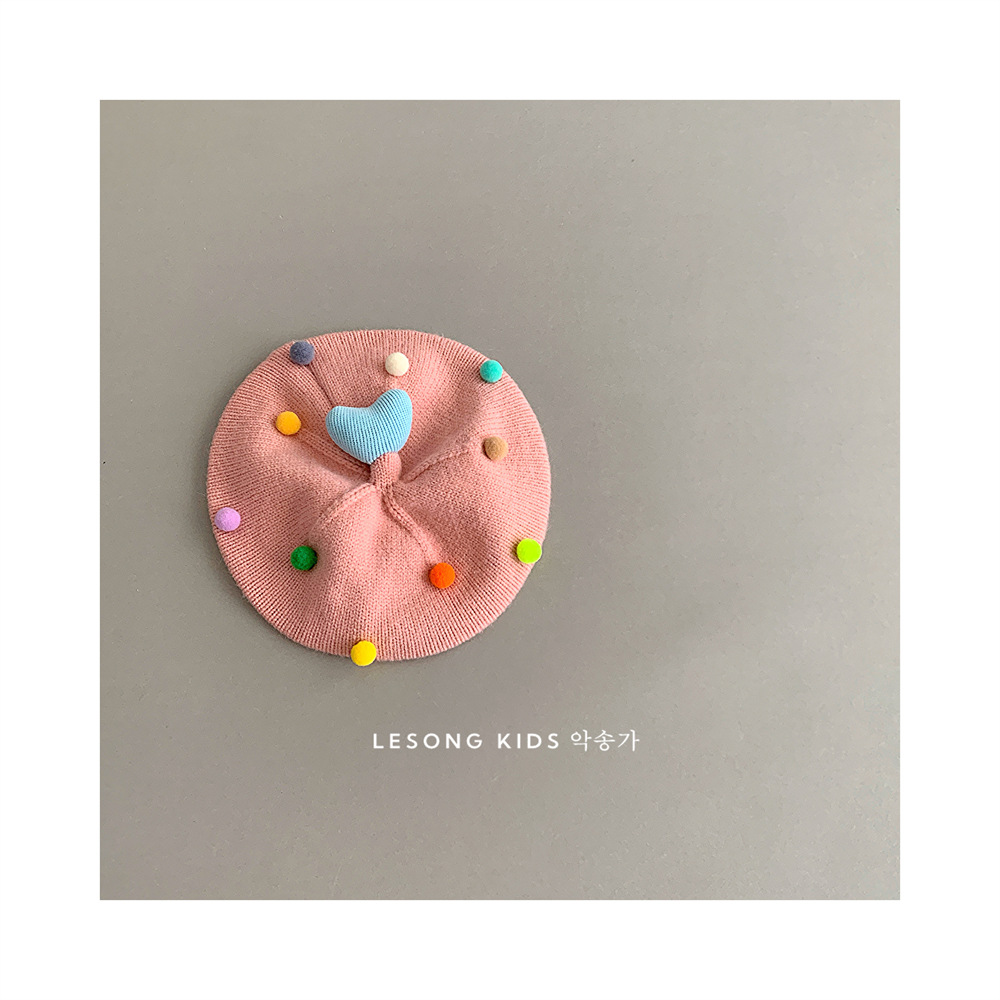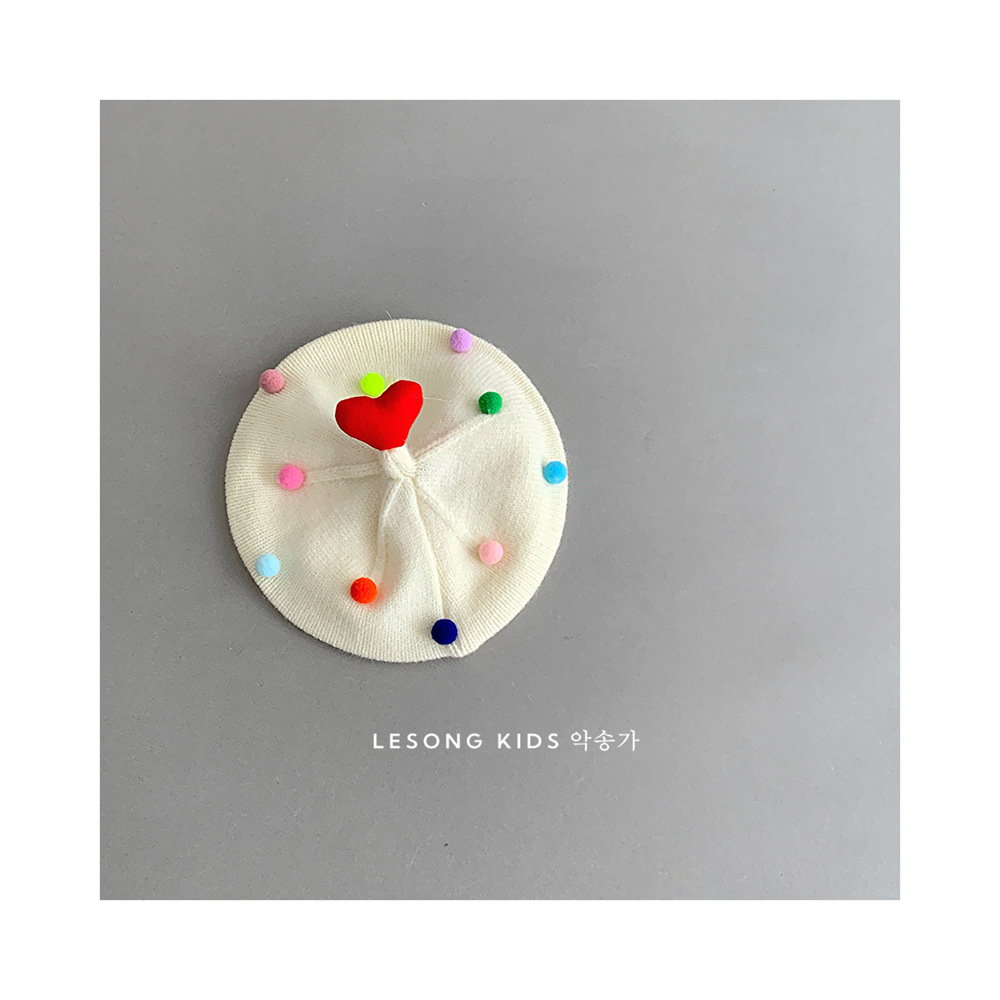 童趣韩系可爱彩色爱心毛球儿童贝雷帽