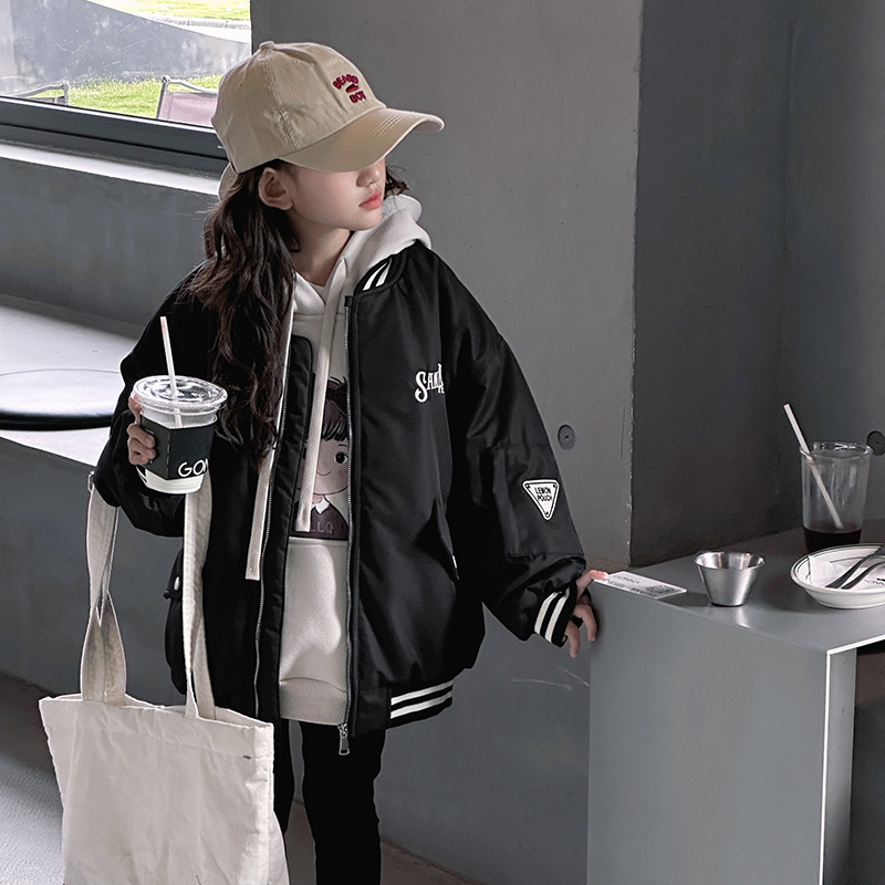 가을 중다 여자 코트 어린이 착용 어린이 소녀 야구 유니폼 외부 탑 야구 셔츠 재킷 유행 머리스토어 가기