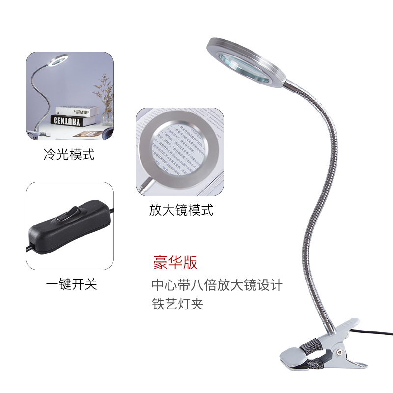 LED 책상 램프 눈 보호 학생들은 네일 아트, 얼굴 문신, 눈썹 셀프 타이머, 라이트 채우기 돋보기 데스크탑 클립 테이블을 읽는 법을 배웁니다.스토어 가기