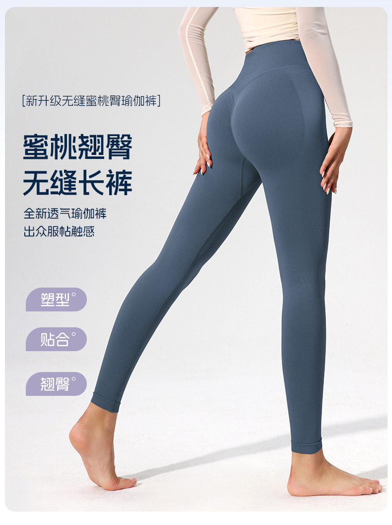 크로스보더 피트니스 팬츠 심리스 하이웨이스트 누드감 요가 팬츠 여성용 복숭아힙업 타이트 스포츠 트레이닝 요가복 패션스토어 가기
