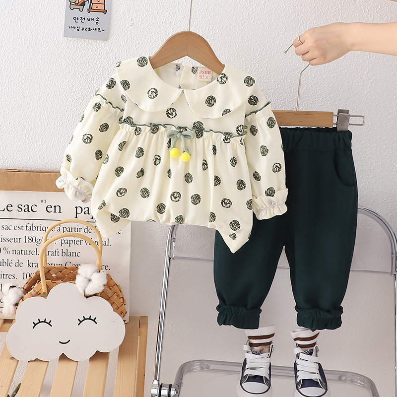 소녀 봄과 가을 세트 2024 새로운 스타일 아기 아기 어린이 가을 소녀 인형 칼라 셔츠 투피스 세트