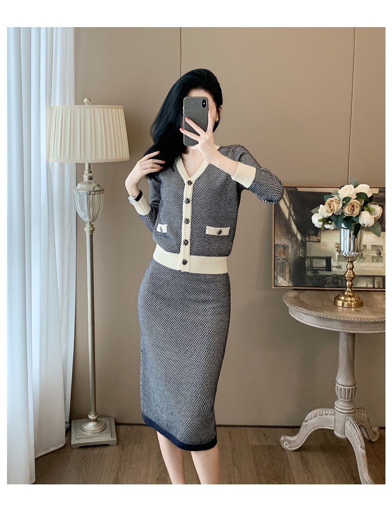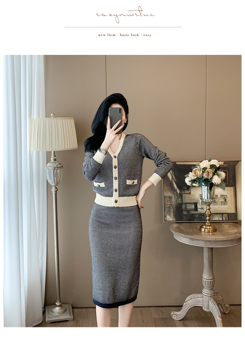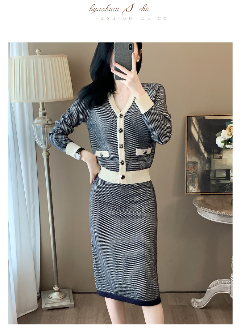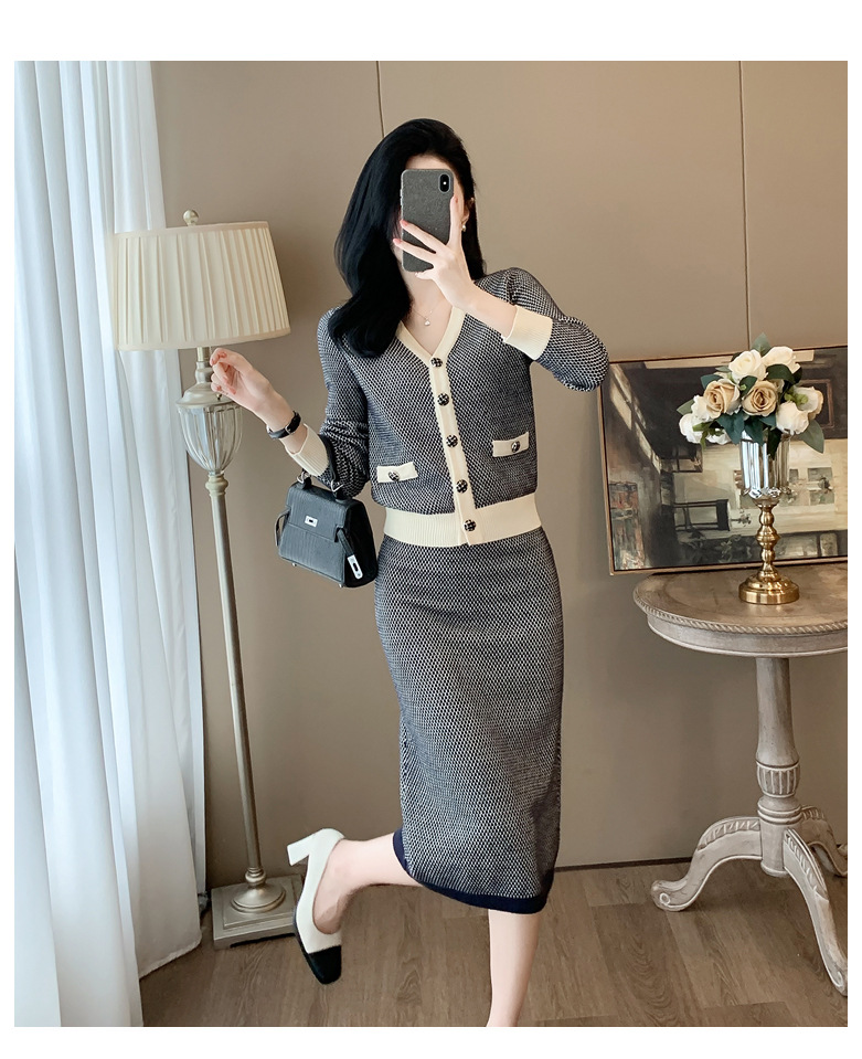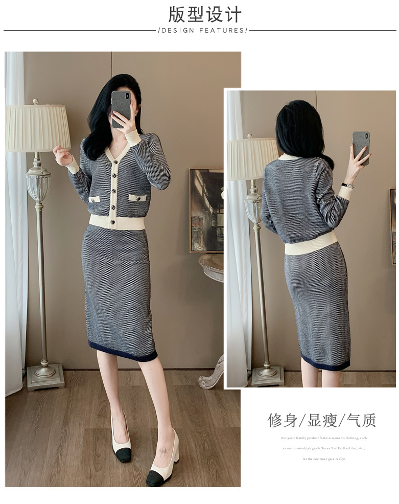 높은 수준의 사교계 샤오 샹 스타일 니트 투피스 세트 스커트 여성의 가을 새로운 서양식 패션 캐주얼 세트 스커트스토어 가기