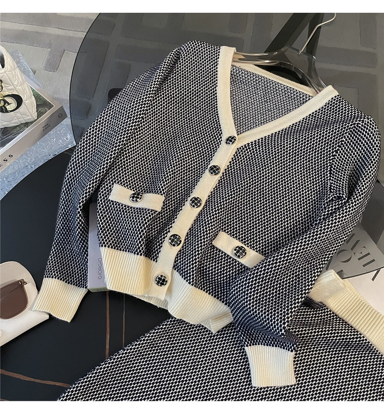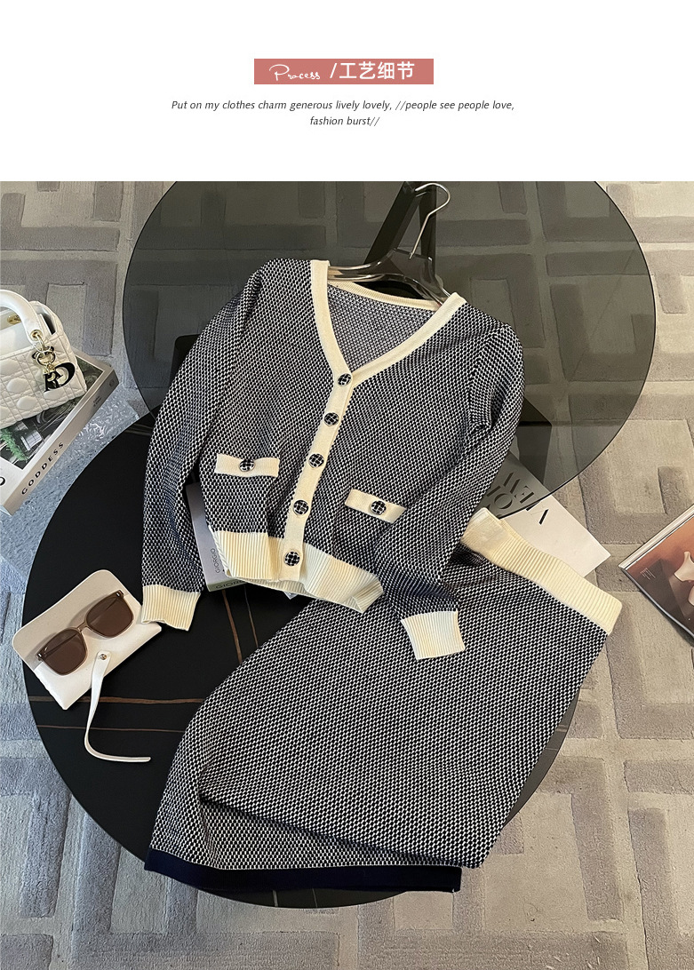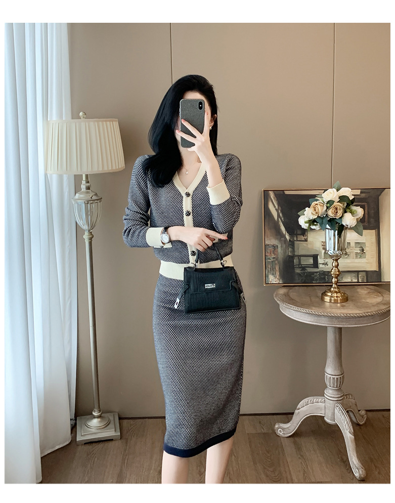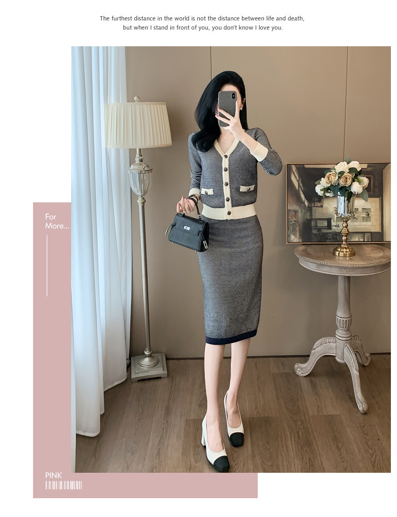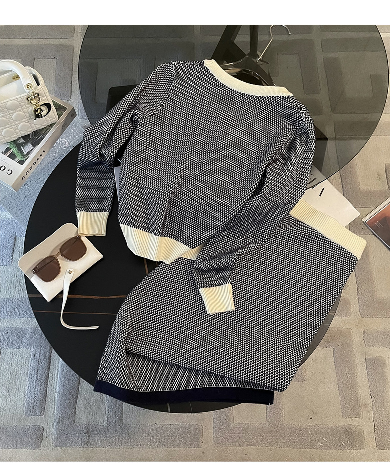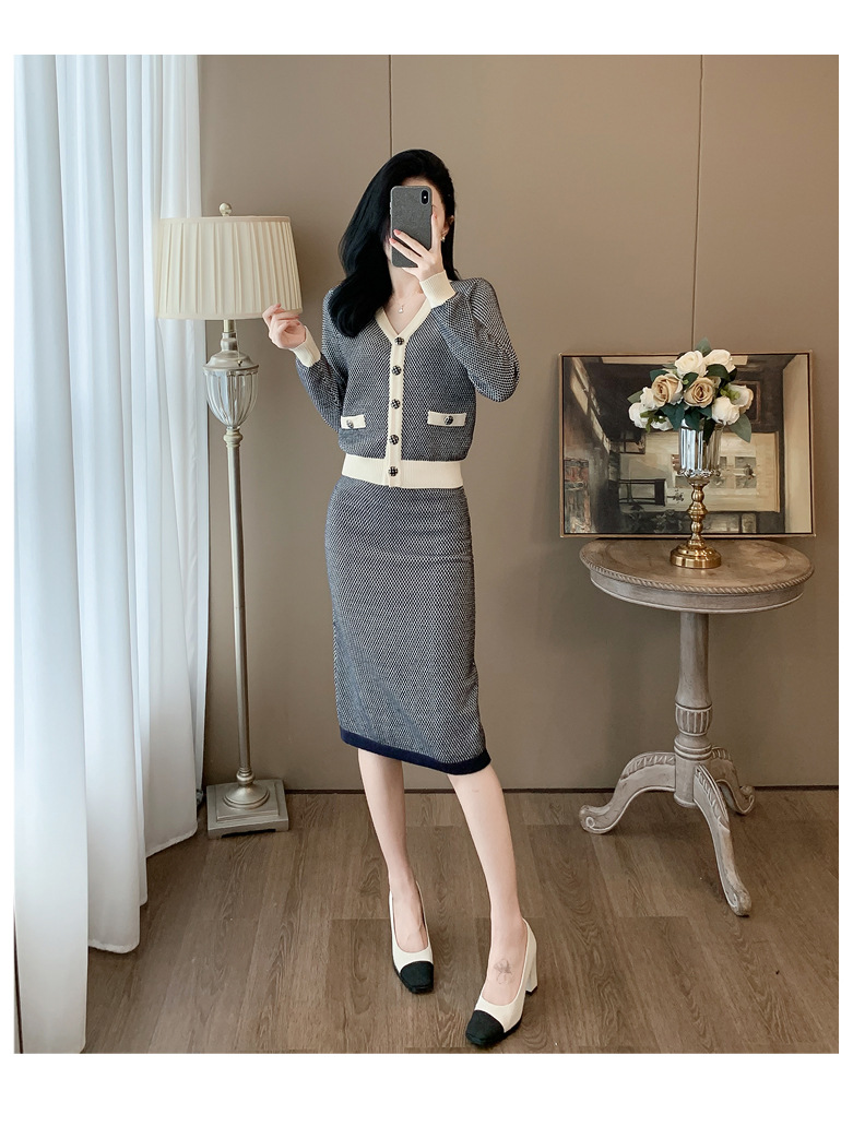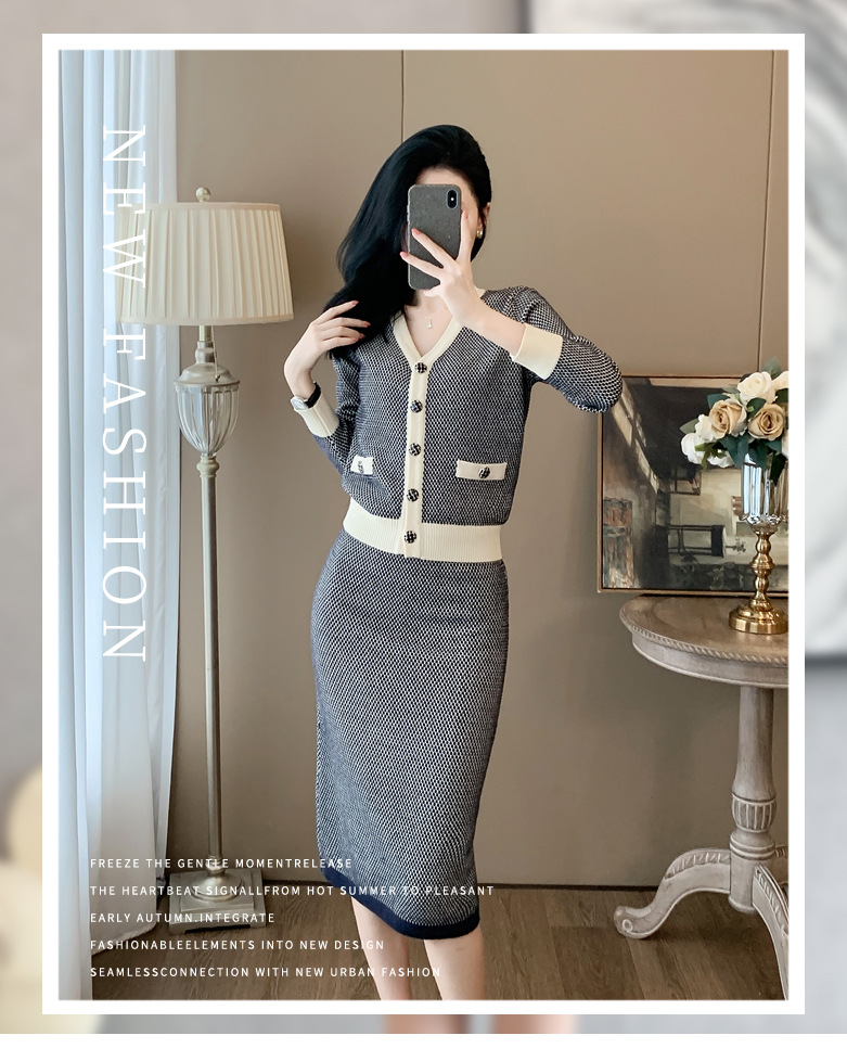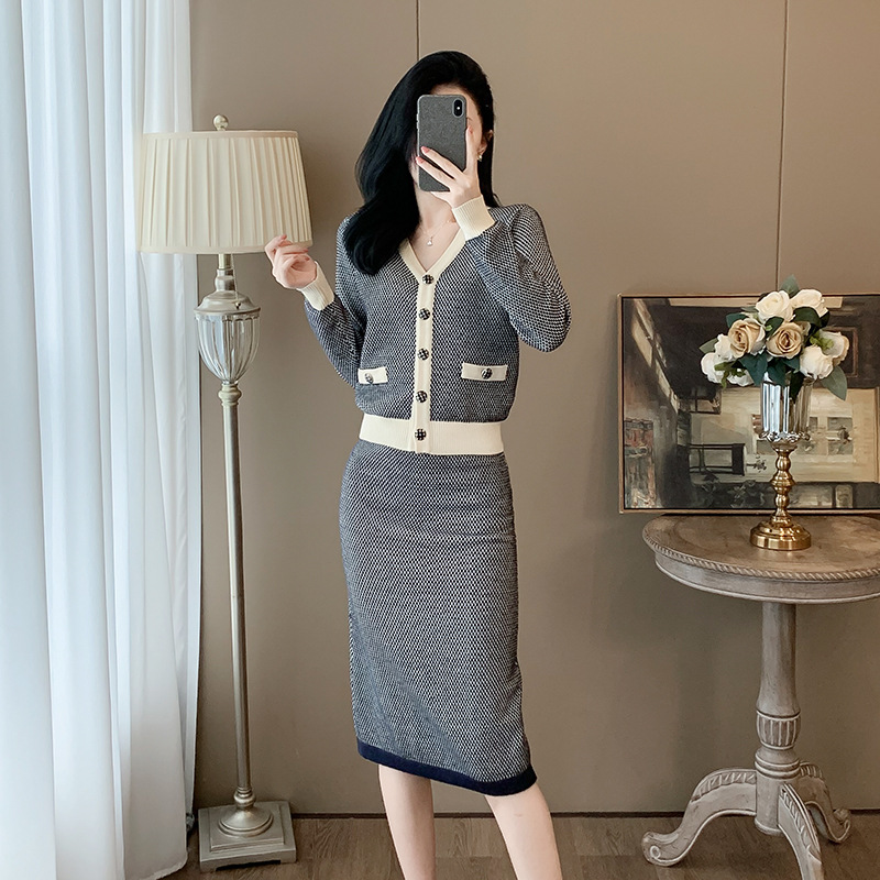 높은 수준의 사교계 샤오 샹 스타일 니트 투피스 세트 스커트 여성의 가을 새로운 서양식 패션 캐주얼 세트 스커트
