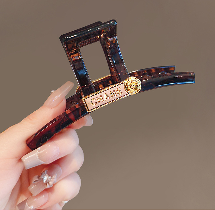 고급 라이트 럭셔리 우아한 상어 클립 간단한 올 매치 골드 라벨 동백 헤어 클립 헤드웨어 헤드 디스크 헤어 클립 클립스토어 가기