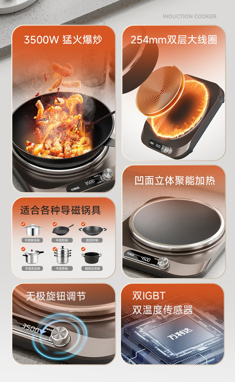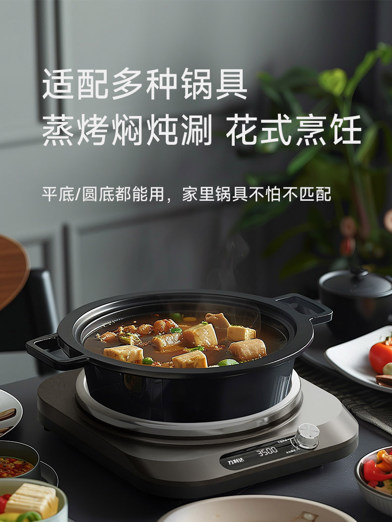 새로운 고출력 오목 유도 밥솥 다기능 가정 요리 냄비 요리 튀김 수프 전기 프라이팬 도매스토어 가기