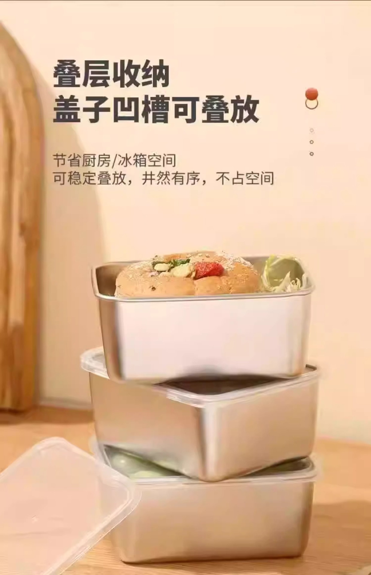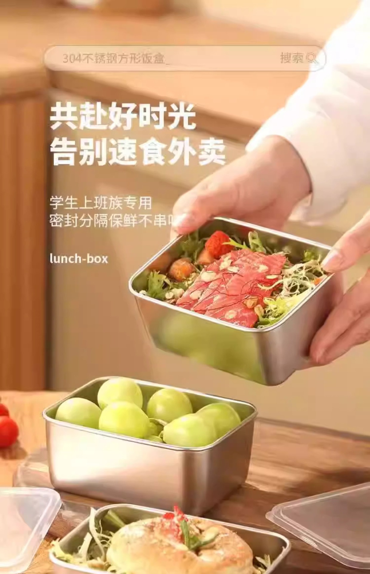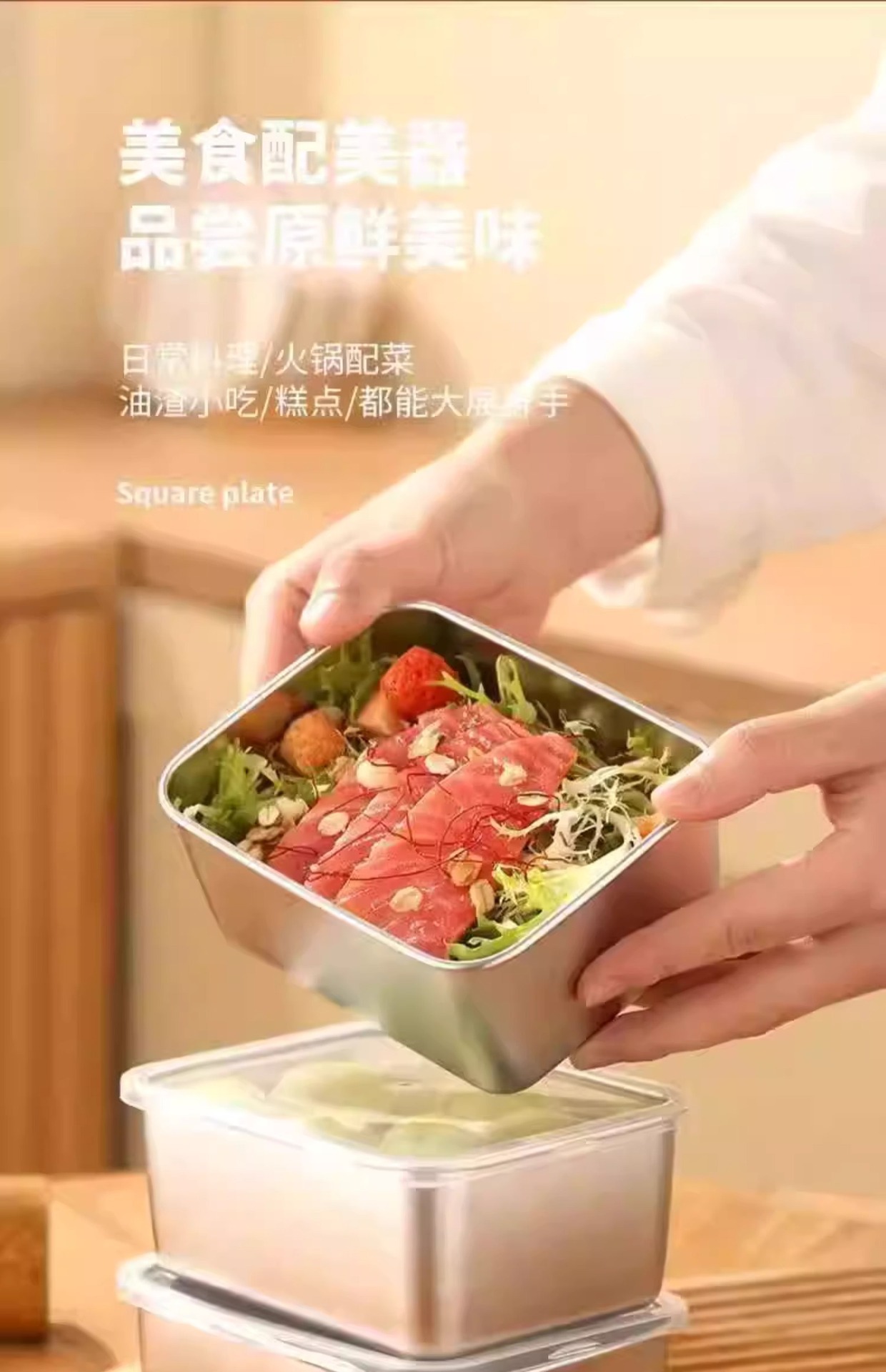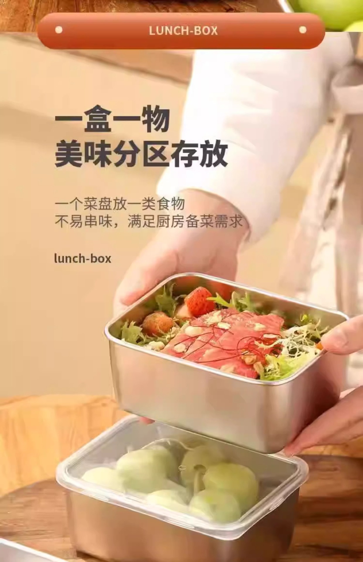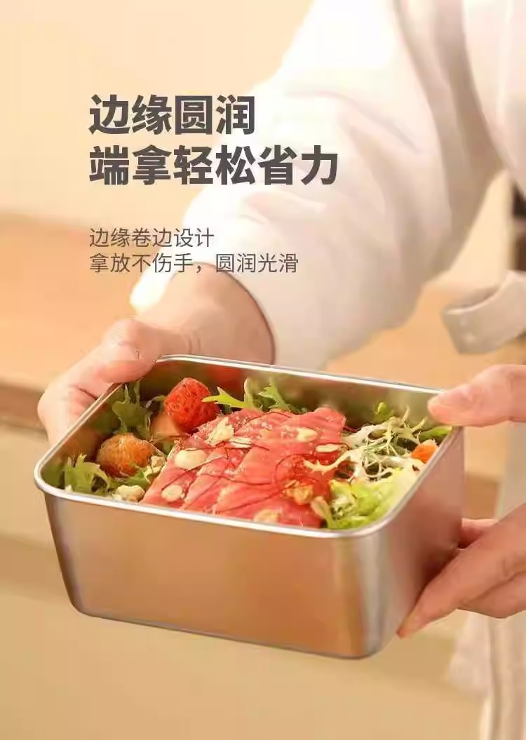 • 스테인레스 스틸 신선한 보관 상자-뚜껑이없는 사각형-1 팩