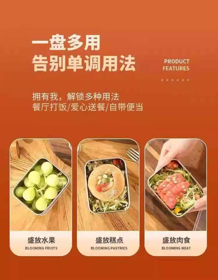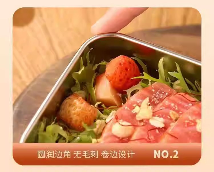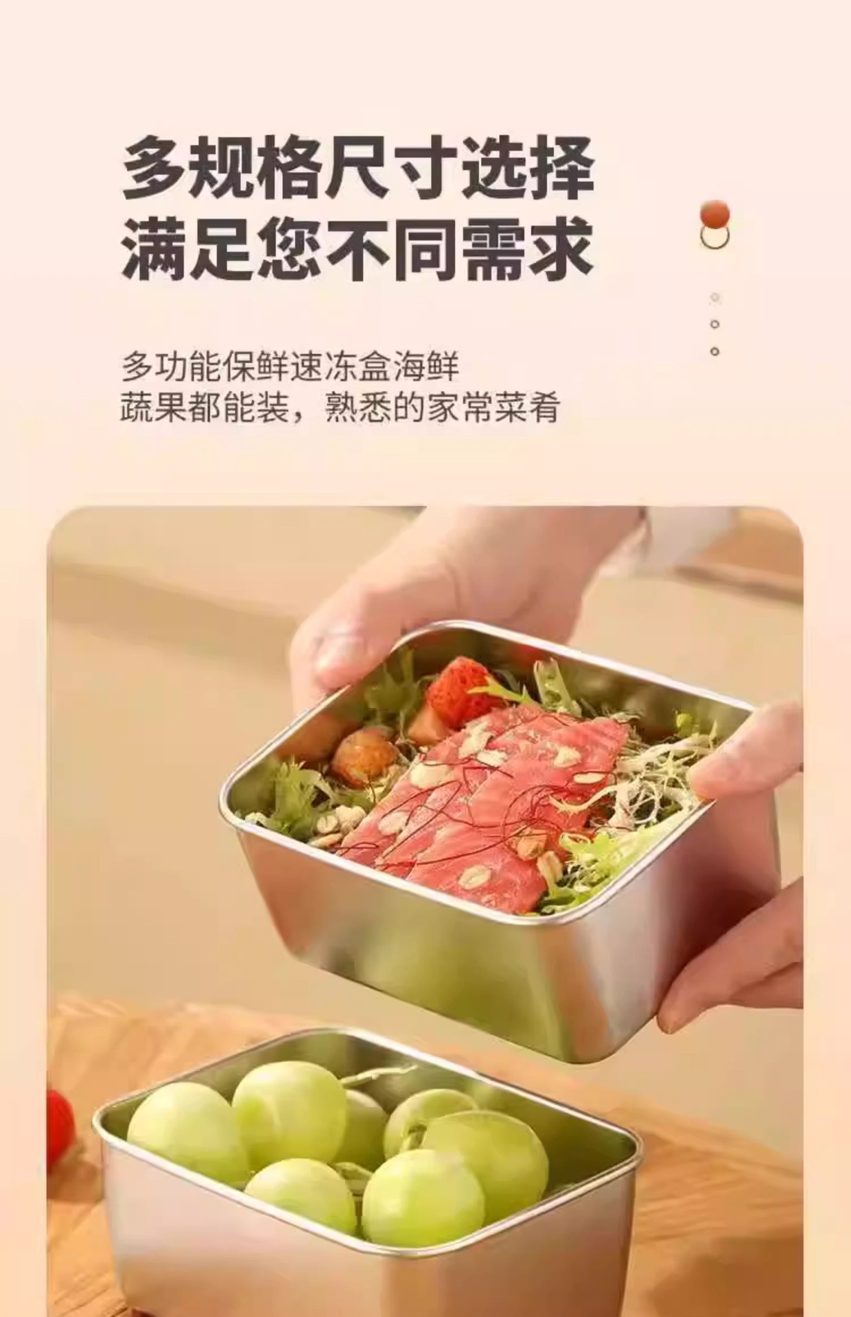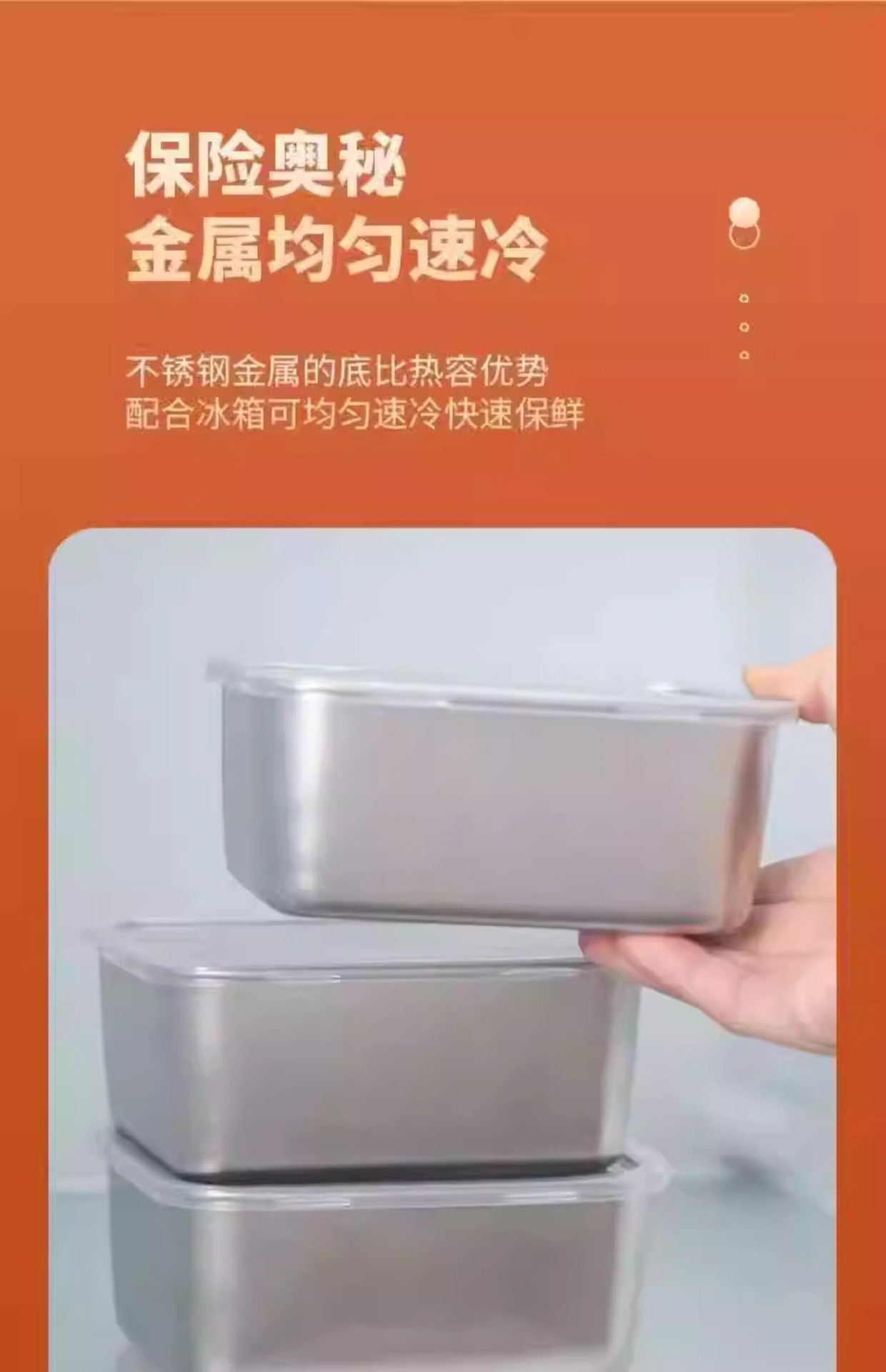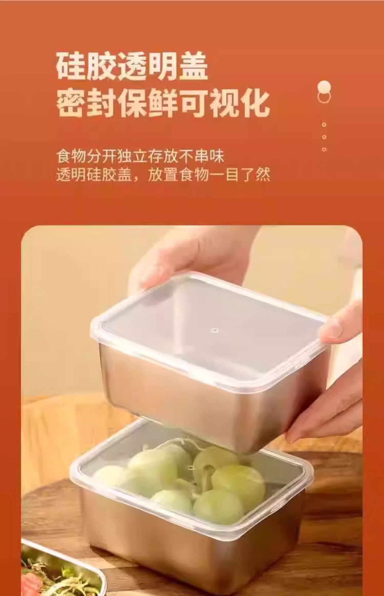 • 스테인레스 스틸 신선한 보관 상자-뚜껑이없는 사각형-1 팩